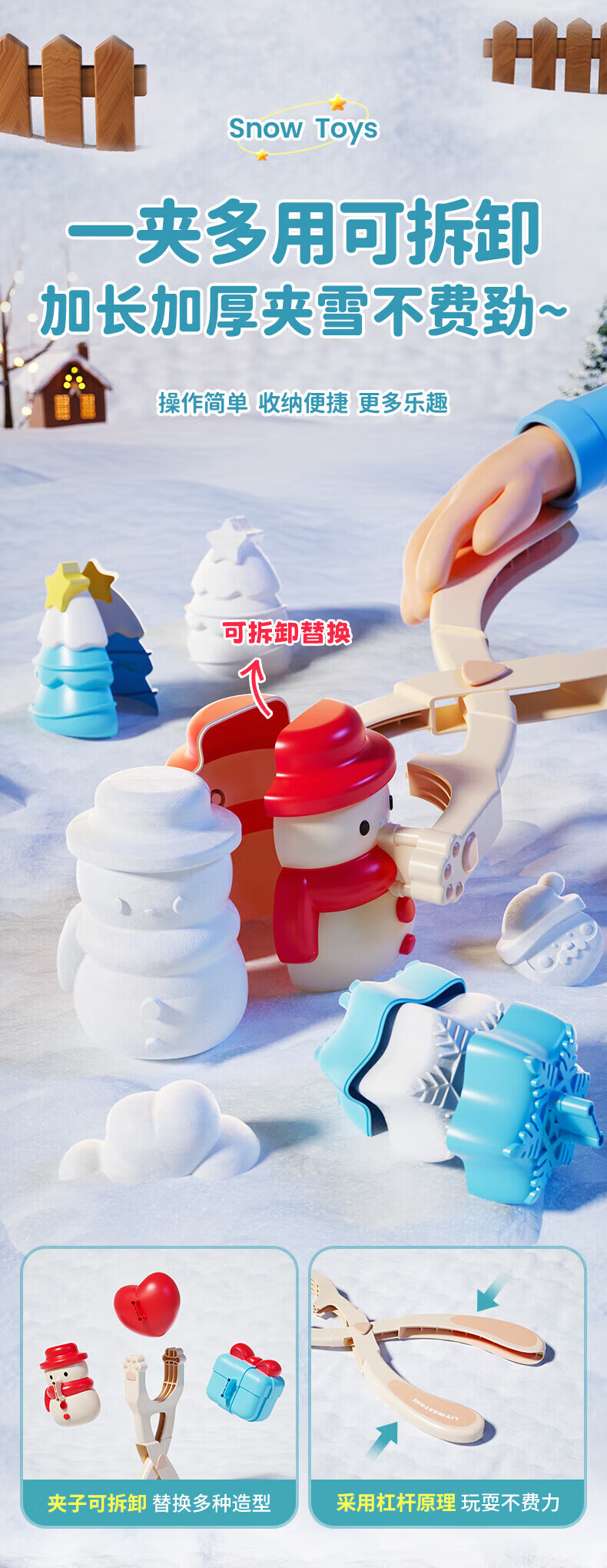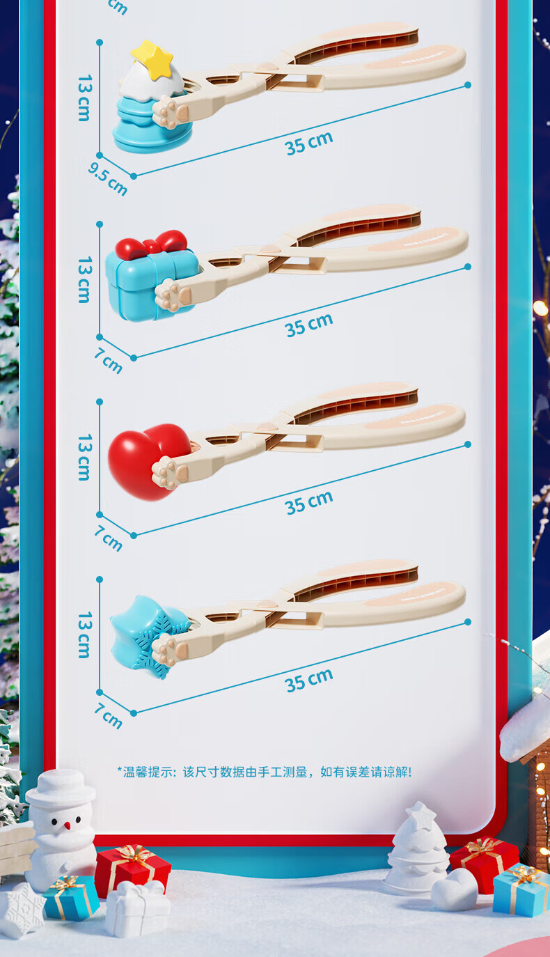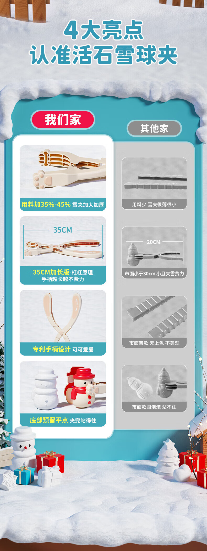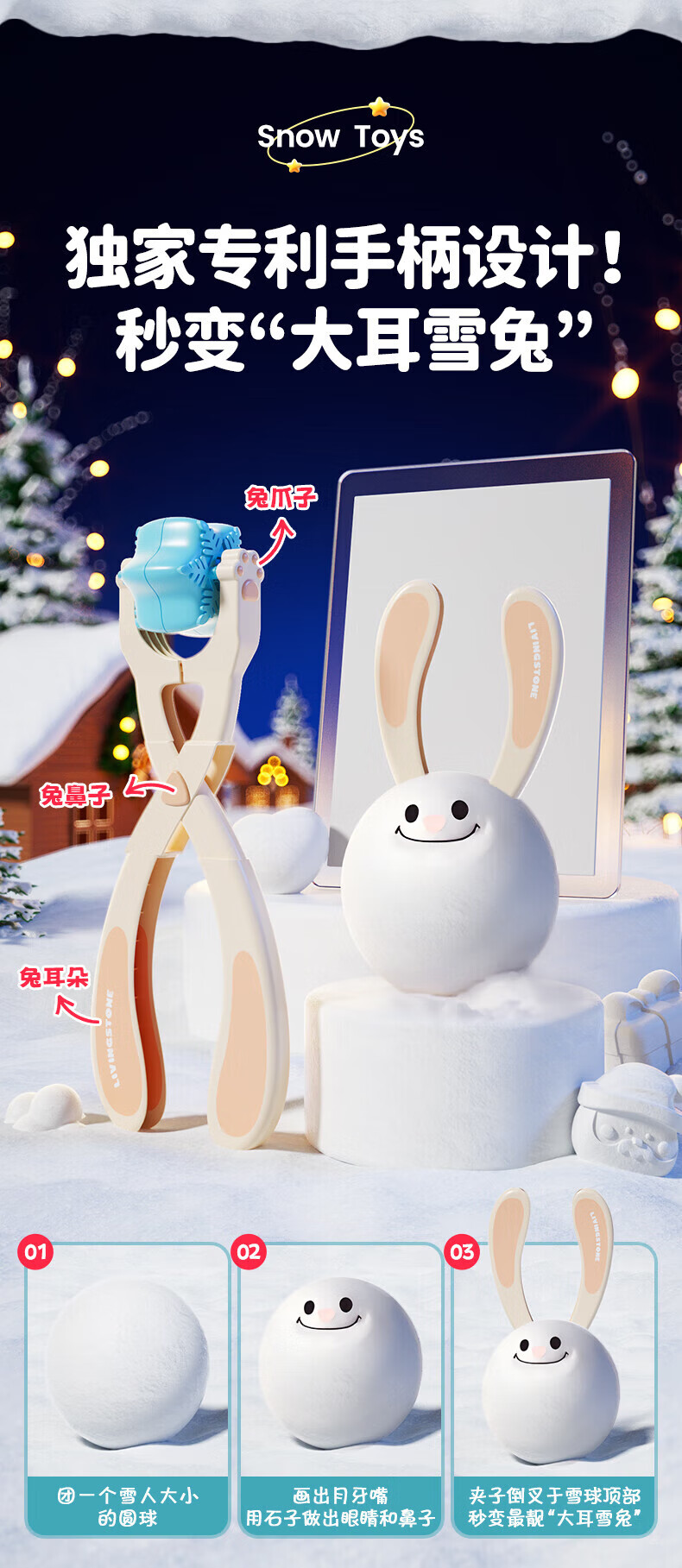 活石(LIVING STONES)玩雪工具夹雪球神器雪球夹大号雪人模具儿童雪夹子玩具滑雪板装备 大号雪夹3件套【雪人+爱心+鸭子