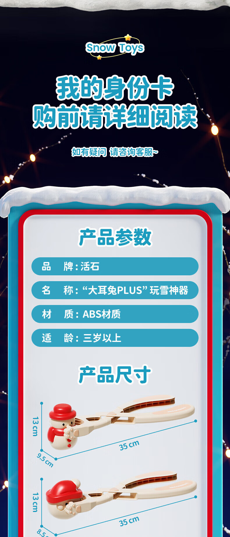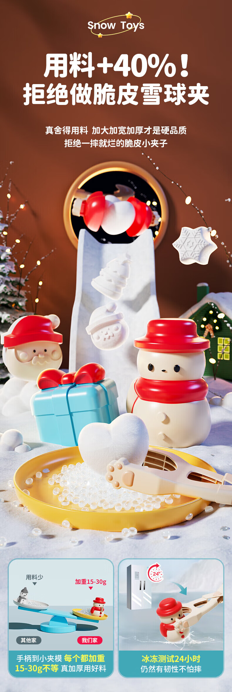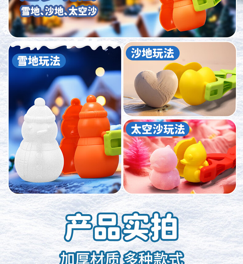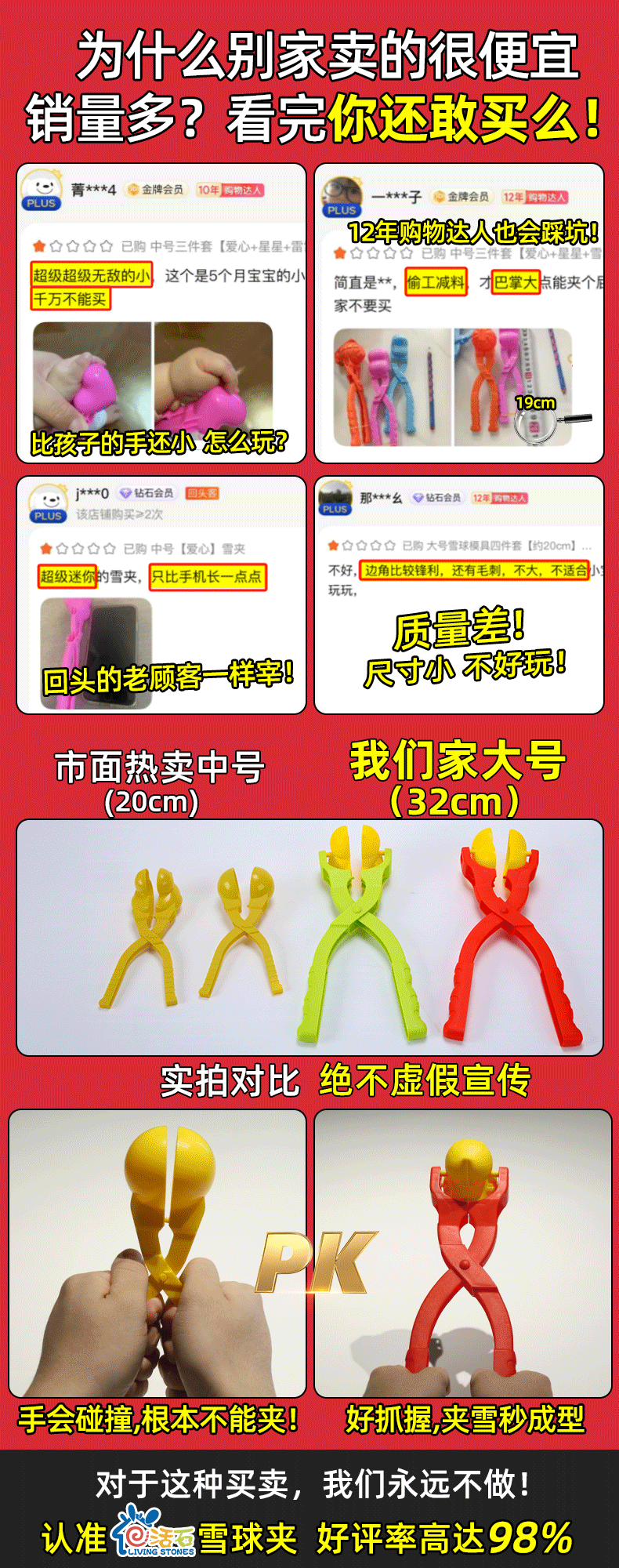 活石(LIVING STONES)玩雪工具夹雪球神器雪球夹大号雪人模具儿童雪夹子玩具滑雪板装备 大号雪夹3件套【雪人+爱心+鸭子