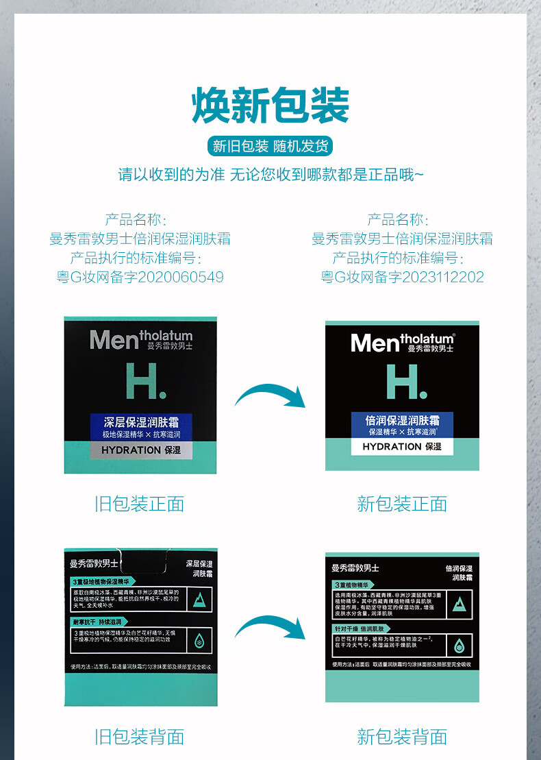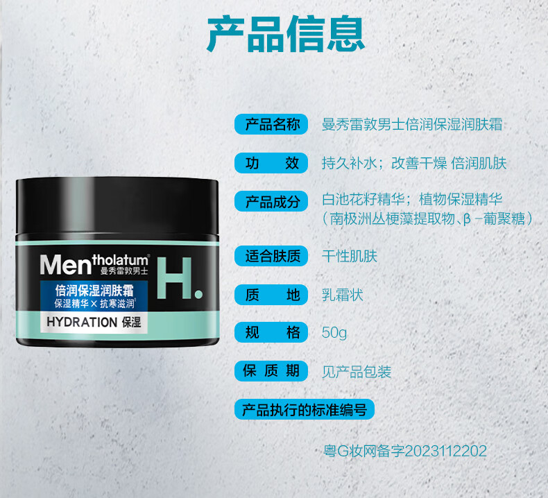 曼秀雷敦男士深层补水保湿面霜50g 润肤乳液滋润 秋冬季护肤品礼物送男友