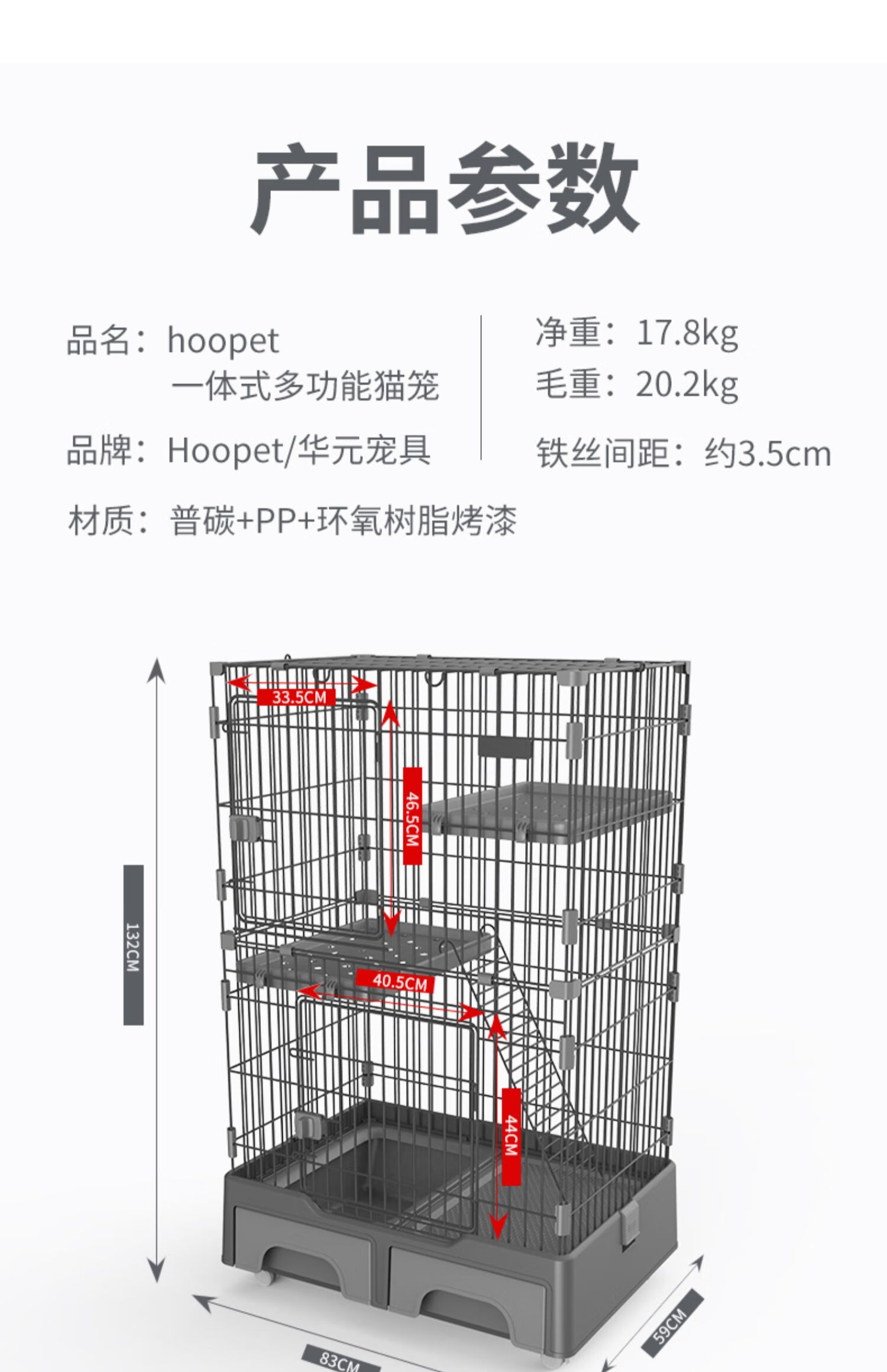 华元宠具(hoopet)猫别墅猫咪笼子宠物室内猫窝猫舍超大空间带厕所一体猫屋【商仓】