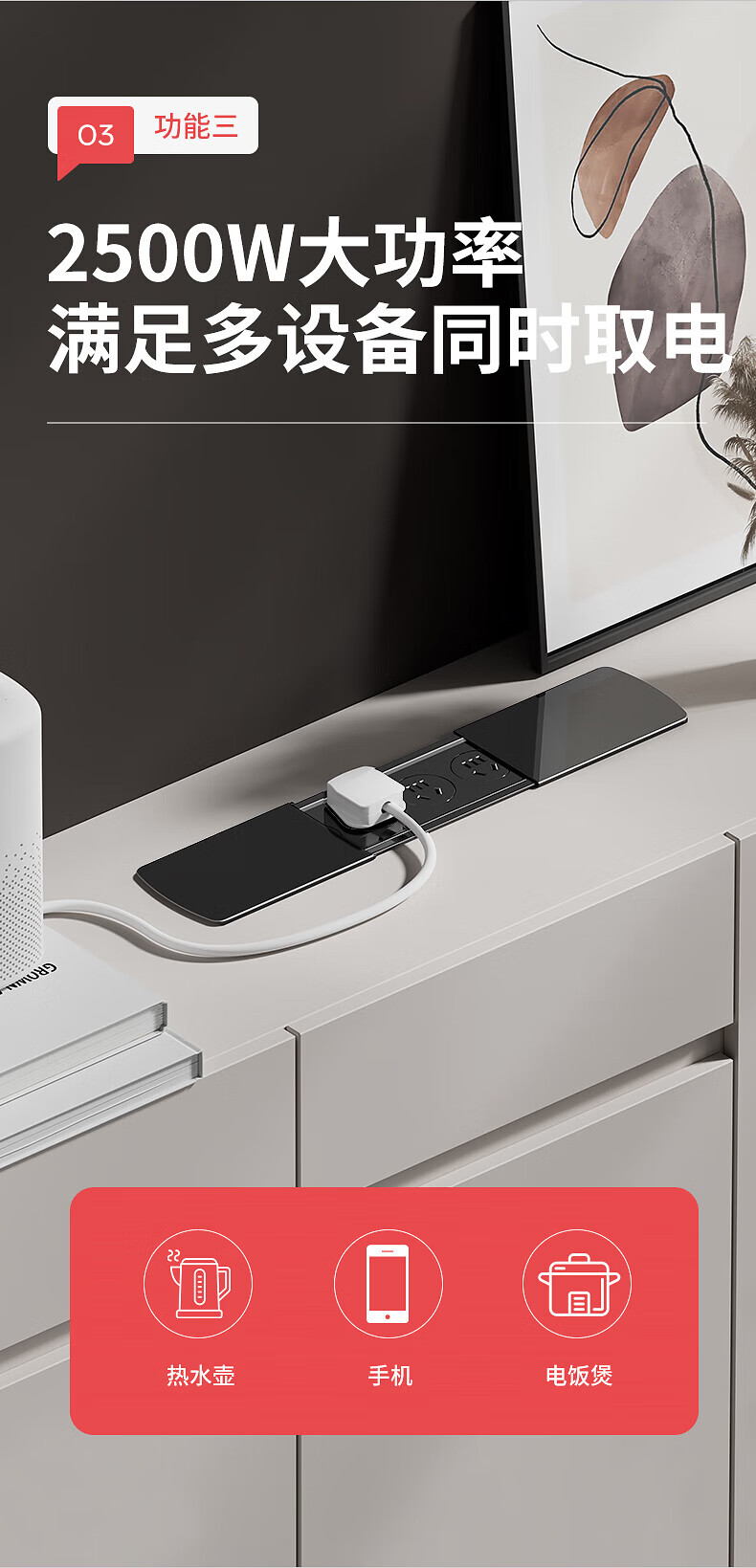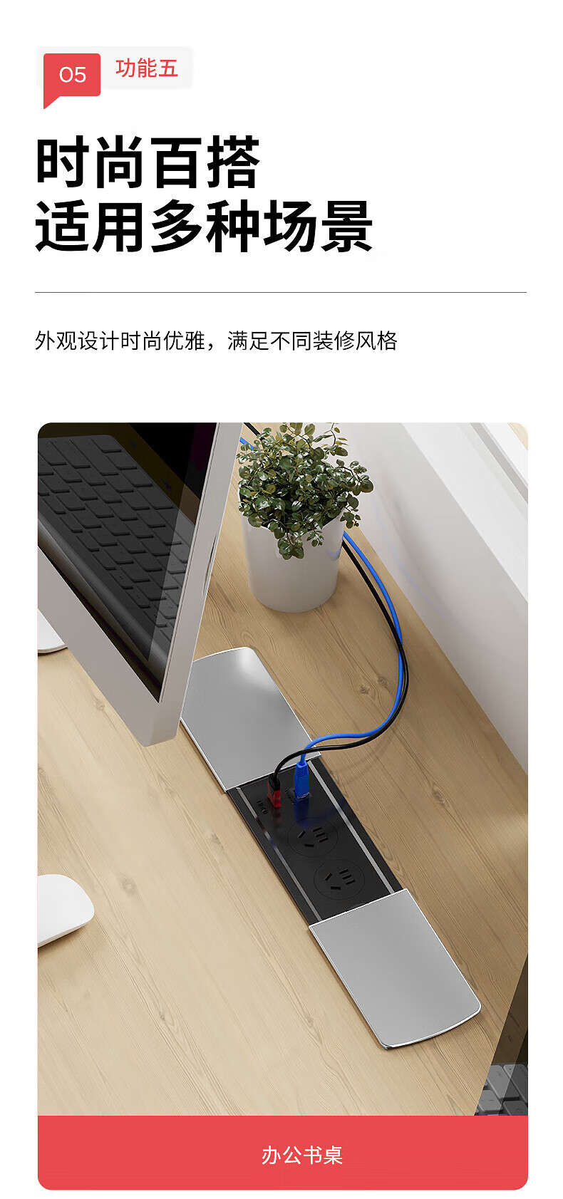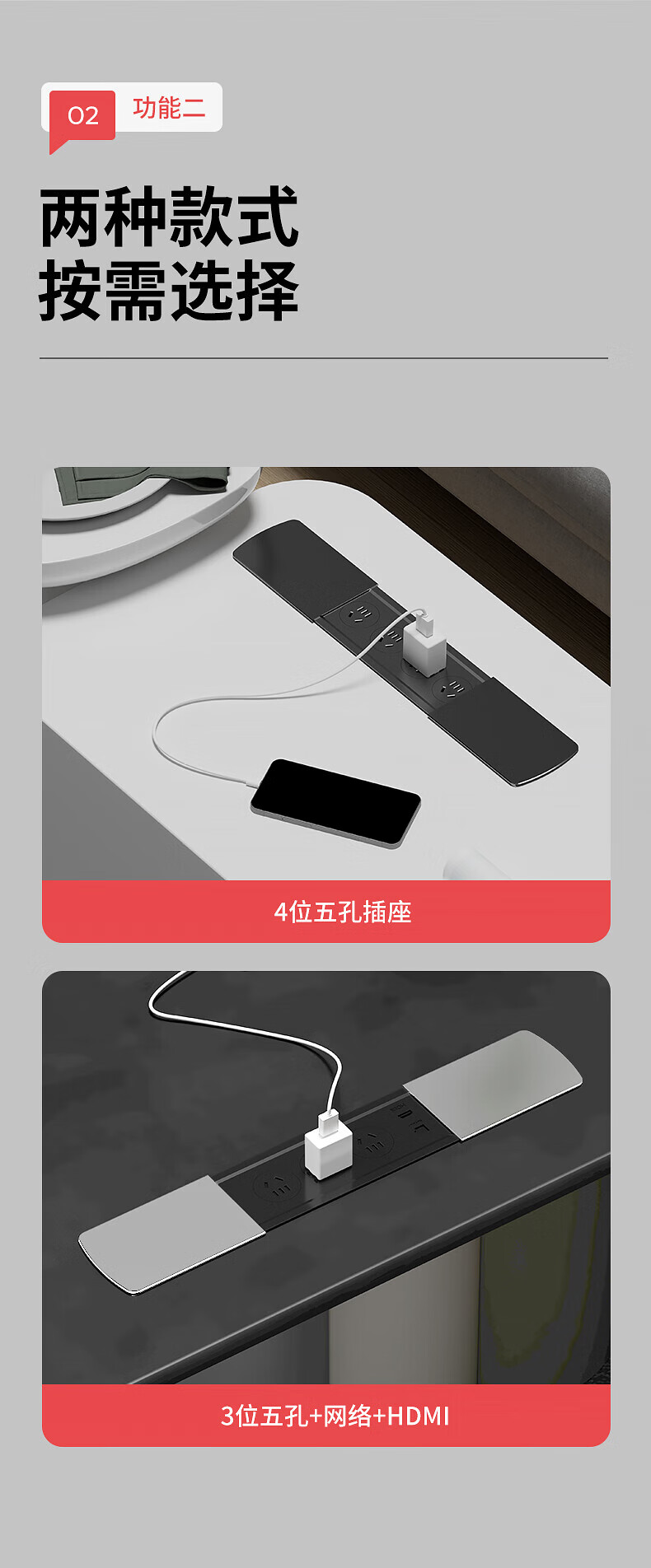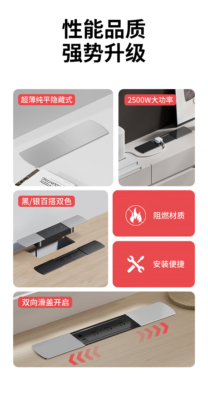 国际电工桌面纯平嵌入式滑盖插座岛台隐藏式台面插排办公室多功能接线板 黑色-四位五孔(1.5米线+送底座)