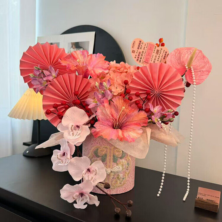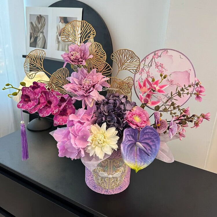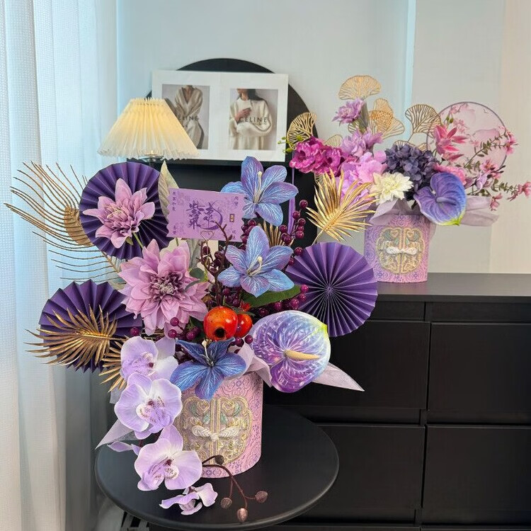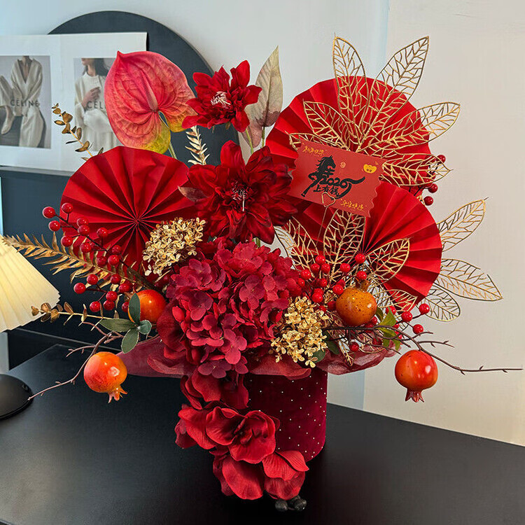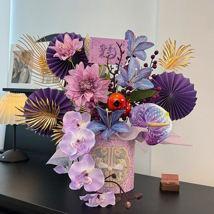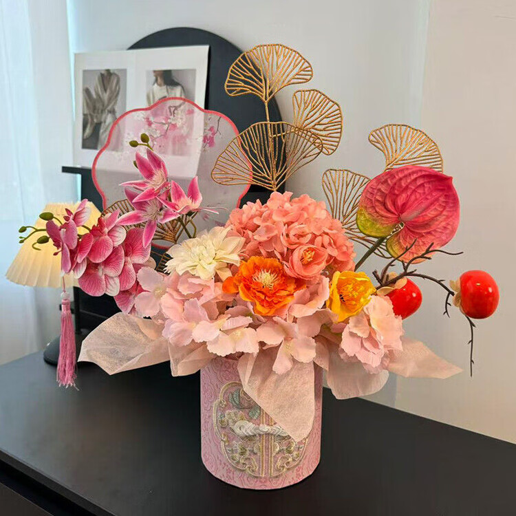 OYKTN新年福桶摆件2026年宵花发财果春节装饰布置摆件仿真花过年插花 【国风盘扣桶】九紫离火.紫气东来款