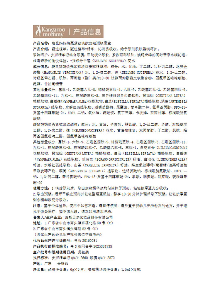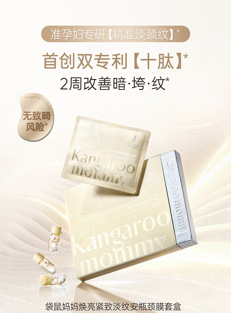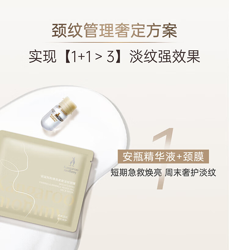 袋鼠妈妈(Kangaroo Mommy)【新品上市】颈膜提拉紧致淡化颈纹颈肩霜护肤品焕亮精华套盒 【到手7组】颈膜套盒5组