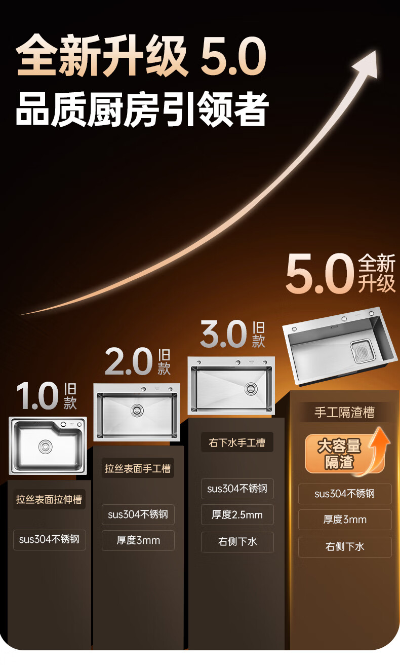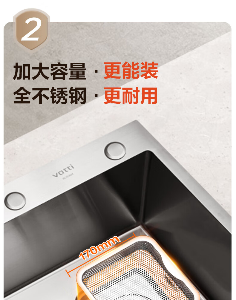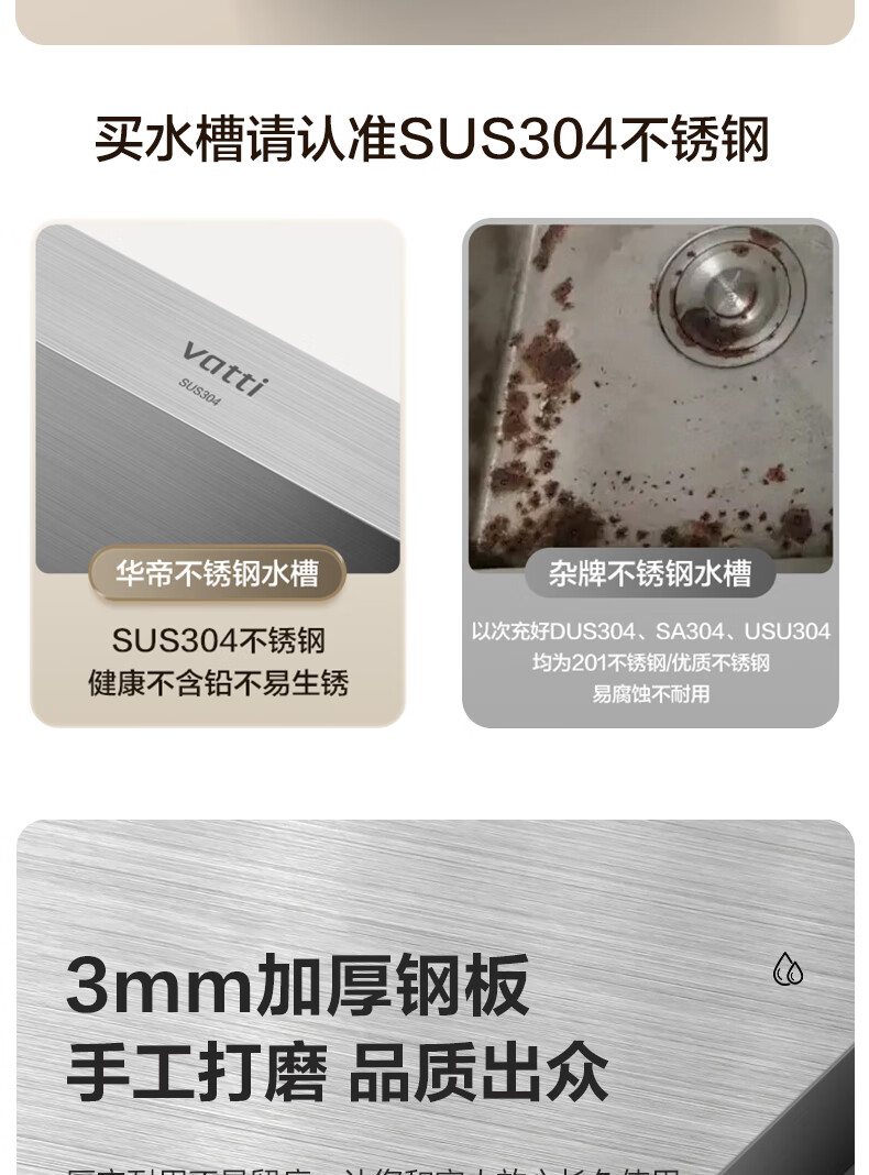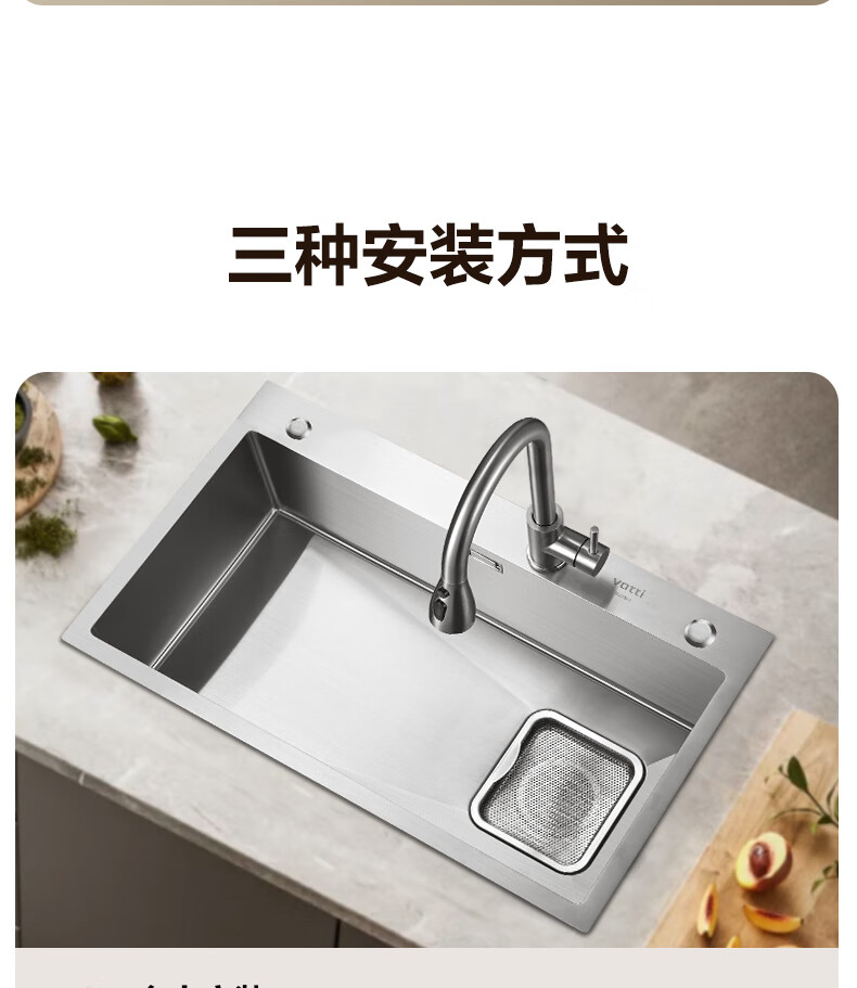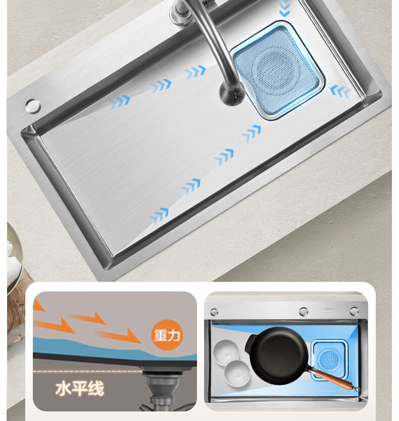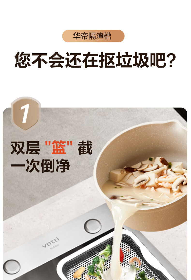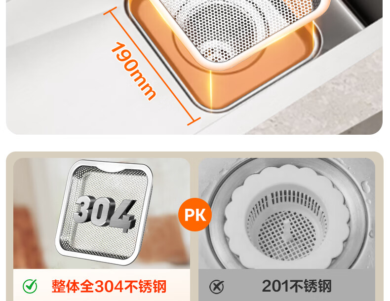 华帝(VATTI)水槽隔渣大单槽厨房水槽家用加厚304不锈钢不忧滤洗菜盆 68*45 不锈钢拉丝大单槽+三模抽拉龙头