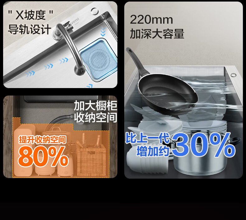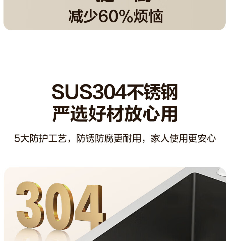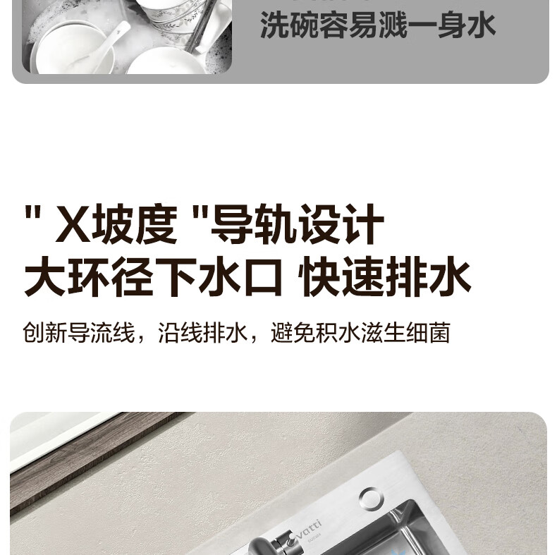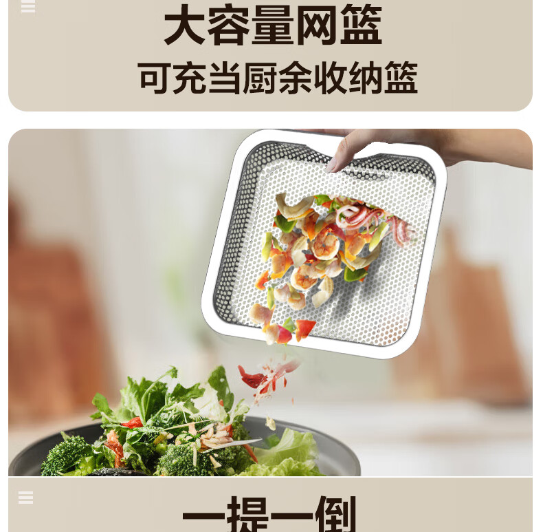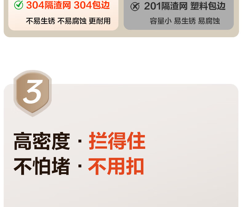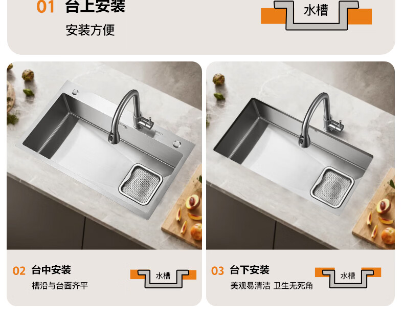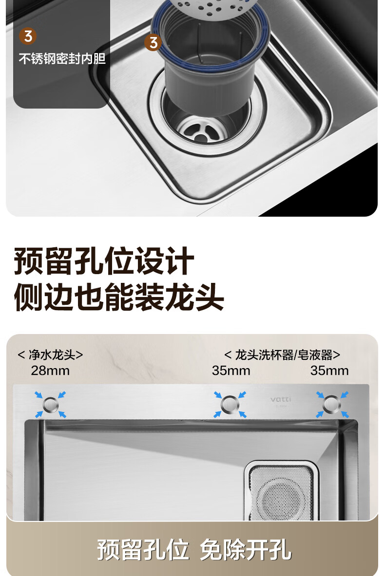 华帝(VATTI)水槽隔渣大单槽厨房水槽家用加厚304不锈钢不忧滤洗菜盆 68*45 不锈钢拉丝大单槽+三模抽拉龙头