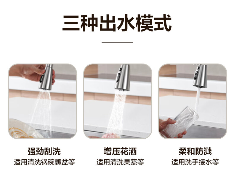 箭牌304不锈钢冷热水龙头可旋转抽拉龙头厨房抽拉式