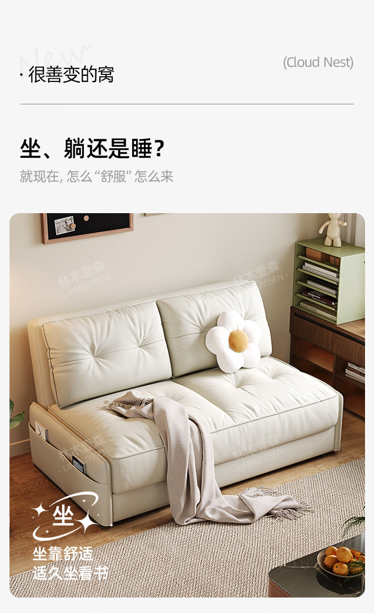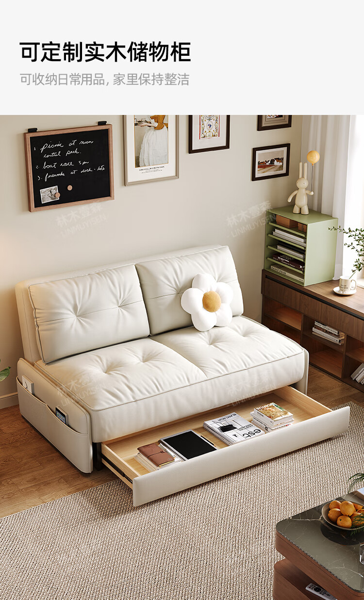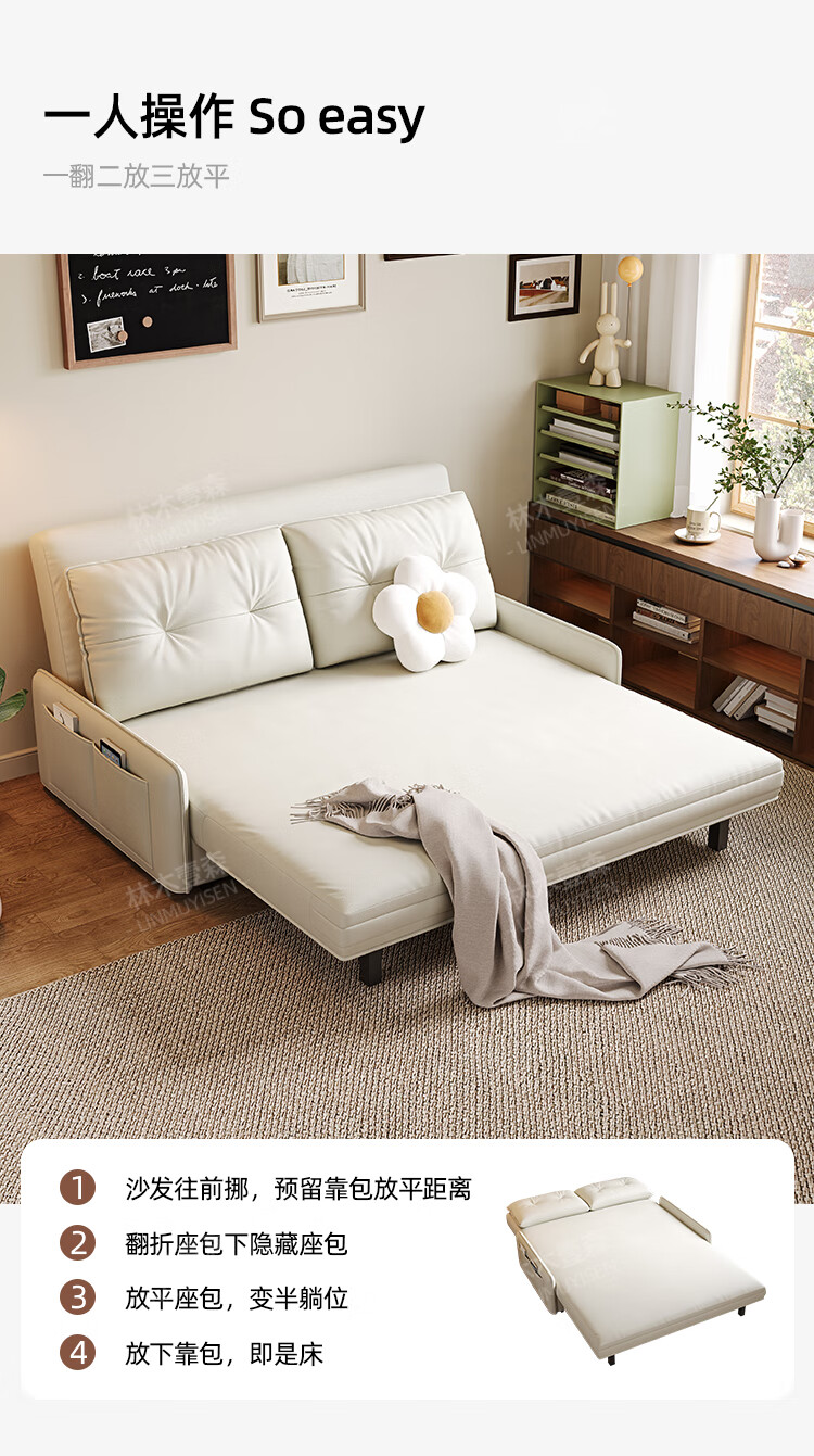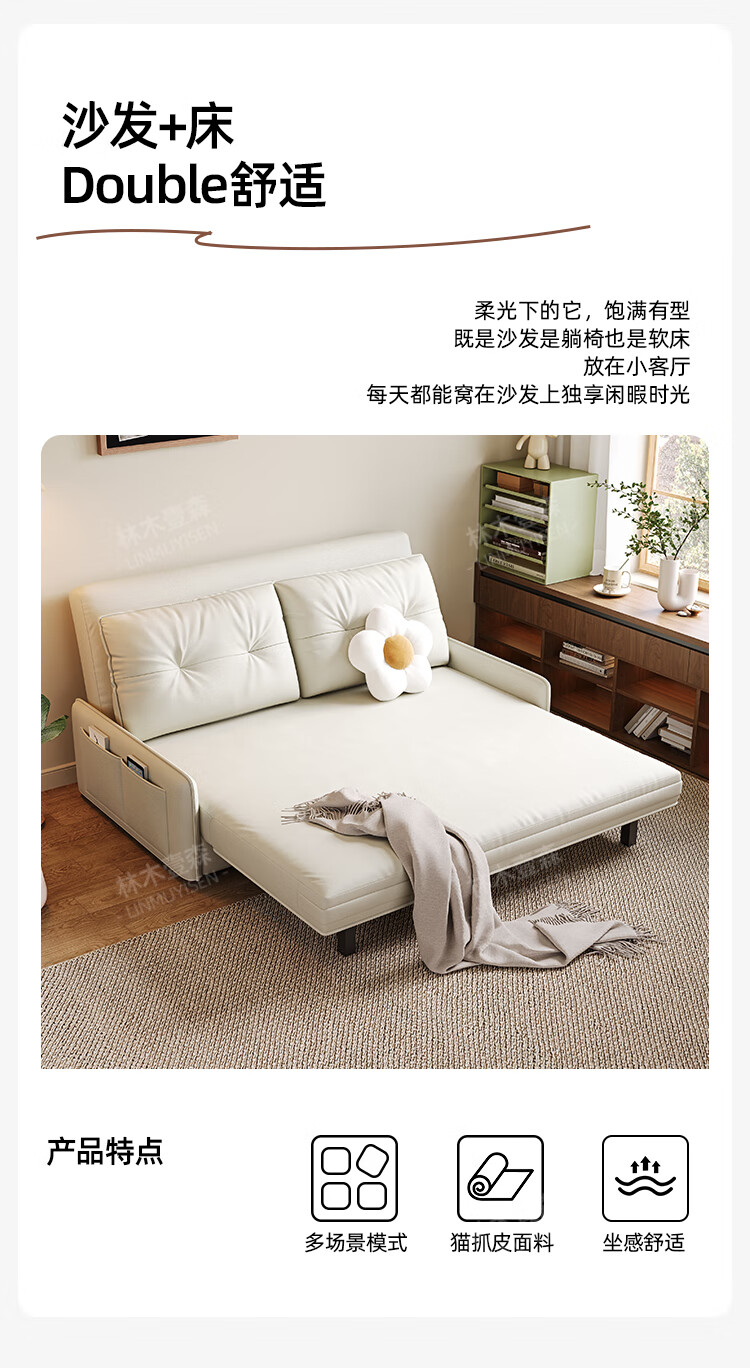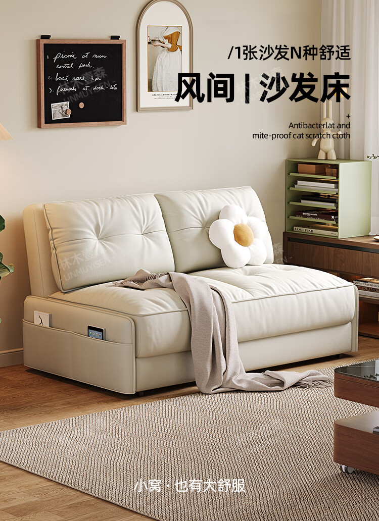 林木壹森沙发床现代简约小户型客厅书房卧室阳台可翻折家用梳化床坐卧两用 外径1.32米手动款 羽丝绒+海绵+猫抓皮+无储物