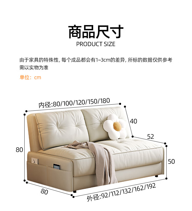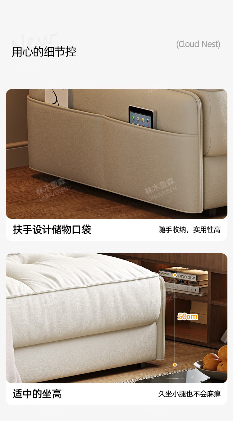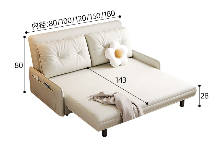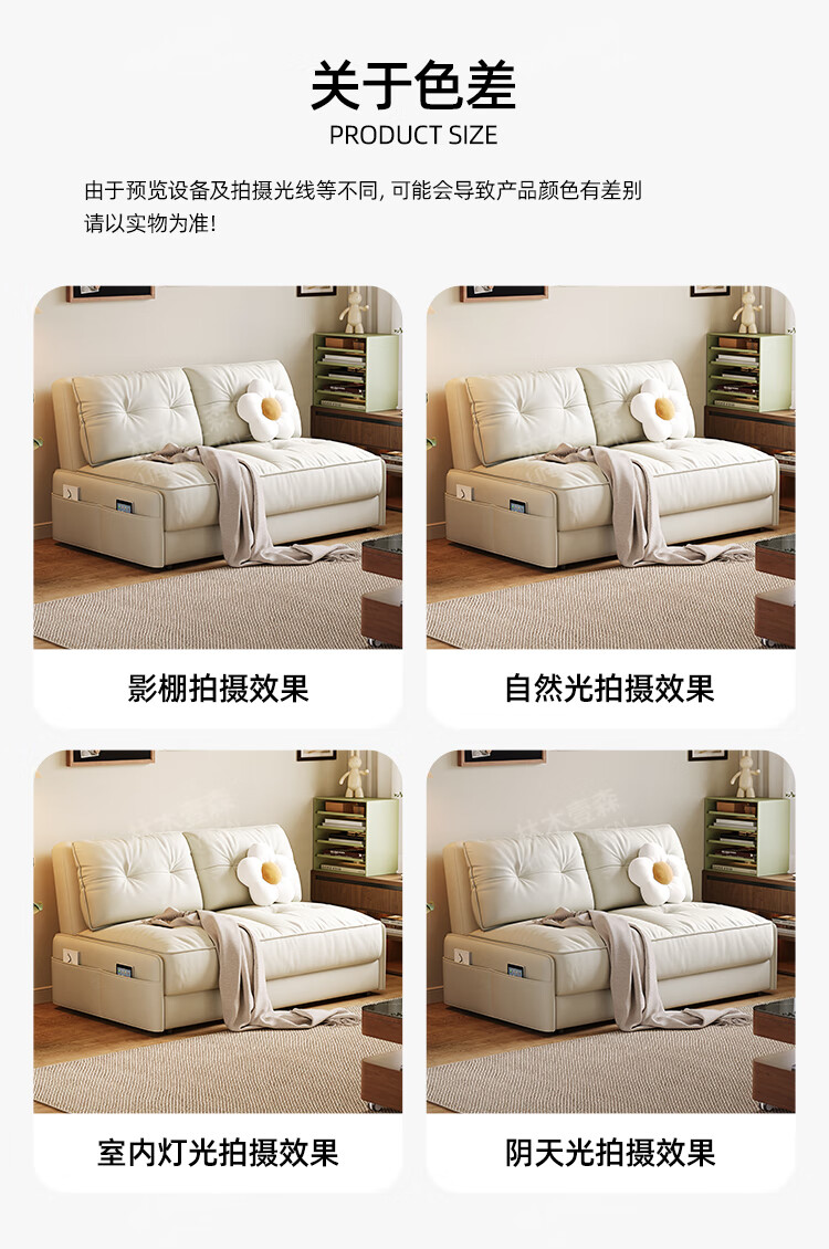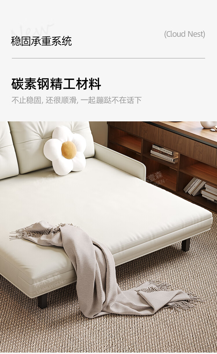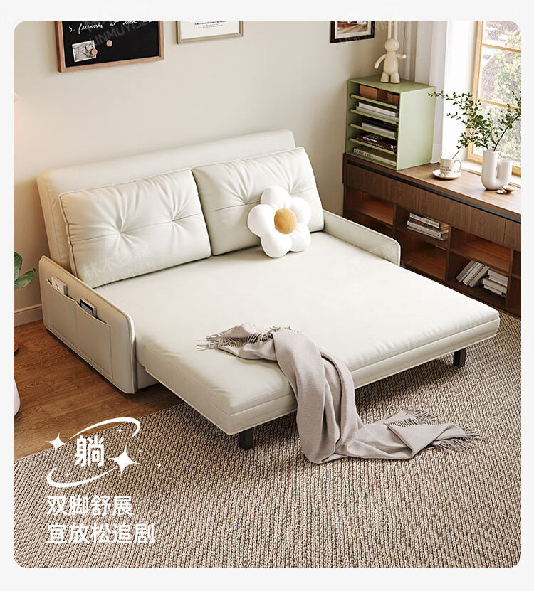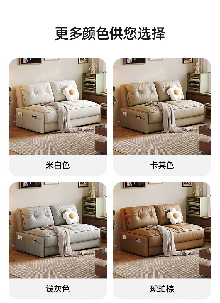 林木壹森沙发床现代简约小户型客厅书房卧室阳台可翻折家用梳化床坐卧两用 外径1.32米手动款 羽丝绒+海绵+猫抓皮+无储物