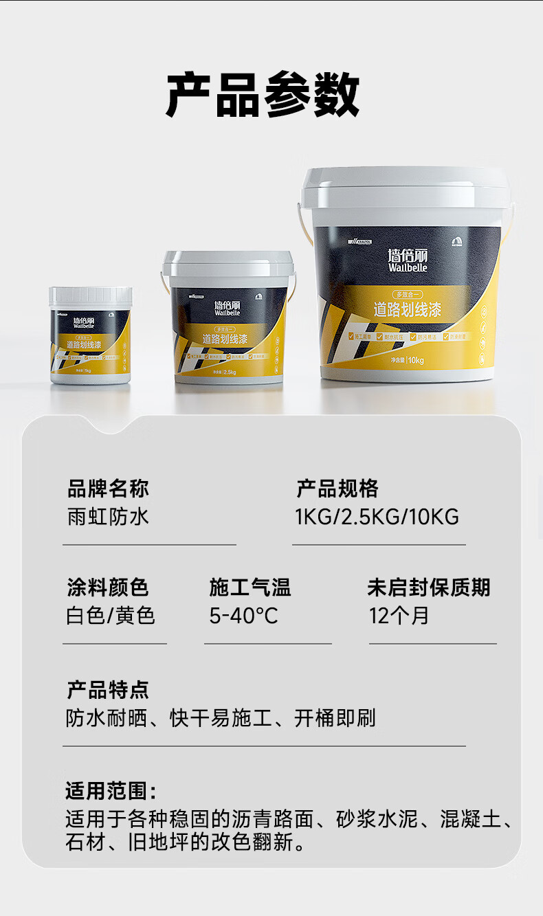 雨虹防水马路停车位道路划线漆标线漆水泥地面画线专用划线油漆 道路划线漆 抗冻耐候-白色 10kg