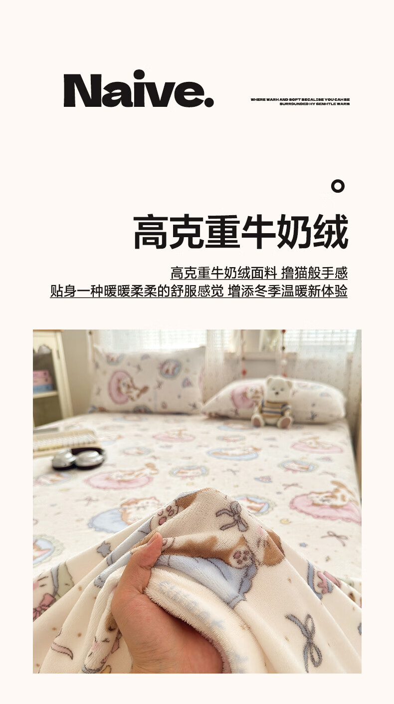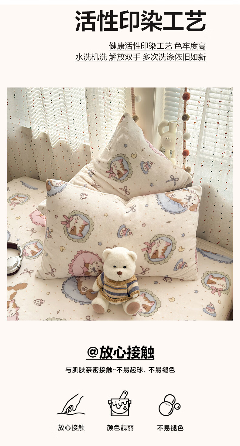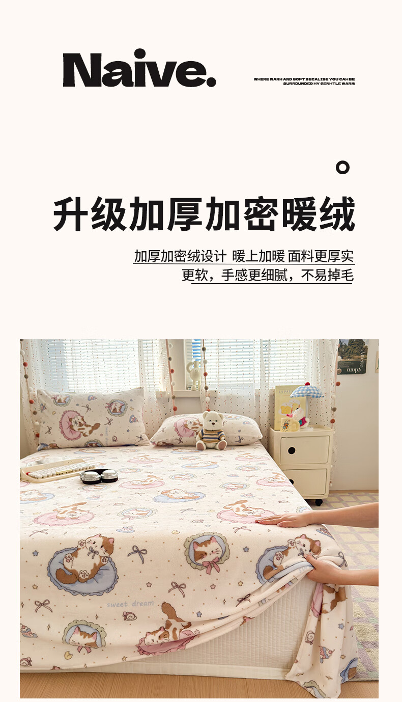 猫人(MiiOW)卡通牛奶绒床单单件 冬季加绒加厚单双人珊瑚绒被单枕套三件套 猫咪礼物【蓄热保暖 软糯亲肤】 200cm*230cm 【单件床单】