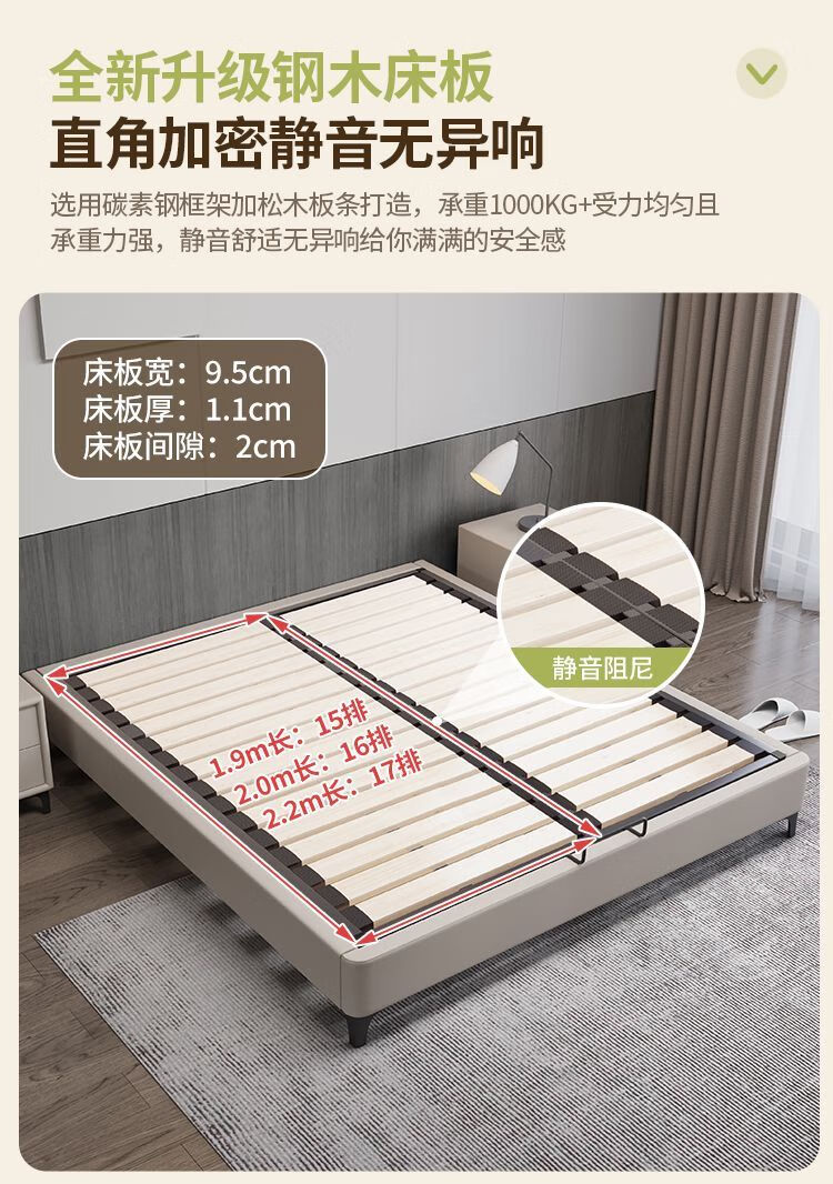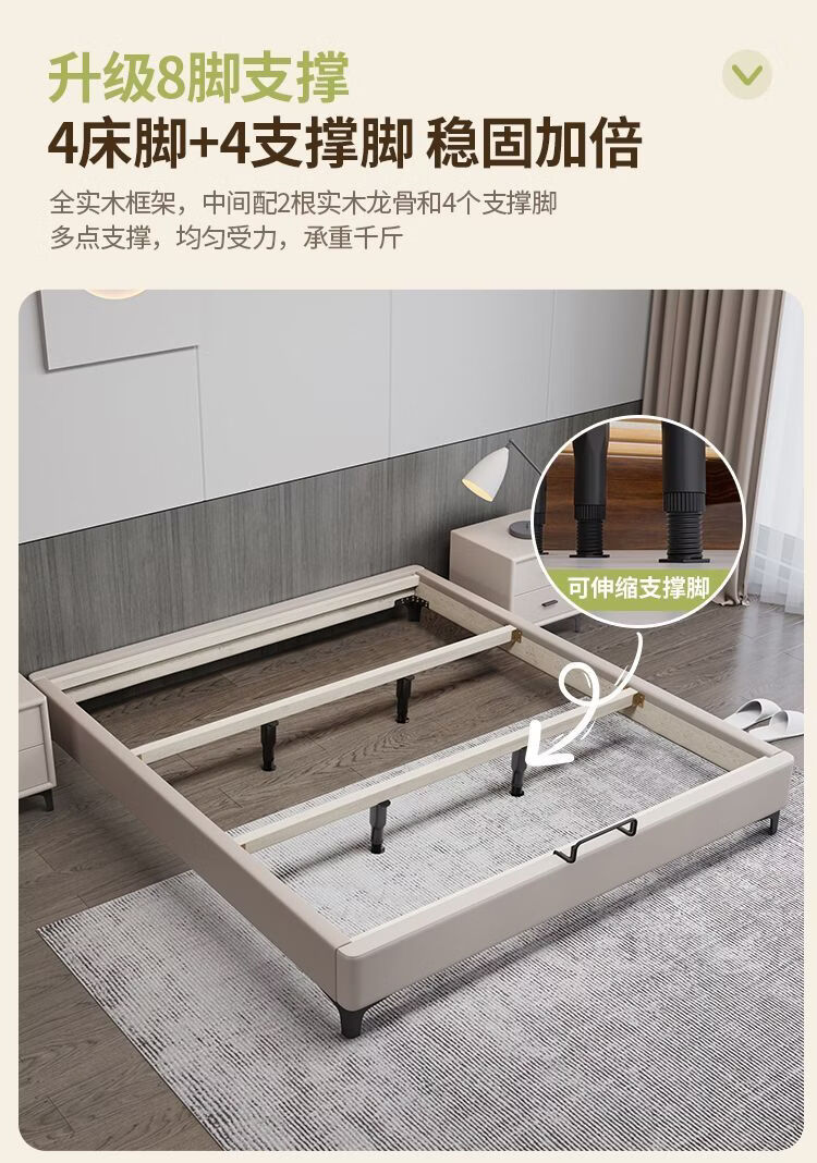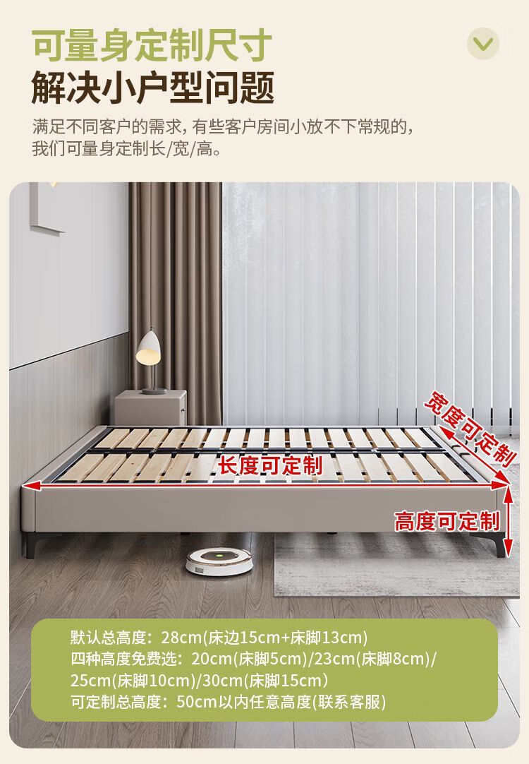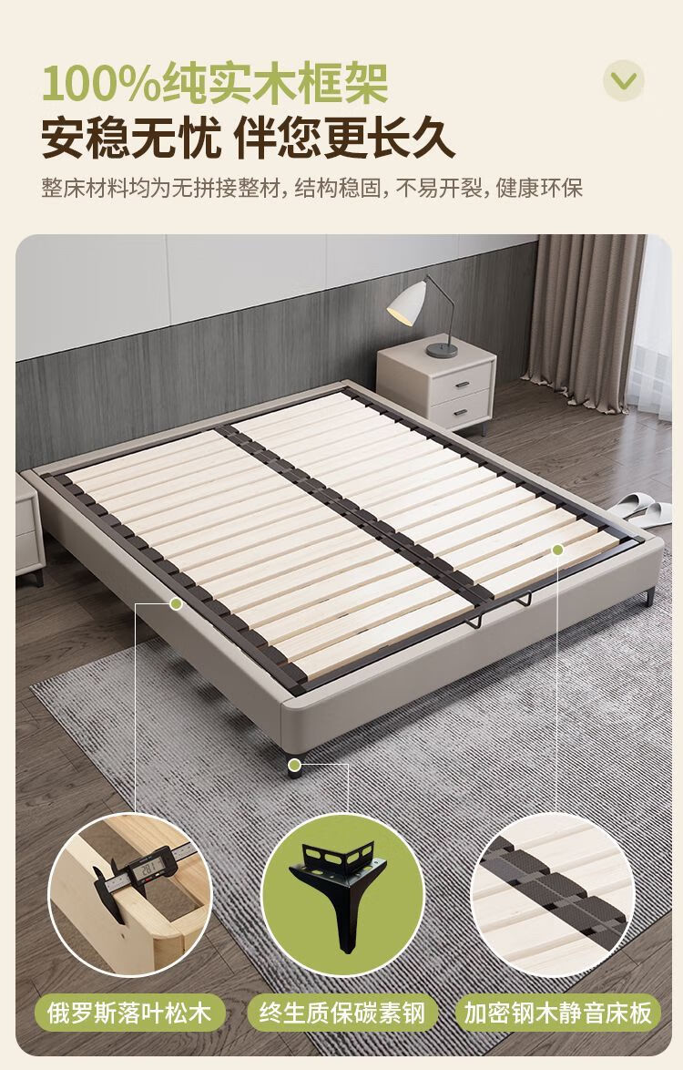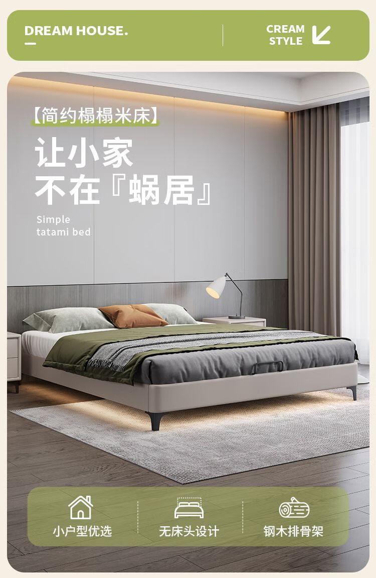 芈迪无床头床榻榻米钢木排骨架床架家用定制实木双人床奶油风主卧大床 钢木排骨架床【带灯】 1.5*2米