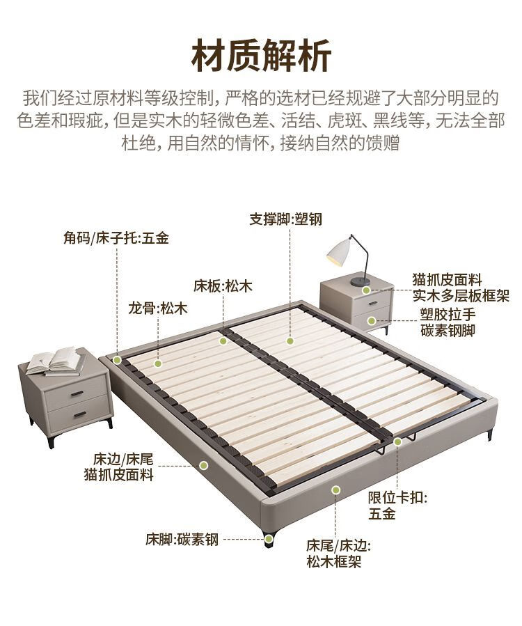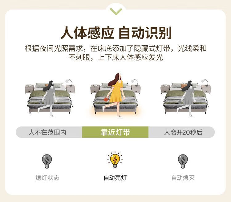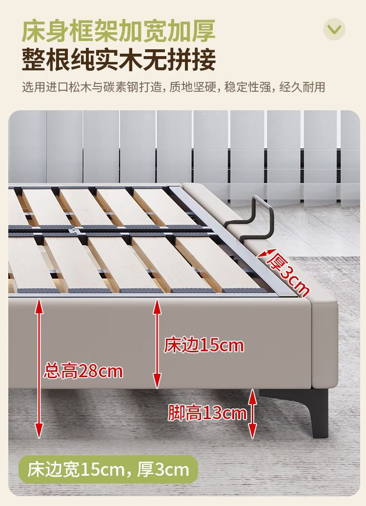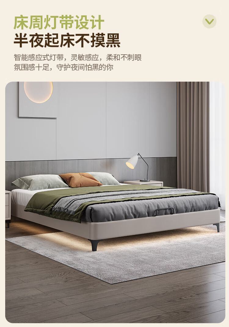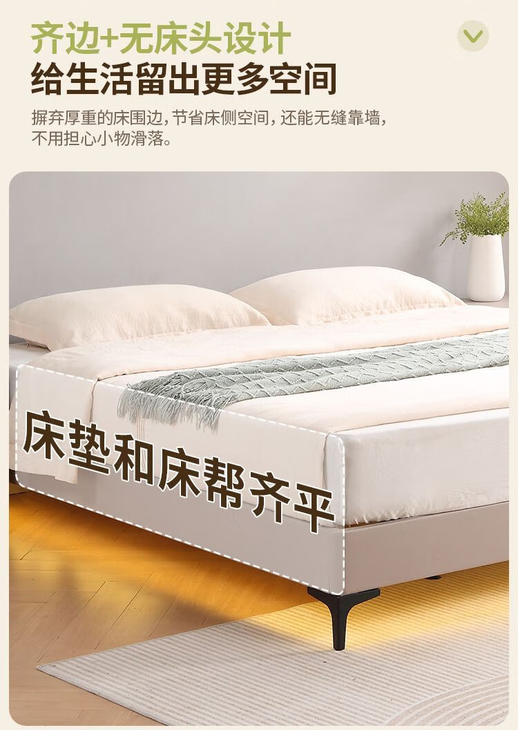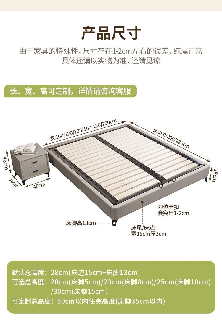 芈迪无床头床榻榻米钢木排骨架床架家用定制实木双人床奶油风主卧大床 钢木排骨架床【带灯】 1.5*2米
