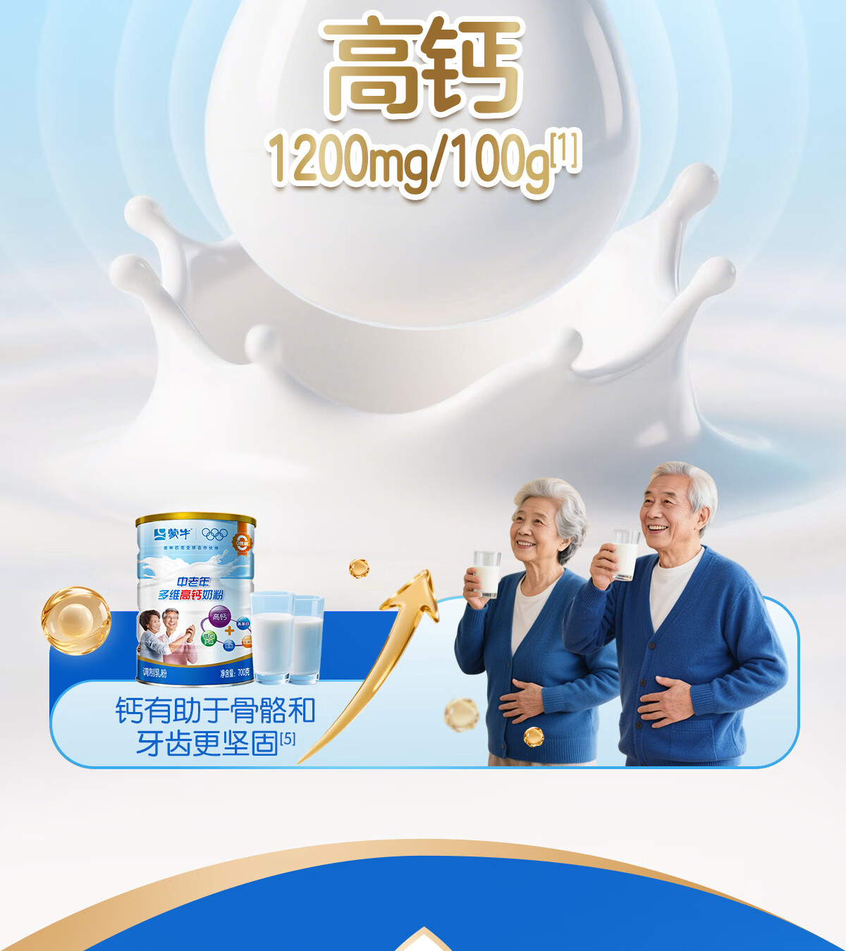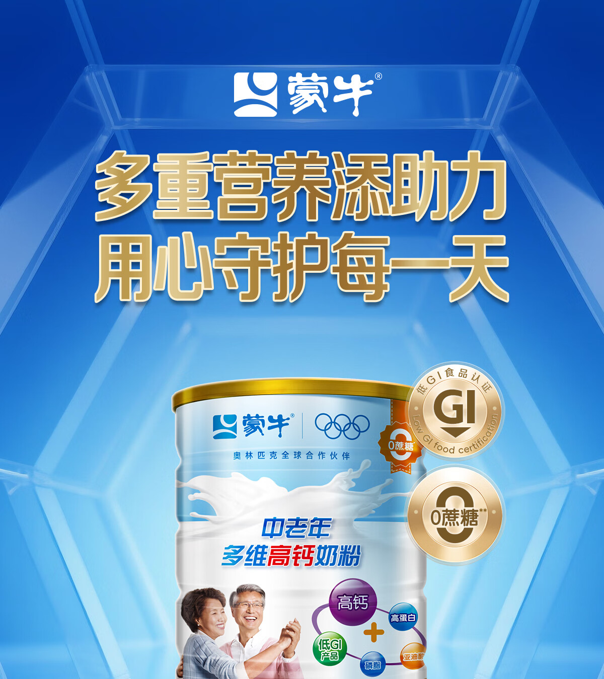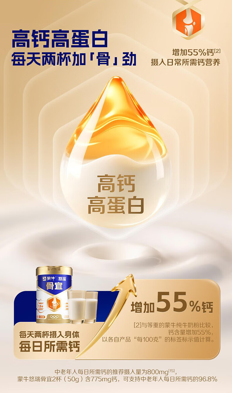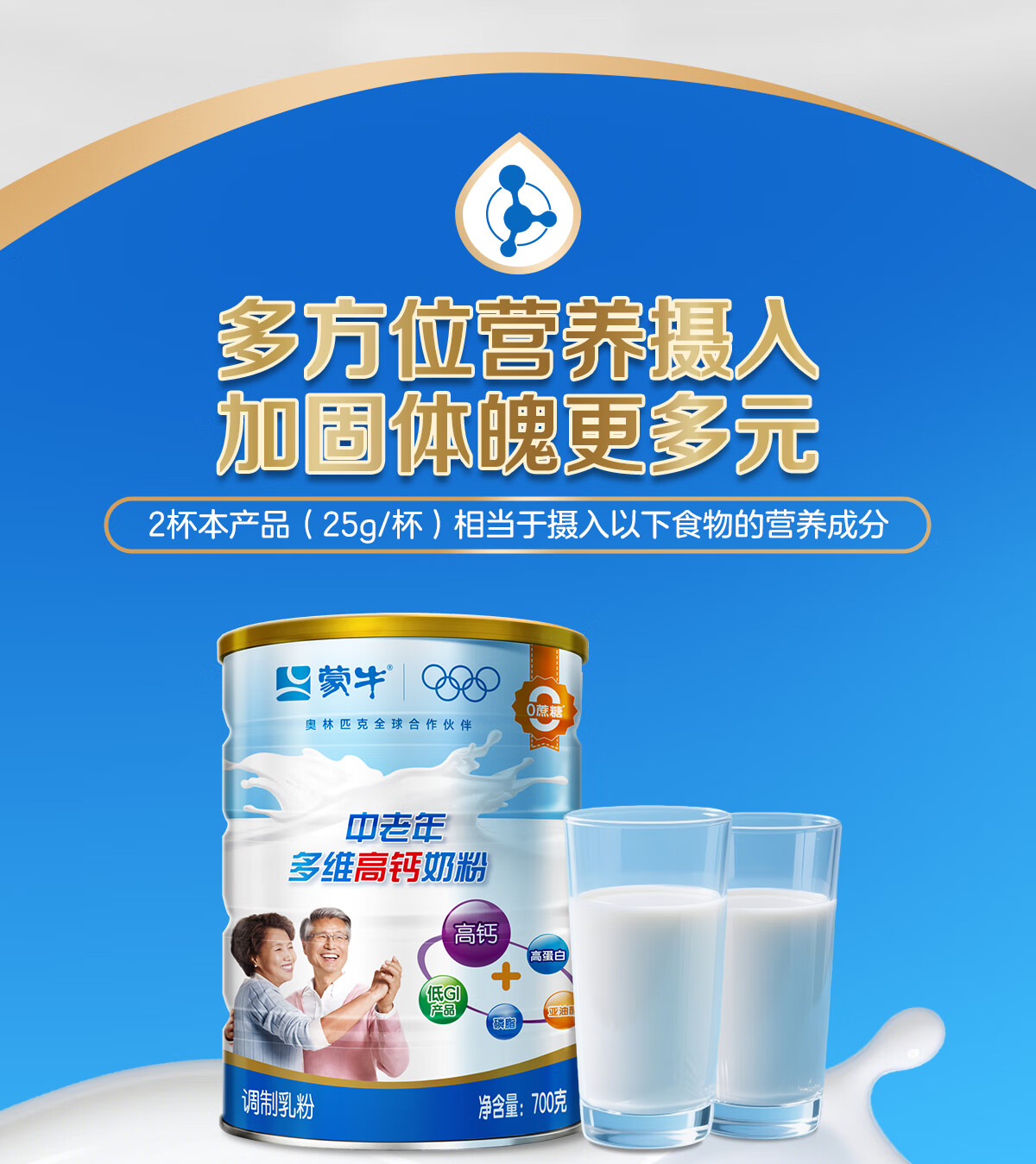 蒙牛中老年奶粉老人高钙高蛋白多维无蔗糖营养食品早餐礼盒过新年送礼 高钙营养700g*2罐(礼袋装)
