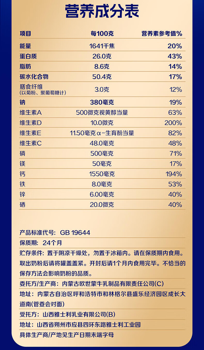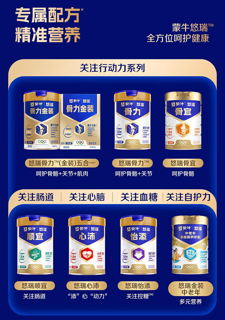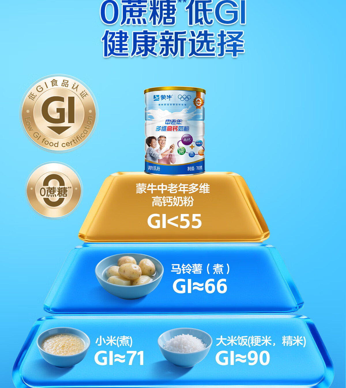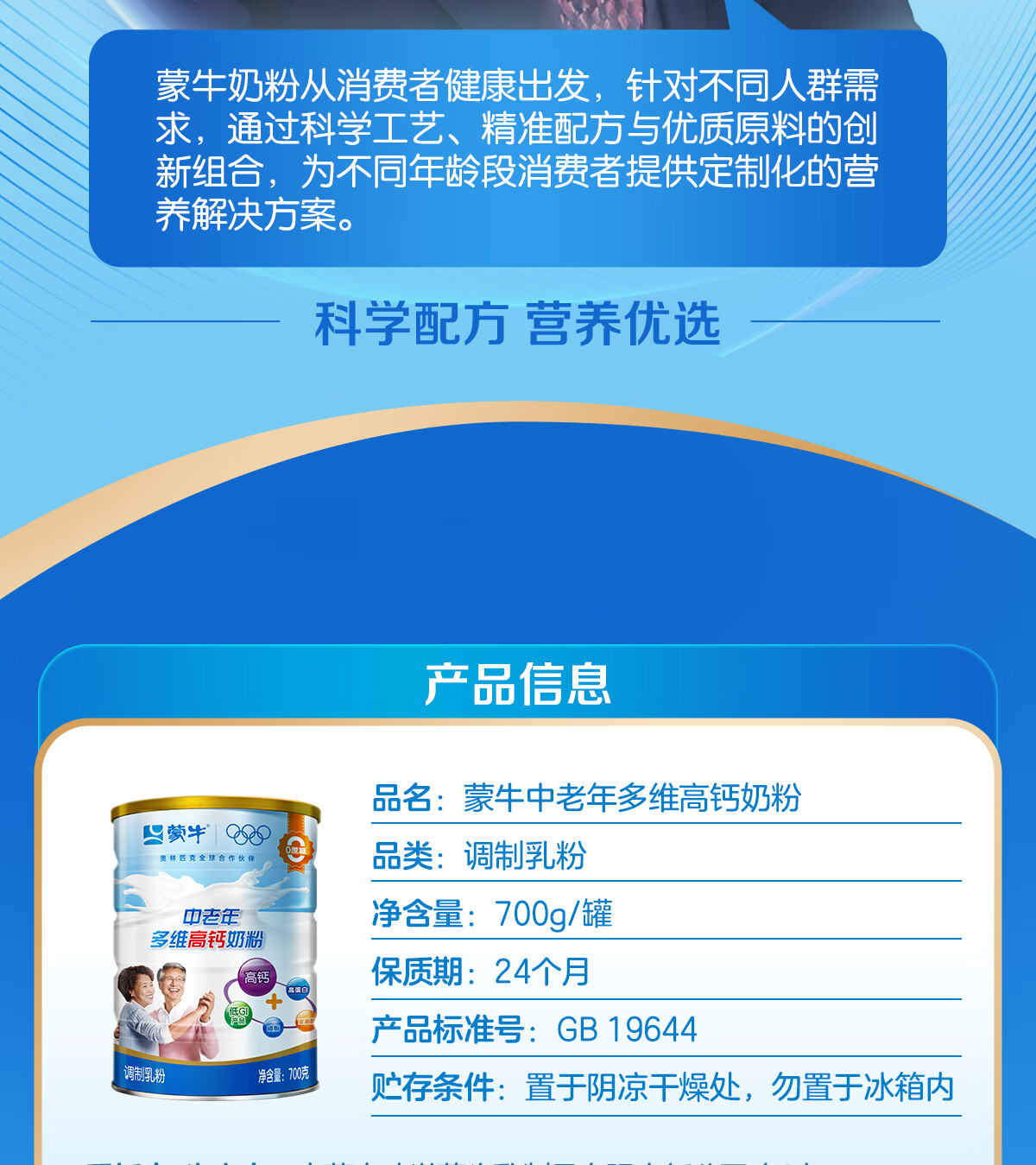 蒙牛中老年奶粉老人高钙高蛋白多维无蔗糖营养食品早餐礼盒过新年送礼 高钙营养700g*2罐(礼袋装)