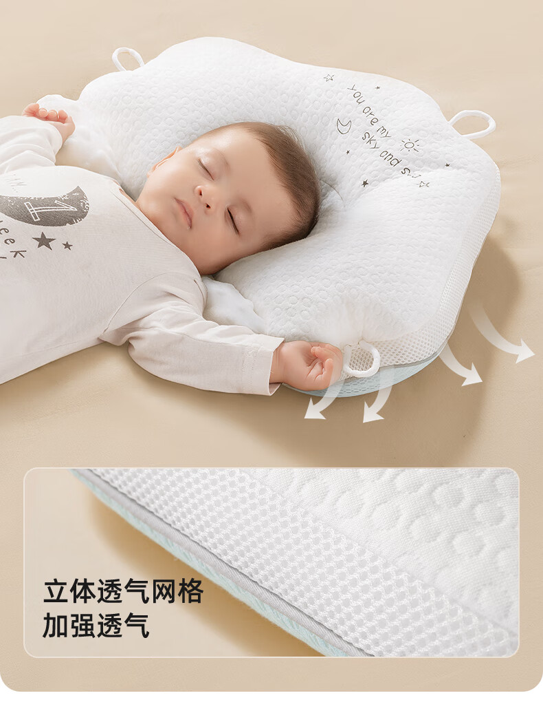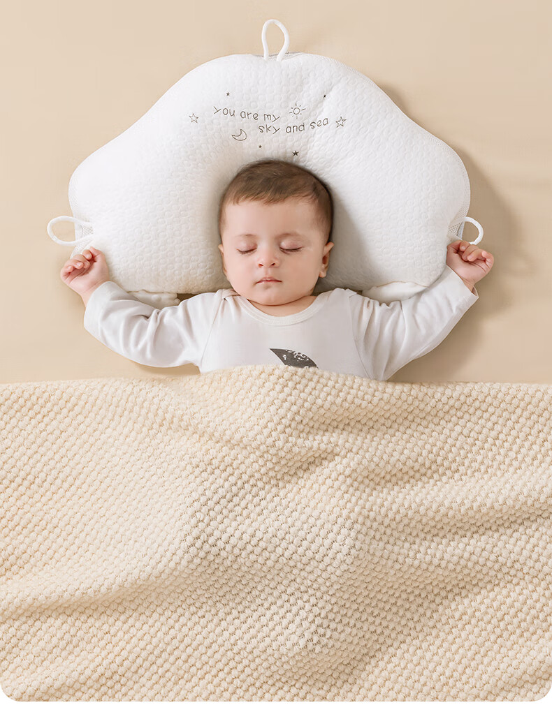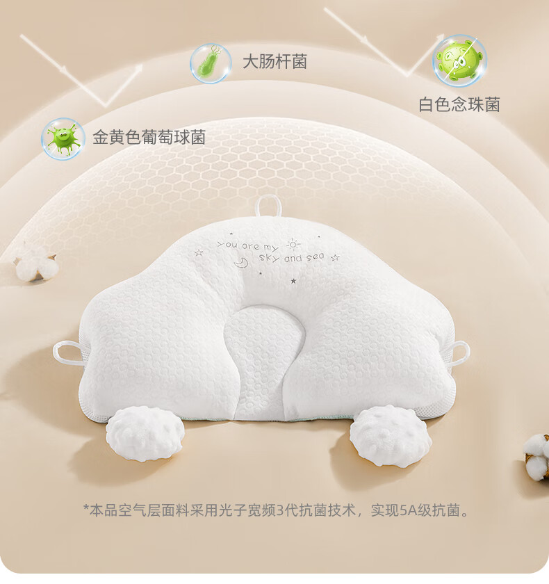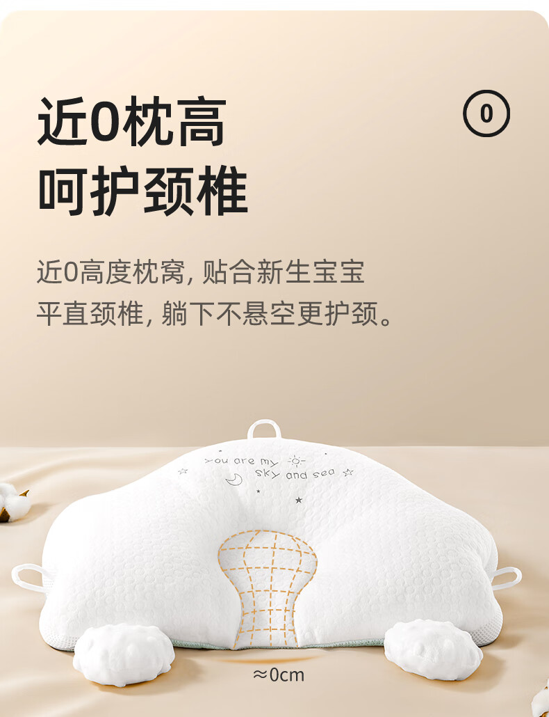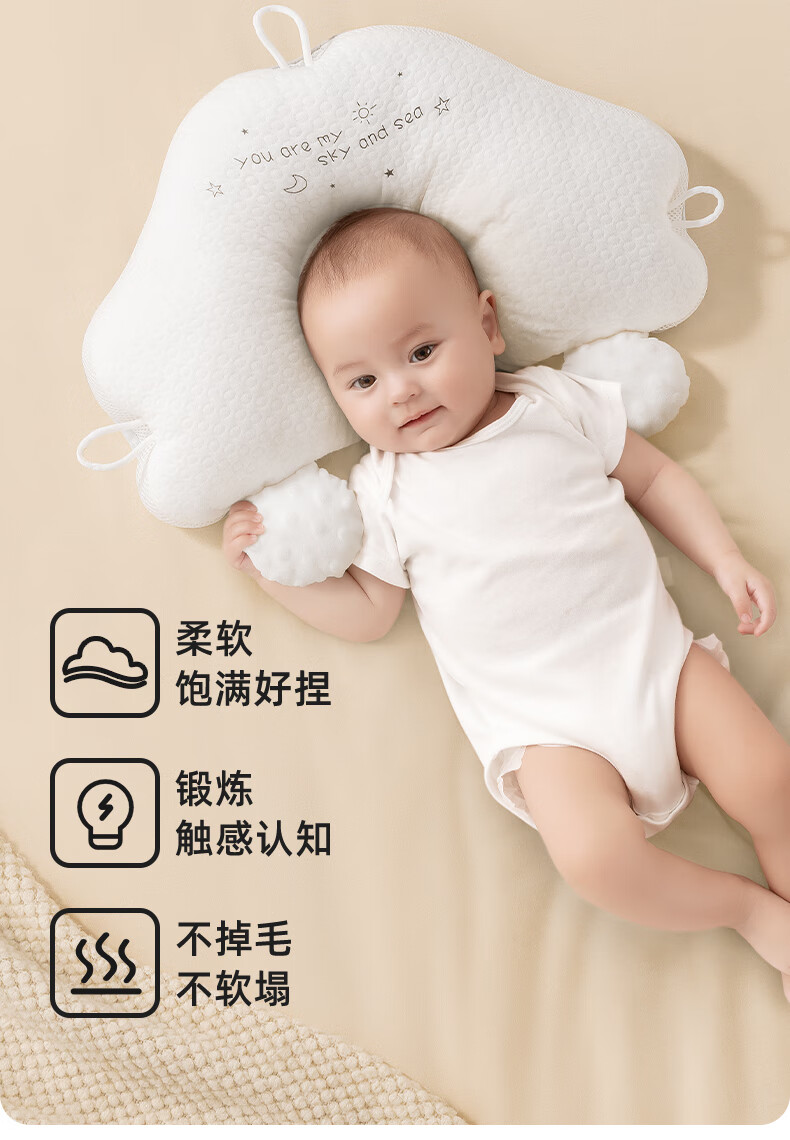 贝肽斯定型枕头婴儿防惊跳安抚枕头0-1岁定型枕睡觉喂奶神器 布恩小云朵/粉色【杜邦棉】【47*30cm】