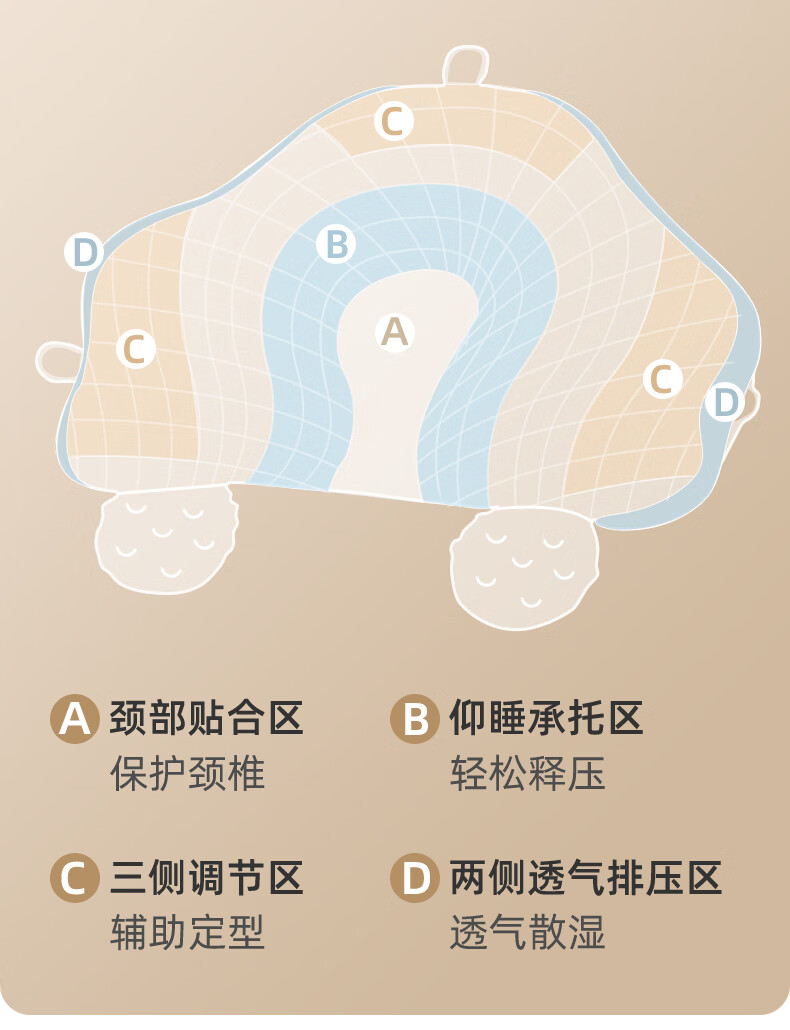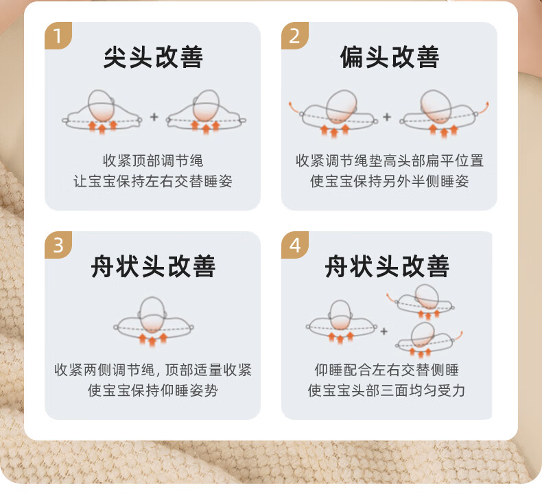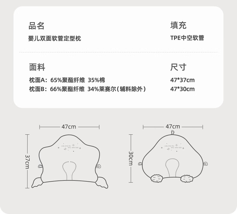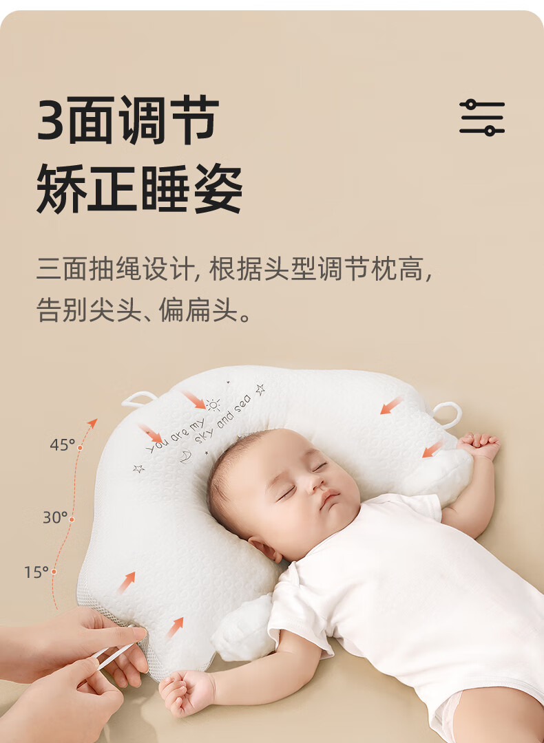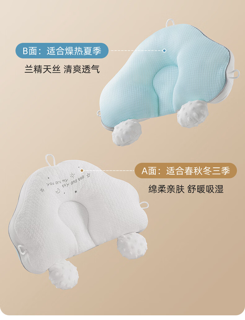 贝肽斯定型枕头婴儿防惊跳安抚枕头0-1岁定型枕睡觉喂奶神器 布恩小云朵/粉色【杜邦棉】【47*30cm】