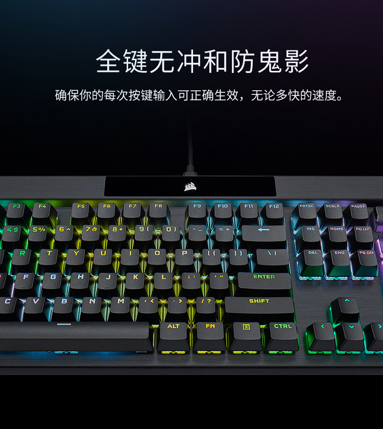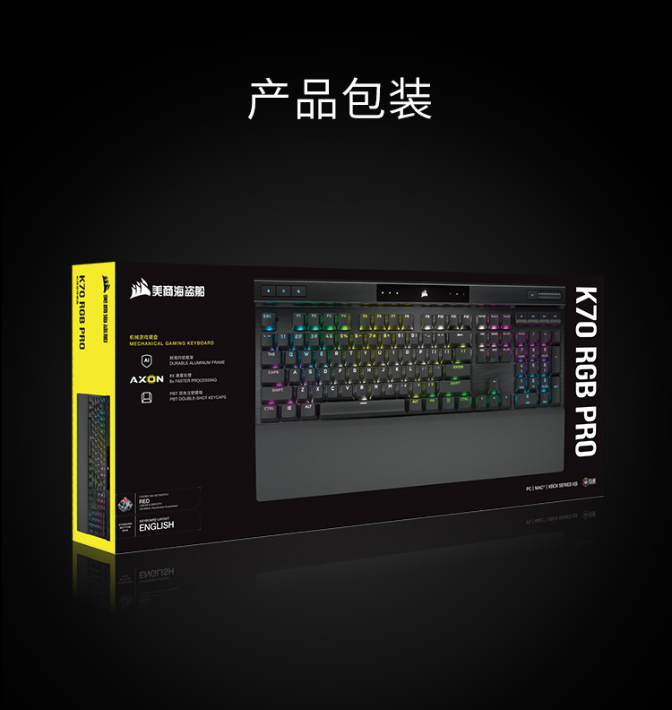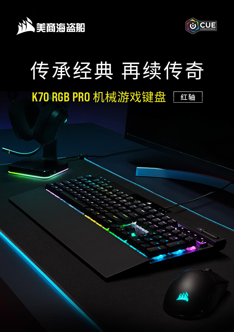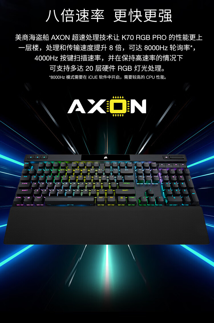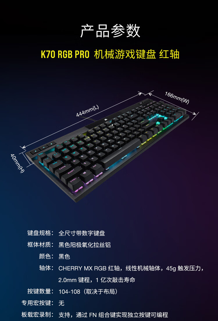 美商海盗船(USCORSAIR) K70 RGB PRO 机械键盘 游戏键盘 全尺寸 8000Hz 竞技模式 铝框体 黑色 樱桃红轴