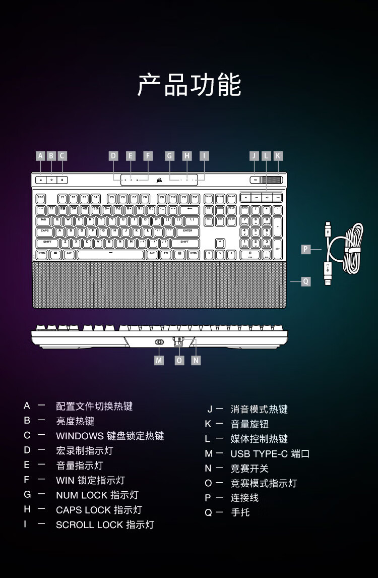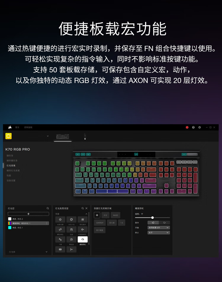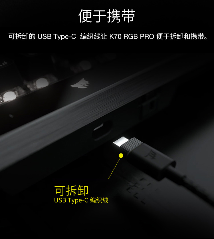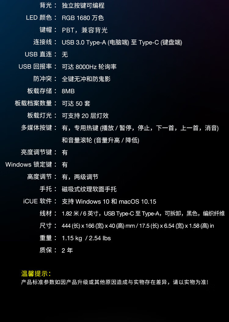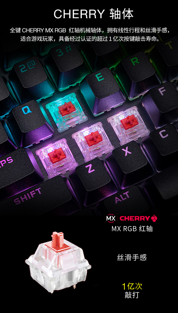 美商海盗船(USCORSAIR) K70 RGB PRO 机械键盘 游戏键盘 全尺寸 8000Hz 竞技模式 铝框体 黑色 樱桃红轴