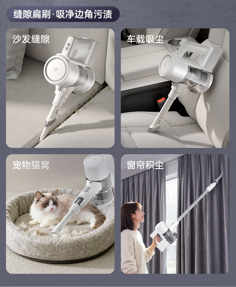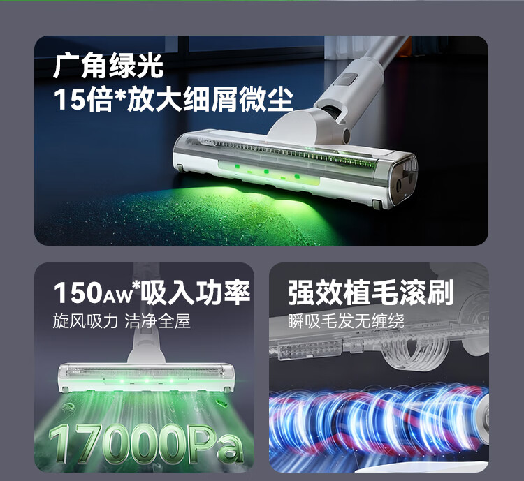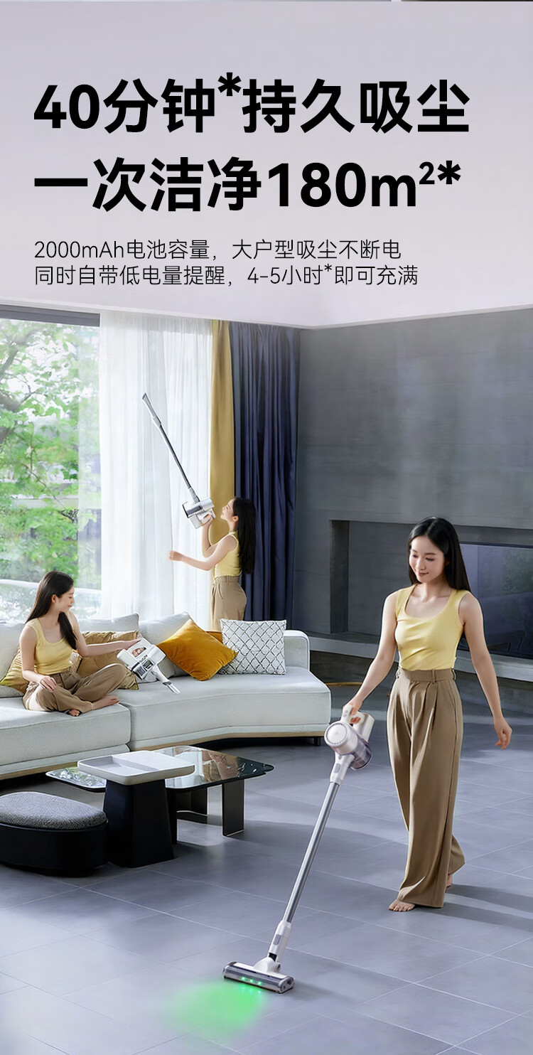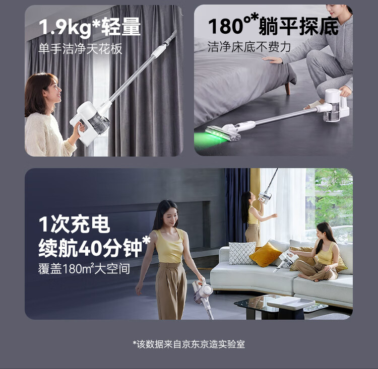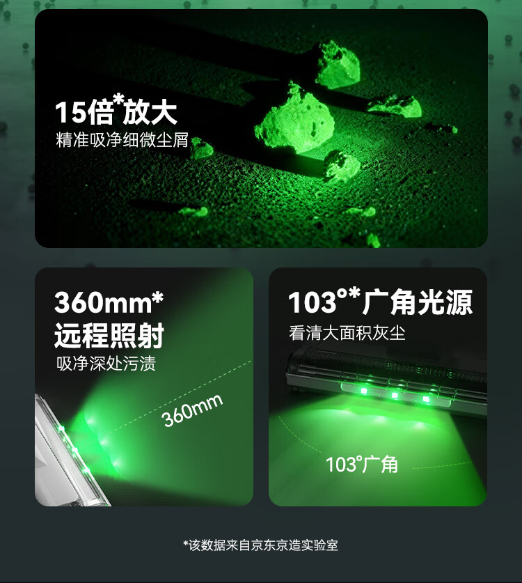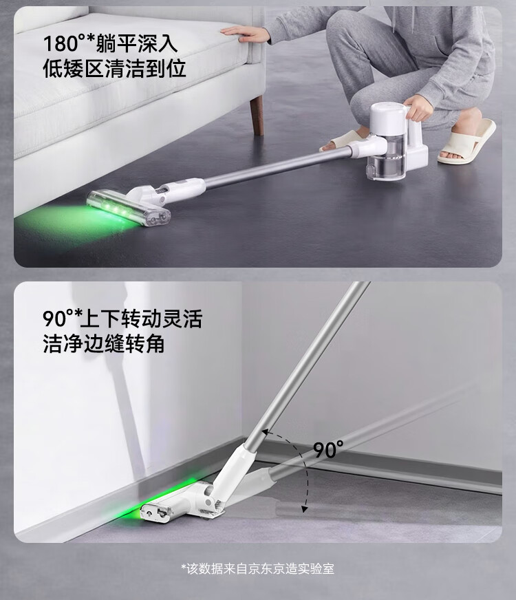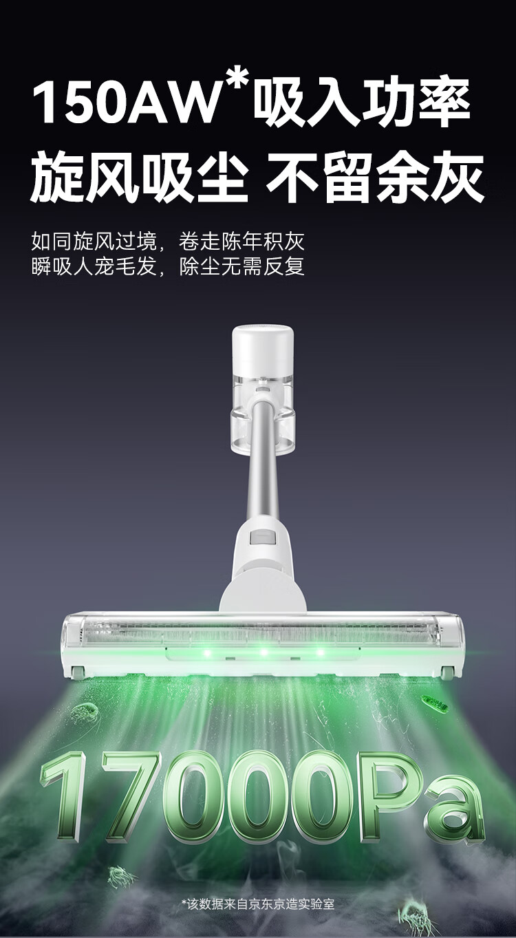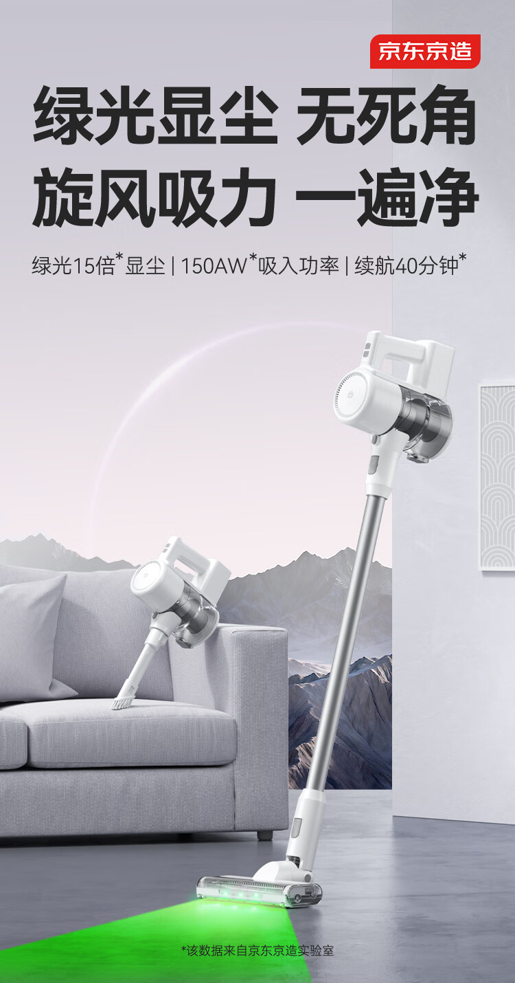 京东京造吸尘器家用无线手持智能 绿光显尘除尘除宠物毛发 大吸力长续航吸尘机小旋风二代