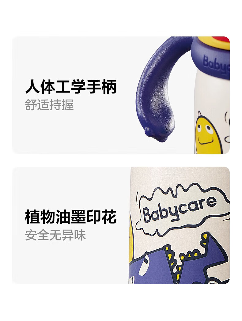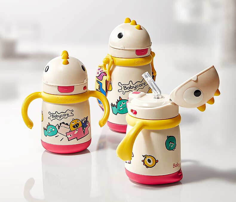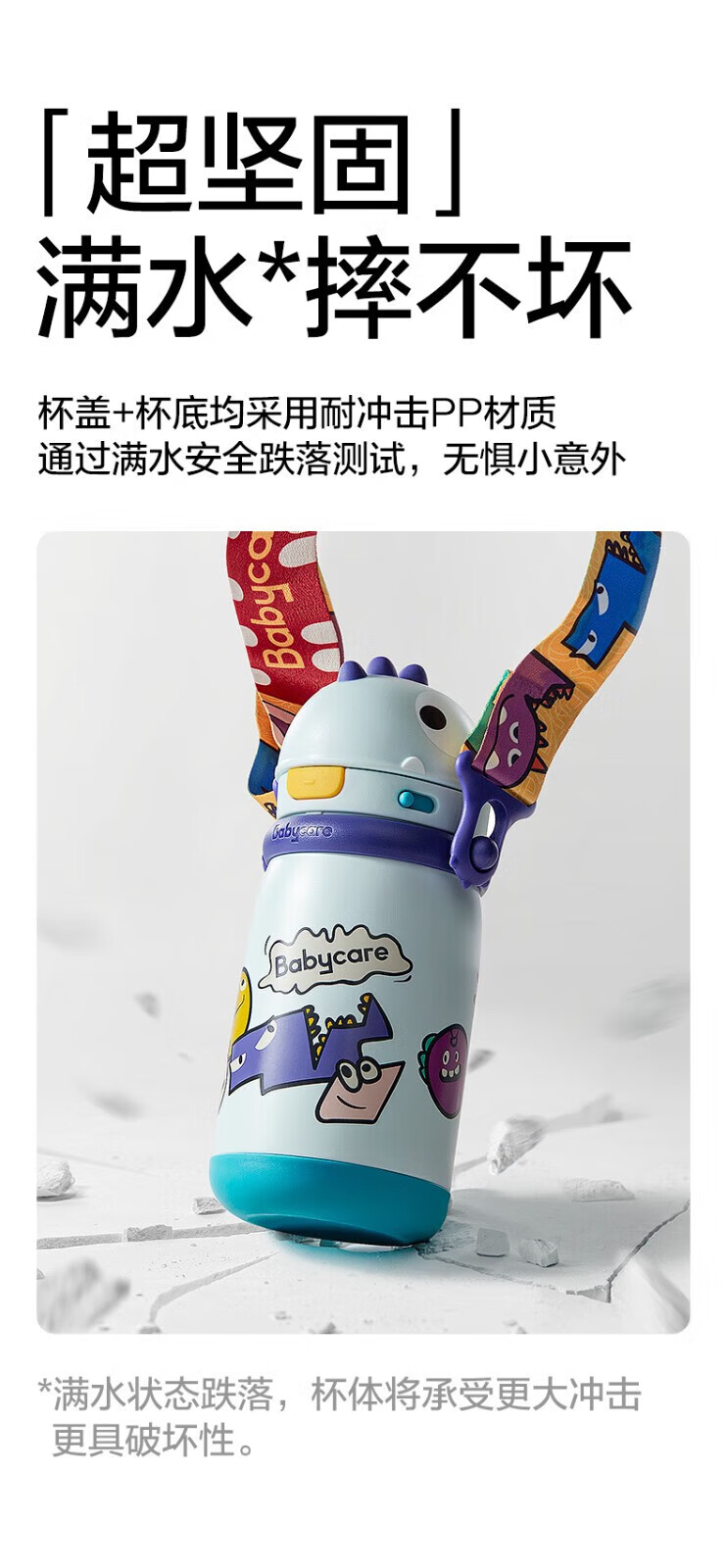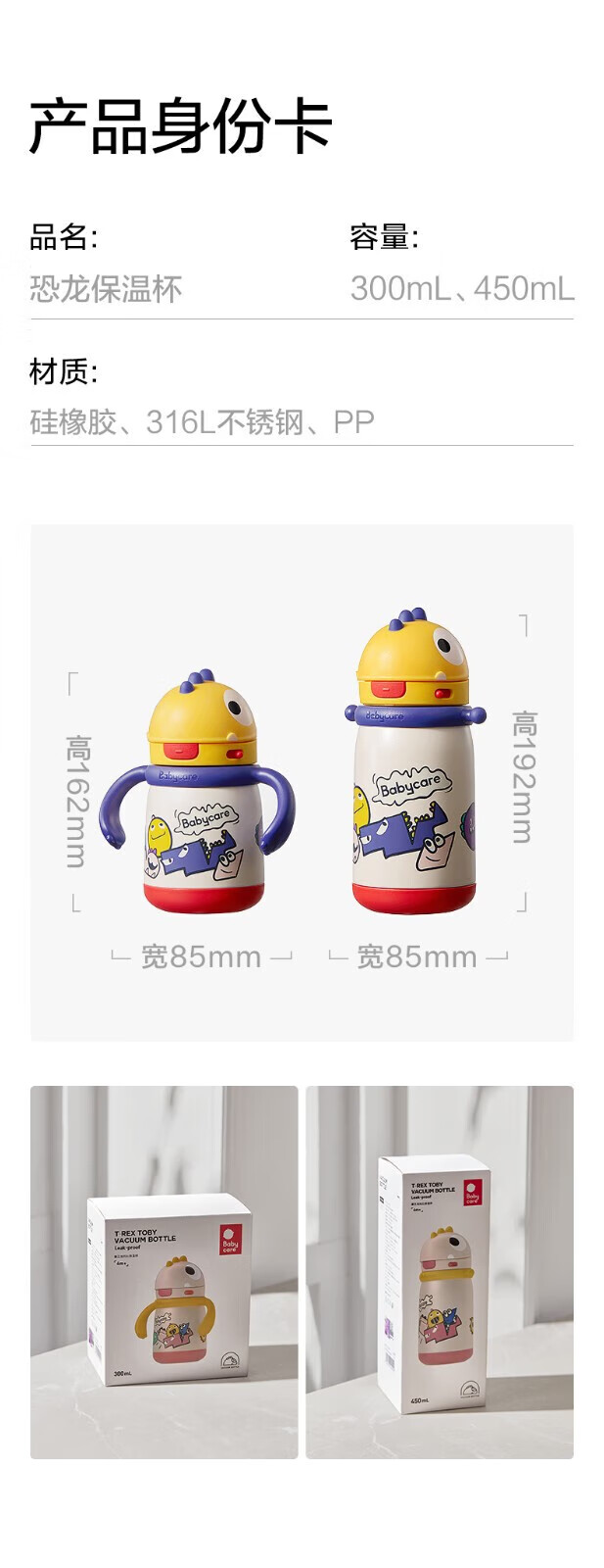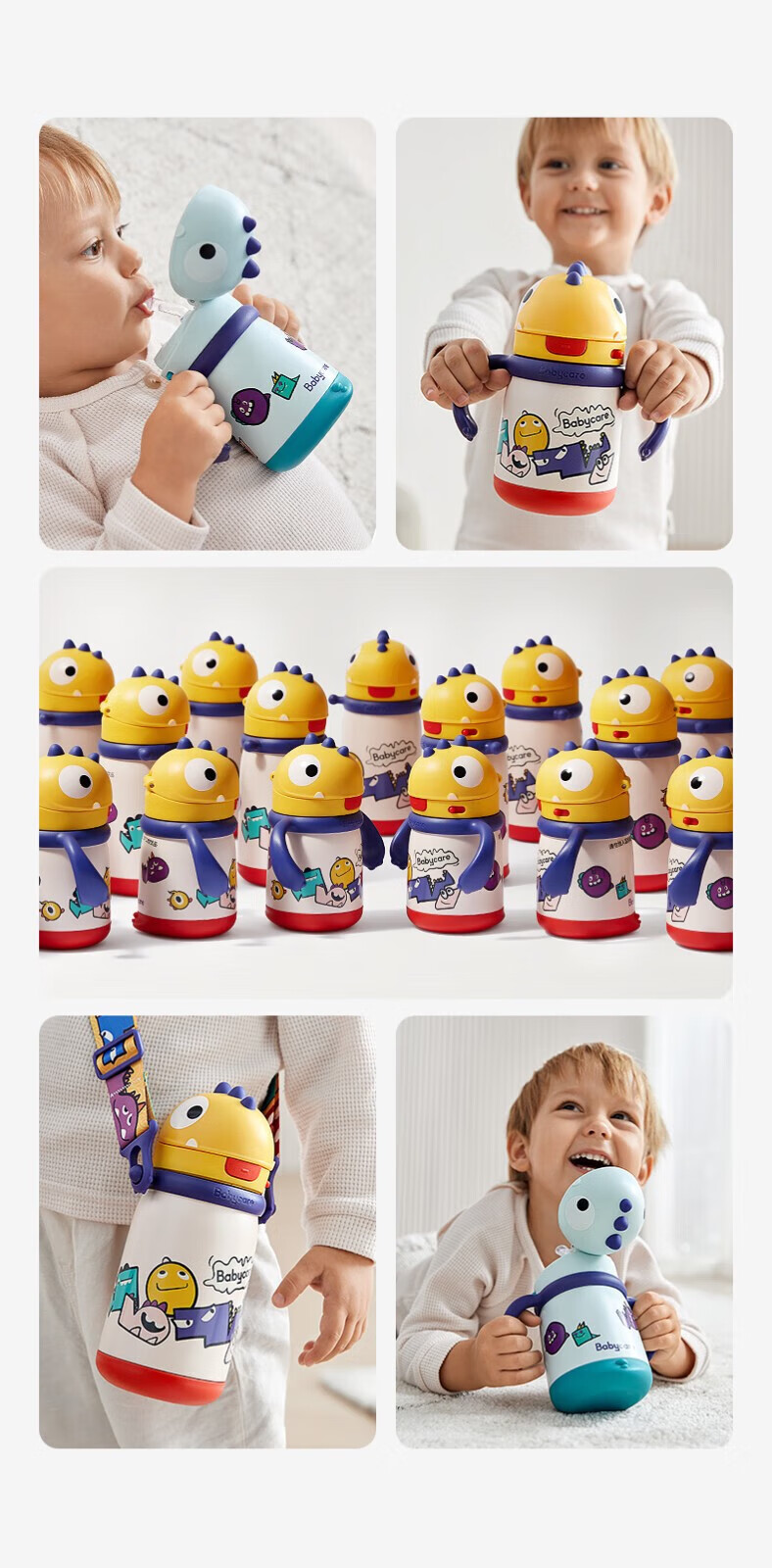 babycare儿童保温杯bbc婴儿霸王龙水杯恐龙保温杯宝宝幼儿园学生水壶 450ml引力洋红【背带款】