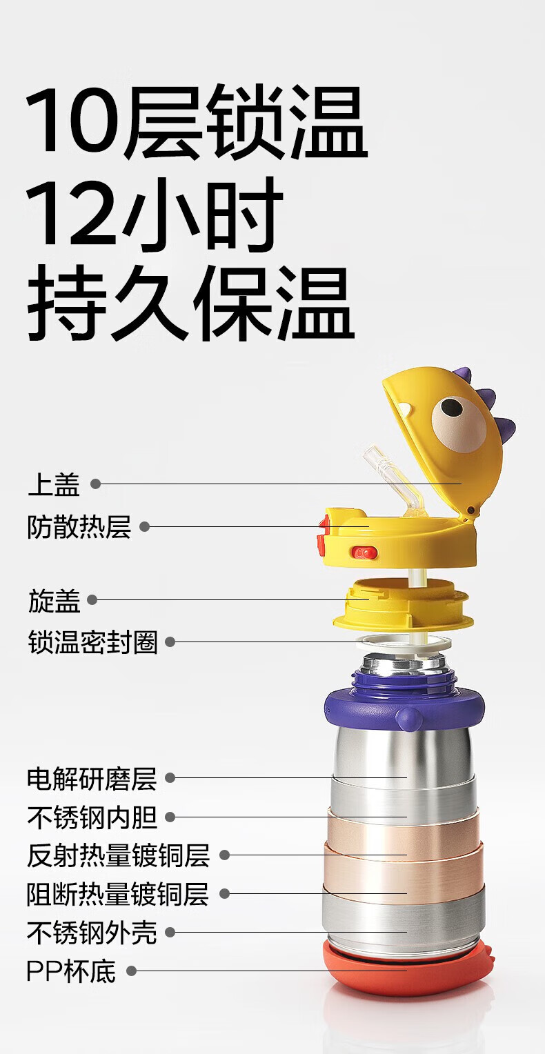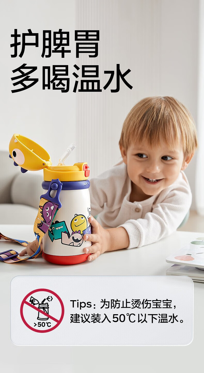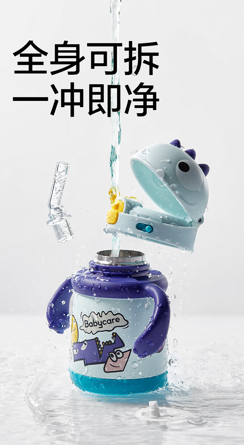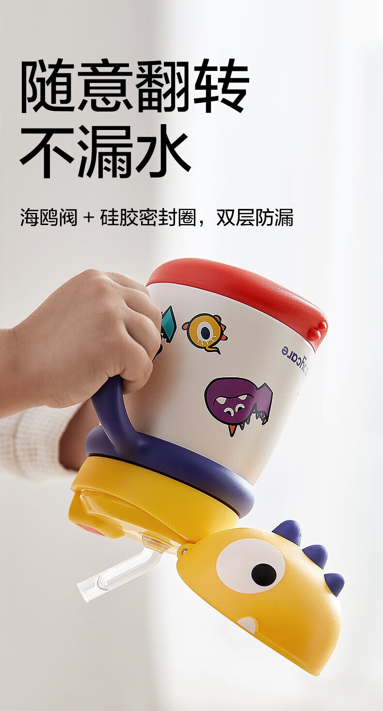 babycare儿童保温杯bbc婴儿霸王龙水杯恐龙保温杯宝宝幼儿园学生水壶 450ml引力洋红【背带款】