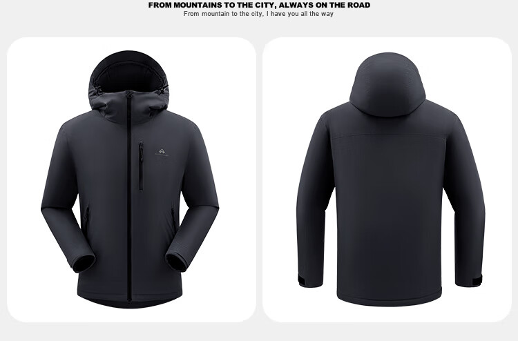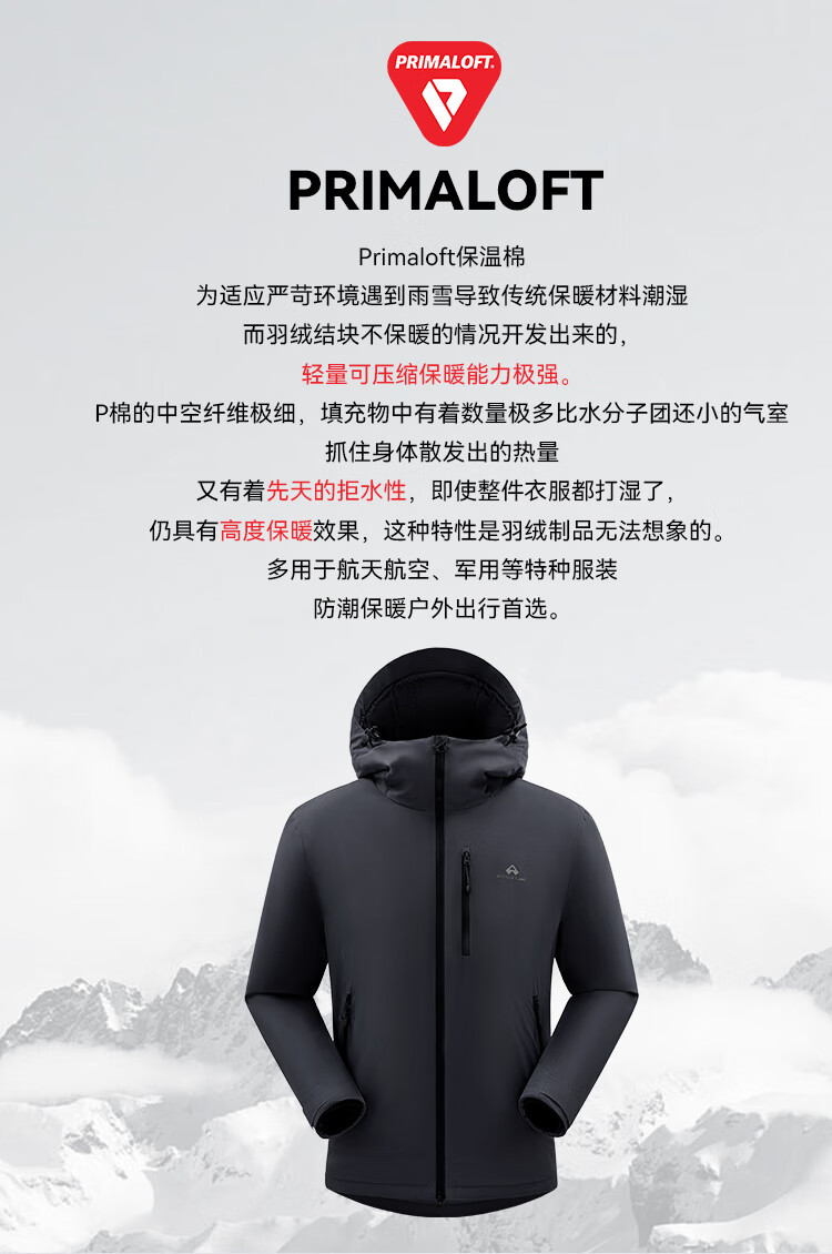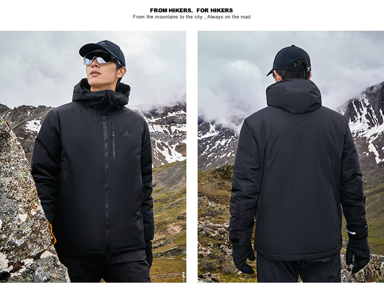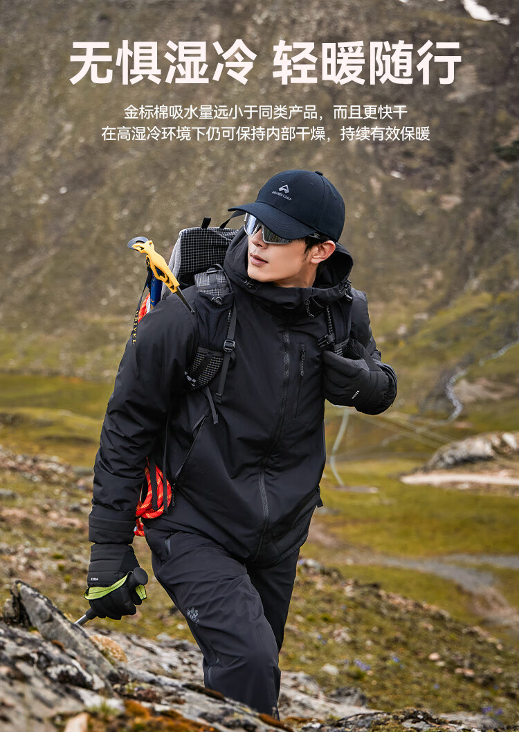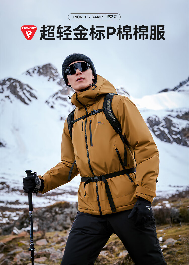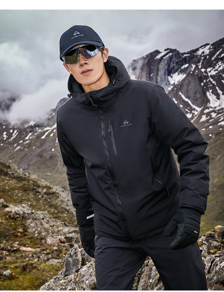 拓路者雪豹金标p棉棉服男连帽冬季新款保暖加厚款棉衣男士棉袄外套男装 矿石黑-男款 XL
