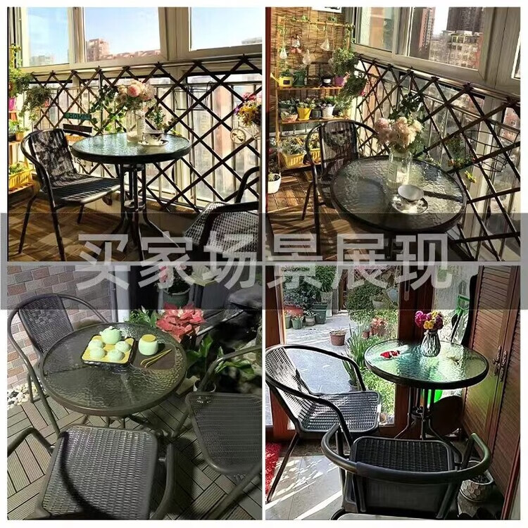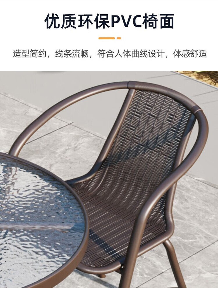欣慕雅户外庭院桌椅组合室外休闲露天露台花园椅子藤编喝茶桌藤椅三件套 2把镂空椅+60cm圆桌