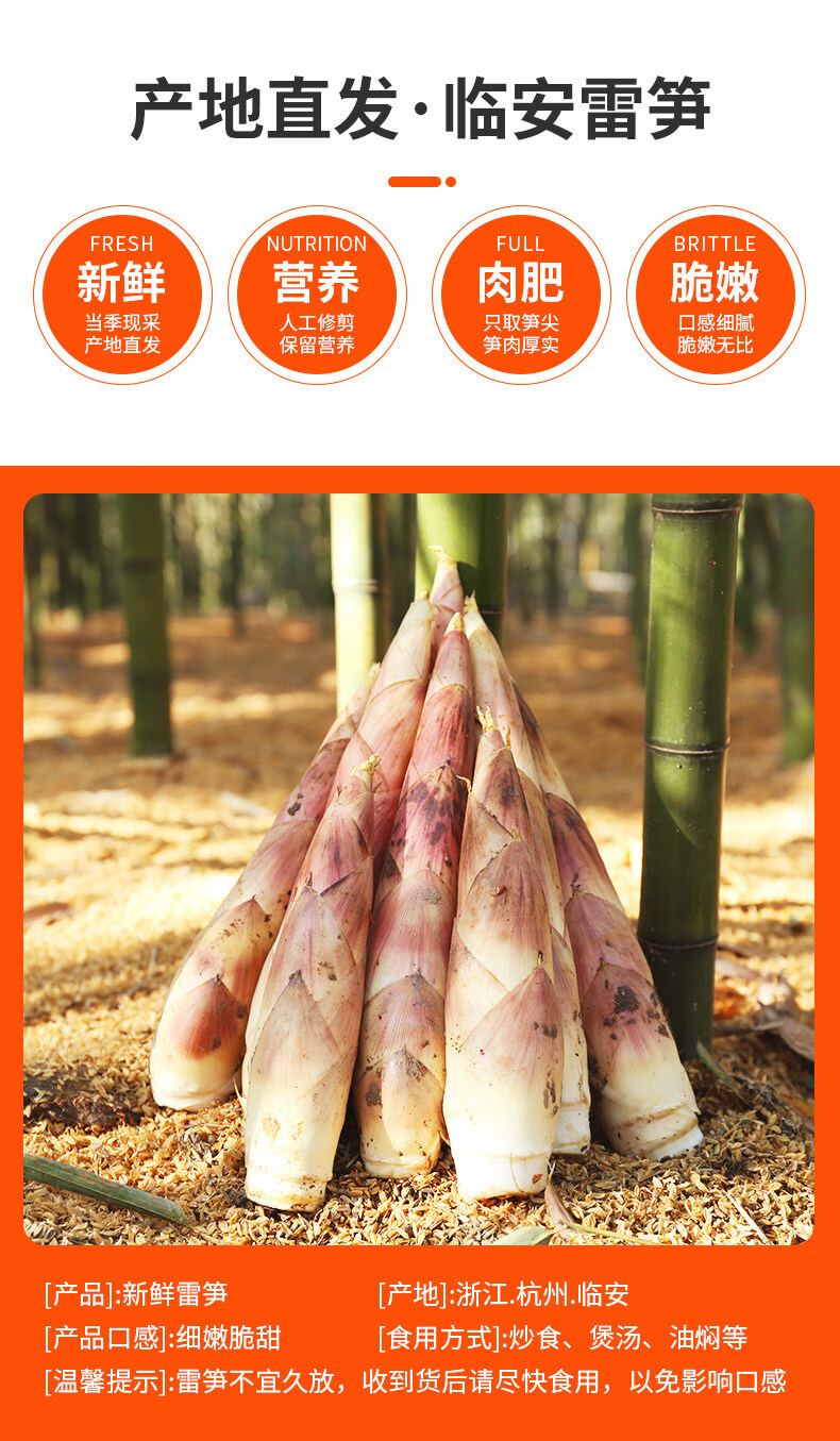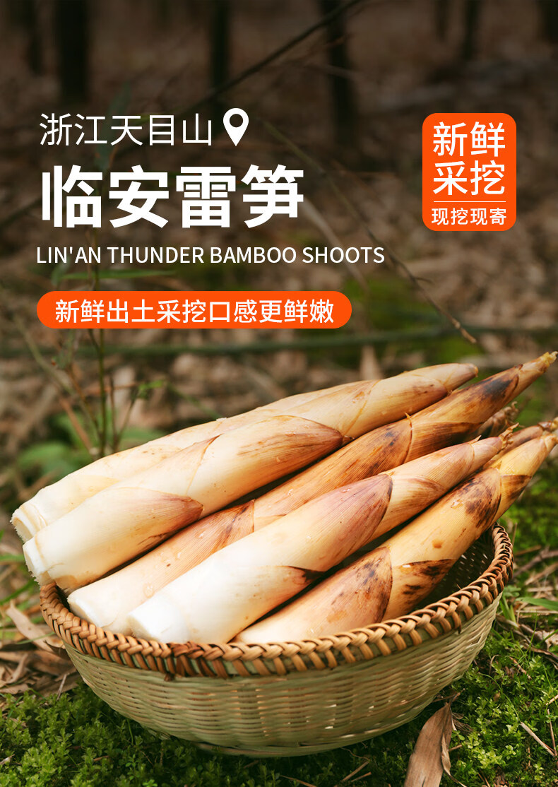 【春菜尝鲜】正宗天目山春笋雷竹笋去老根发货当季蔬菜京东包邮 新鲜春笋5斤 净重