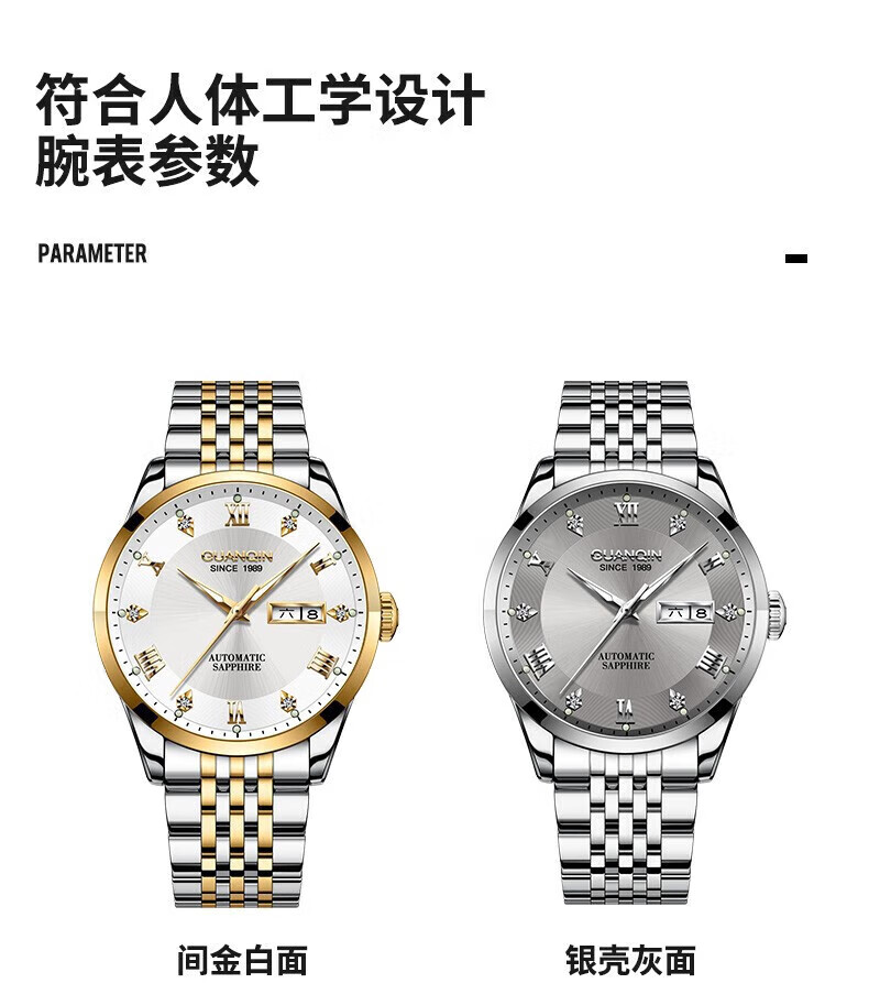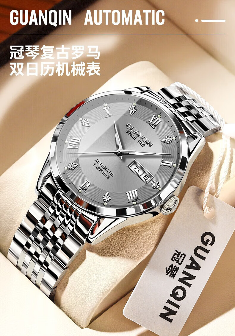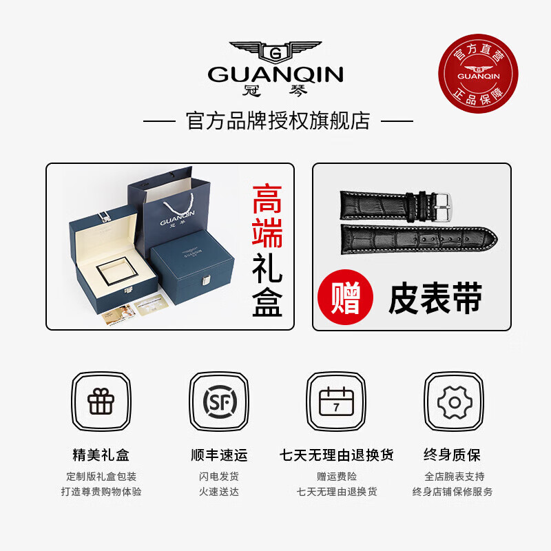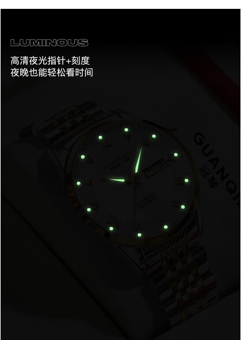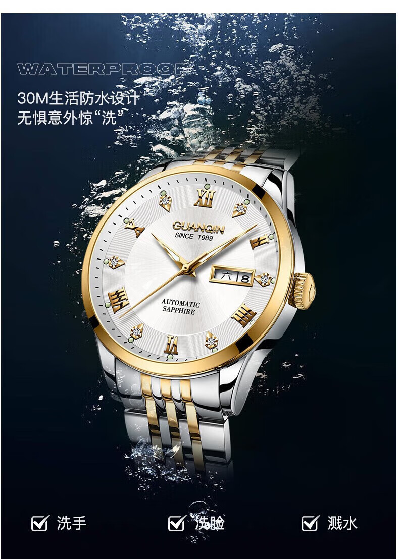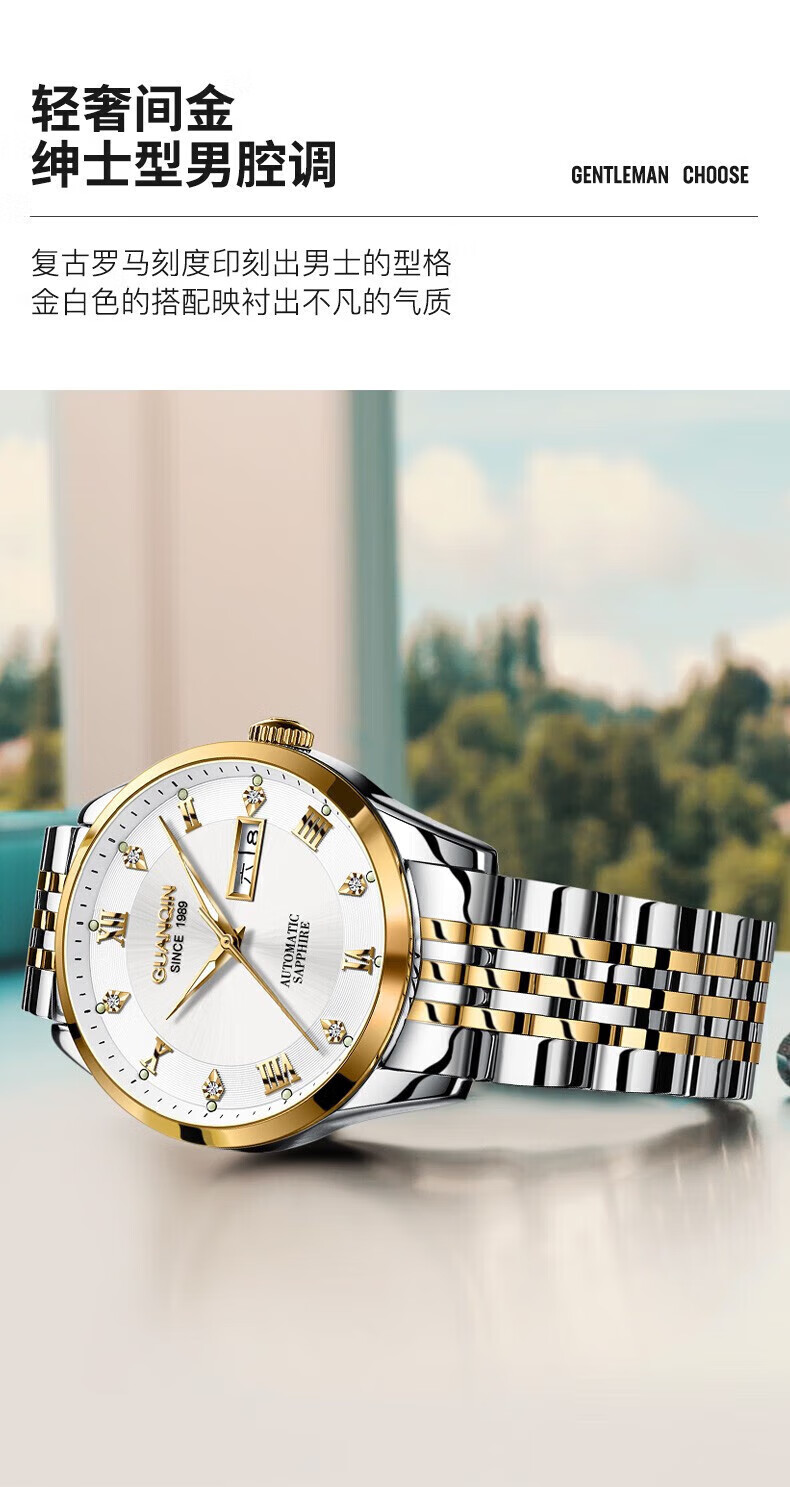 冠琴(GUANQIN)手表男士全自动机械表瑞士名表十大品牌进口机芯夜光防水高端男表 【典藏版】高贵间金【升级进口机芯】