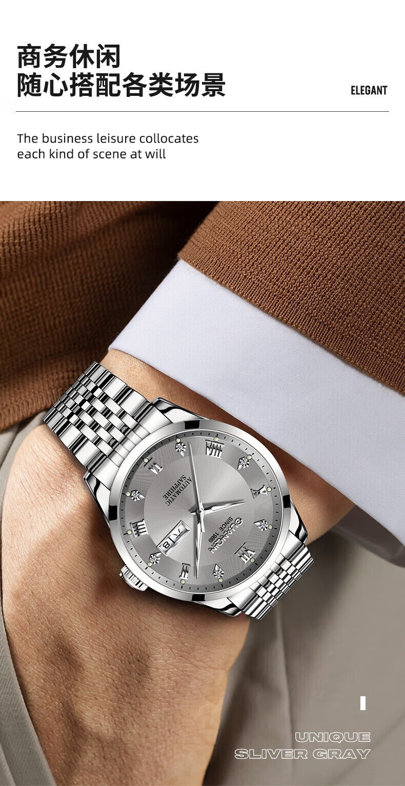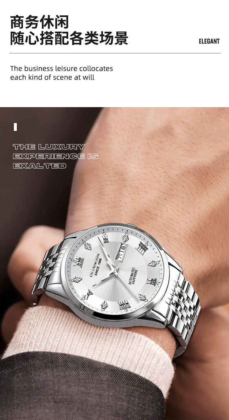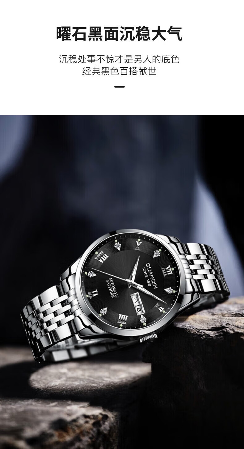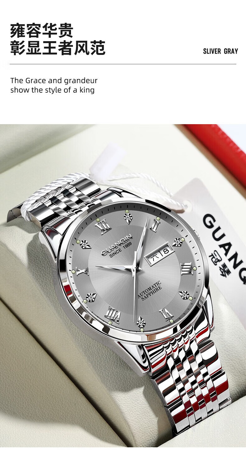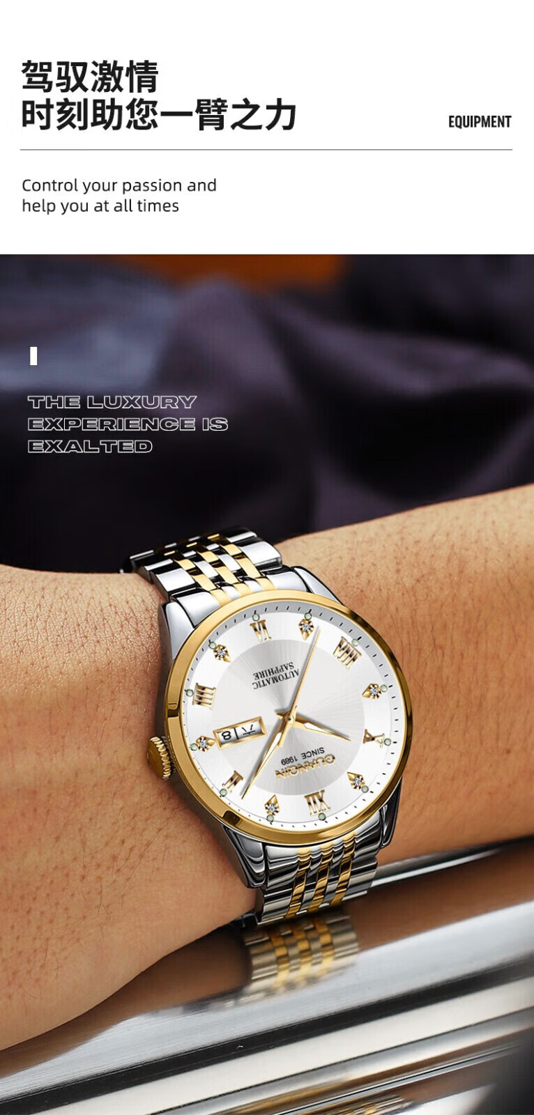 冠琴(GUANQIN)手表男士全自动机械表瑞士名表十大品牌进口机芯夜光防水高端男表 【典藏版】高贵间金【升级进口机芯】