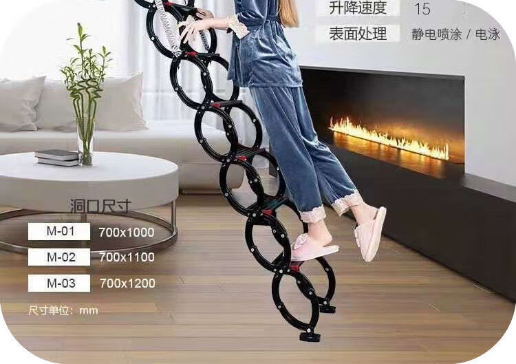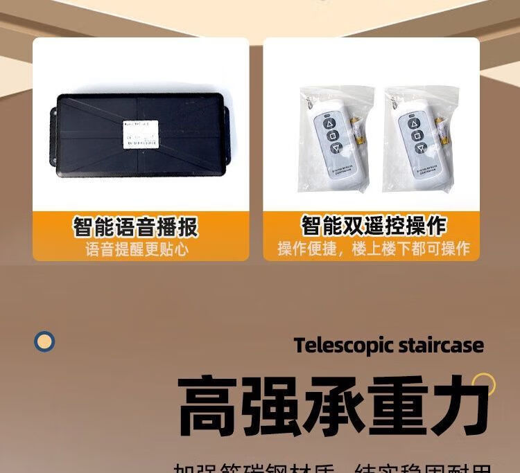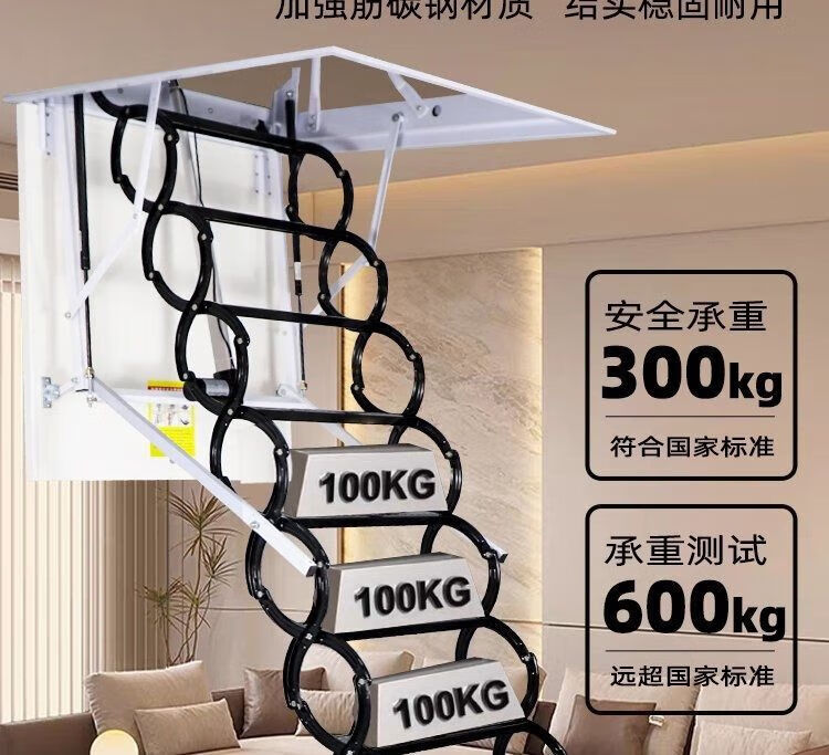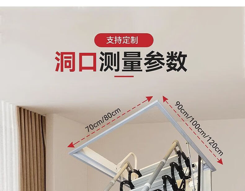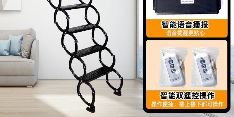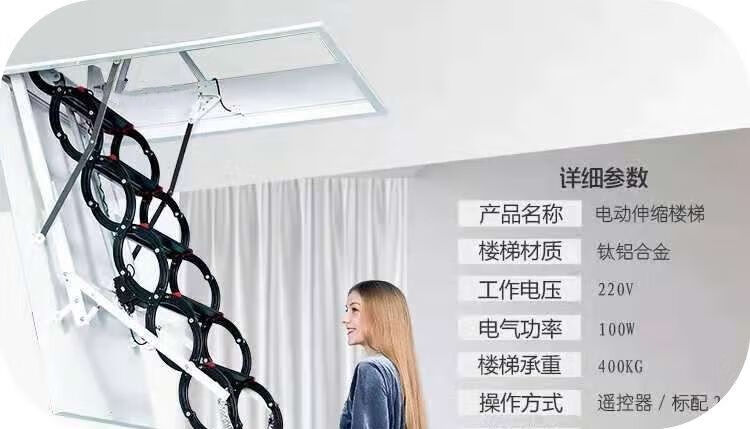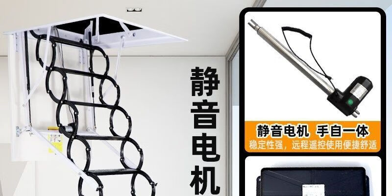 语森忆阁楼电动楼梯全自动加厚伸缩梯升降折叠隐藏室内复式家用别墅 定制70*90 70*100 70*120 金属猛钢电动遥控款