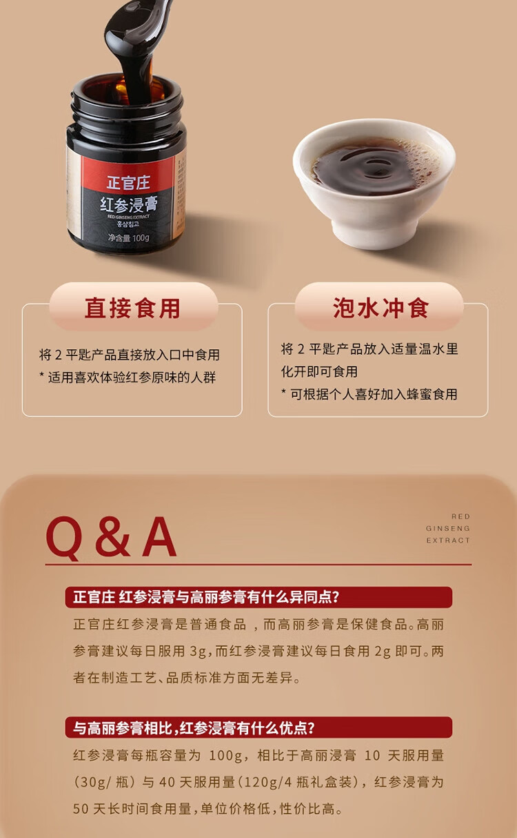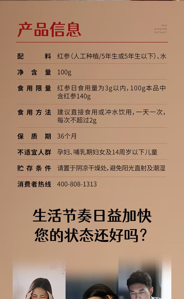 正官庄人参红参浸膏100g 高浓缩 皂苷丰富 100g