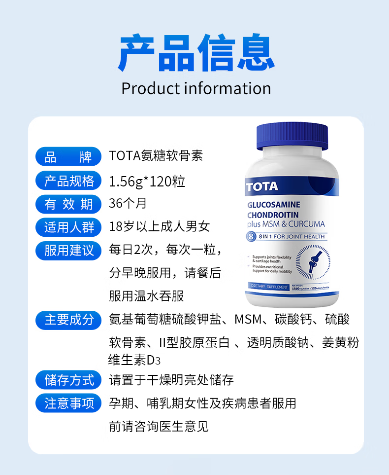 TOTA【粉丝专享】氨糖软骨素钙片保健品营养品中年老人适用一瓶试用装 【关节宝氨糖软骨1瓶装】