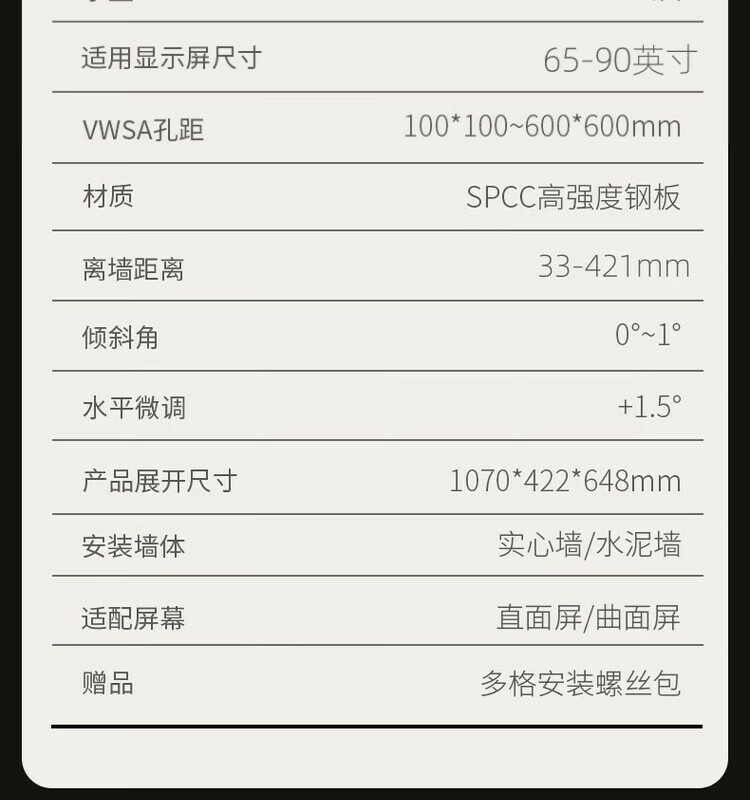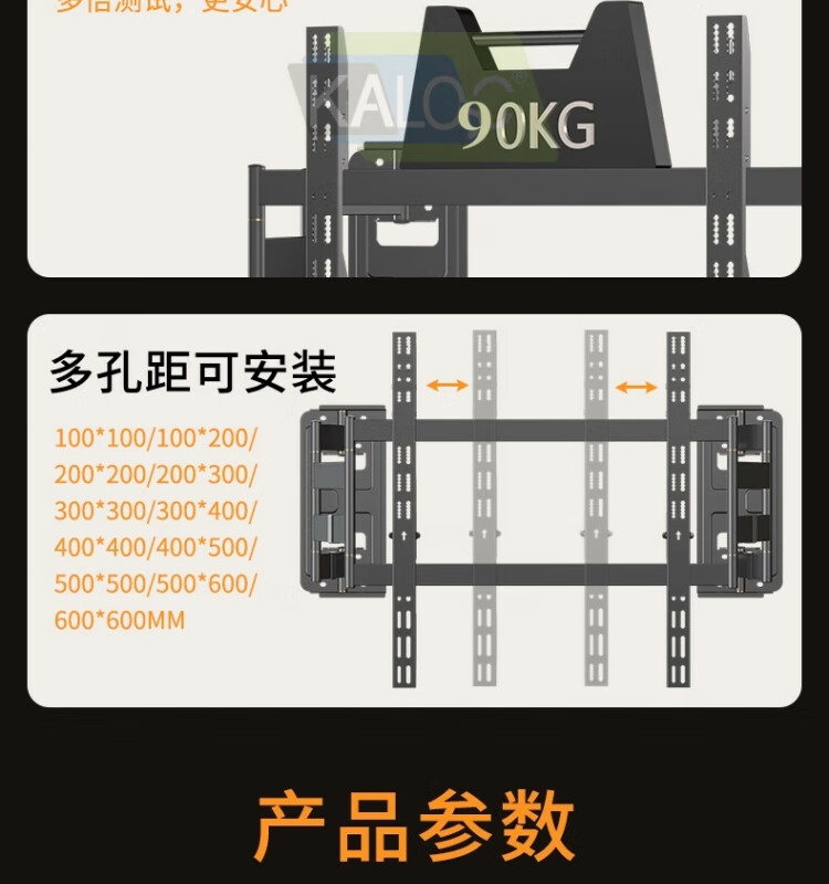 KALOC电视挂架TS90伸缩电视架通用海信创维TCL小米65-90英寸电视活动架万能TS100max内嵌壁挂支架 TS80孔距600*500支持65-80英寸电