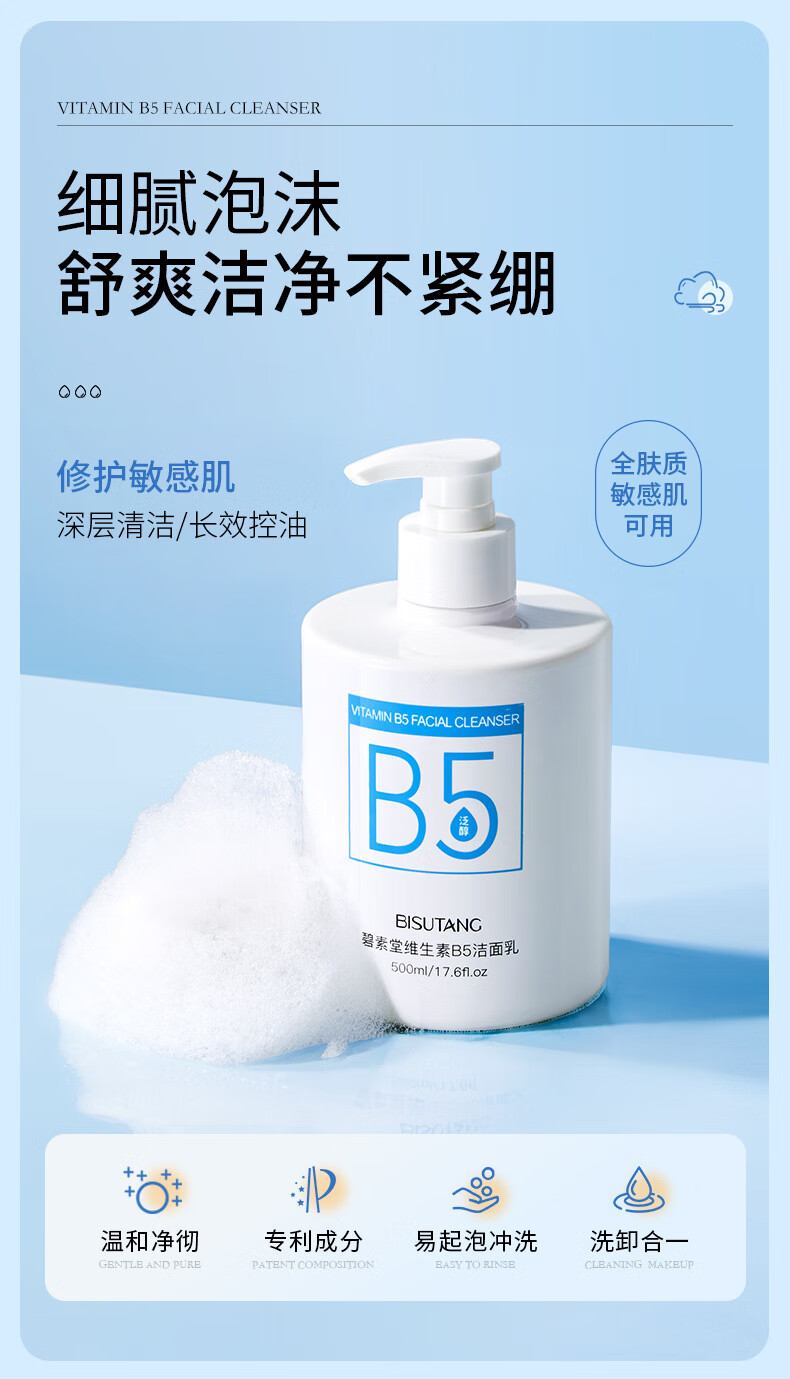 碧素堂维生素B5洁面乳500ml清理毛孔肌肤洗面奶 洗面奶 500ml