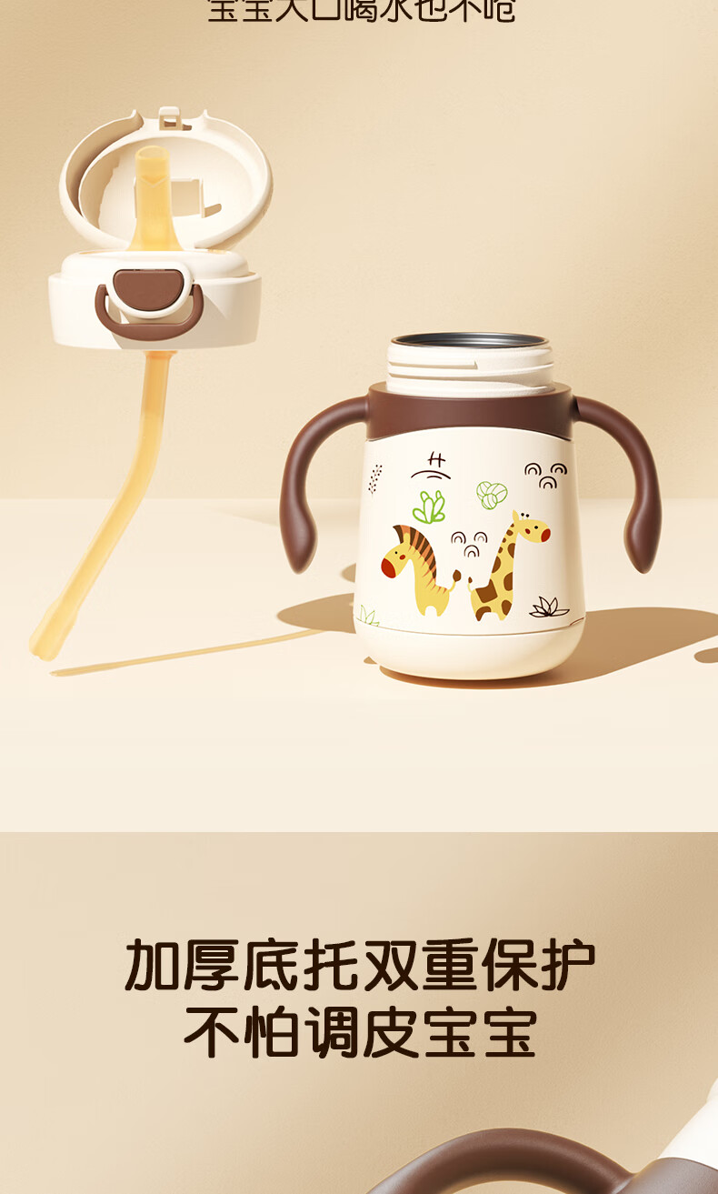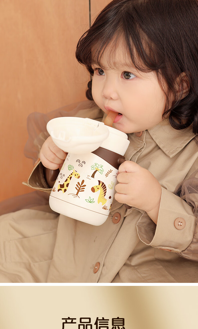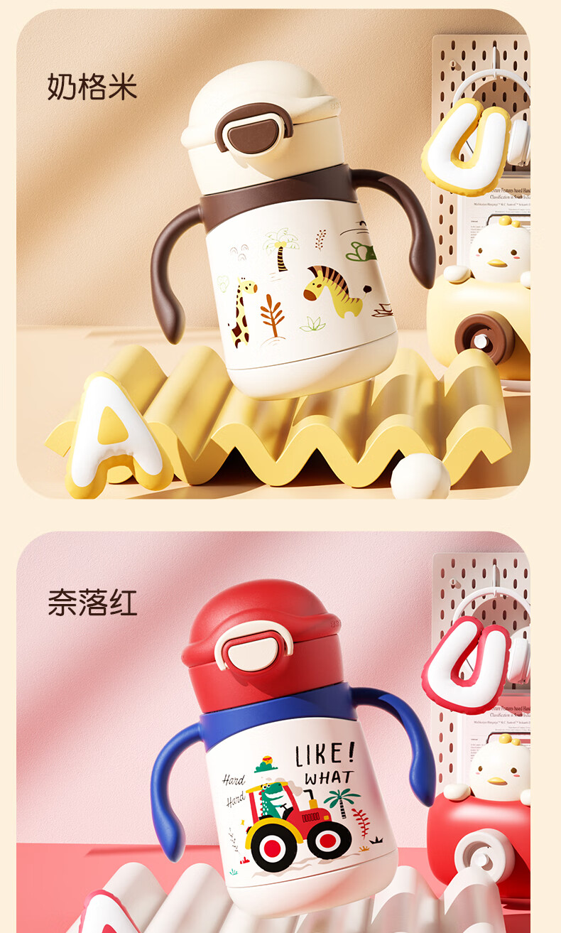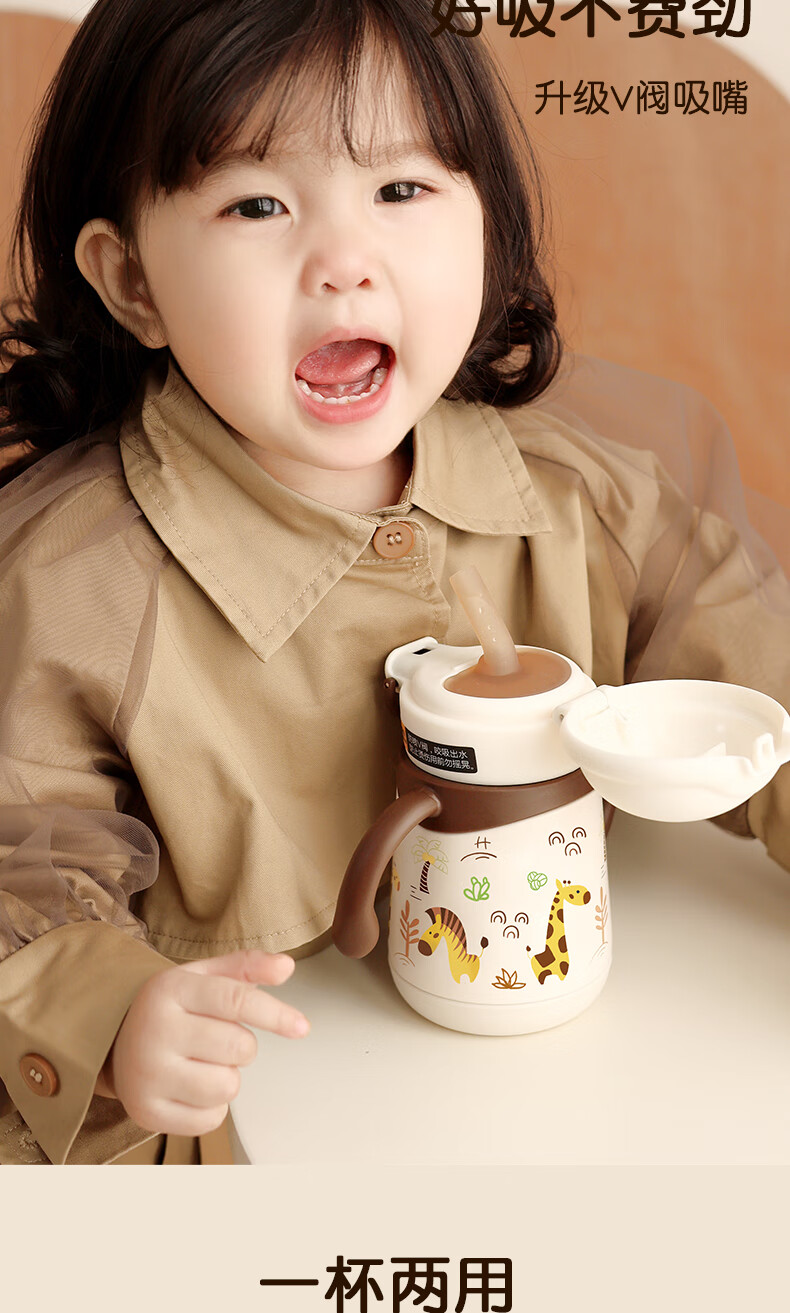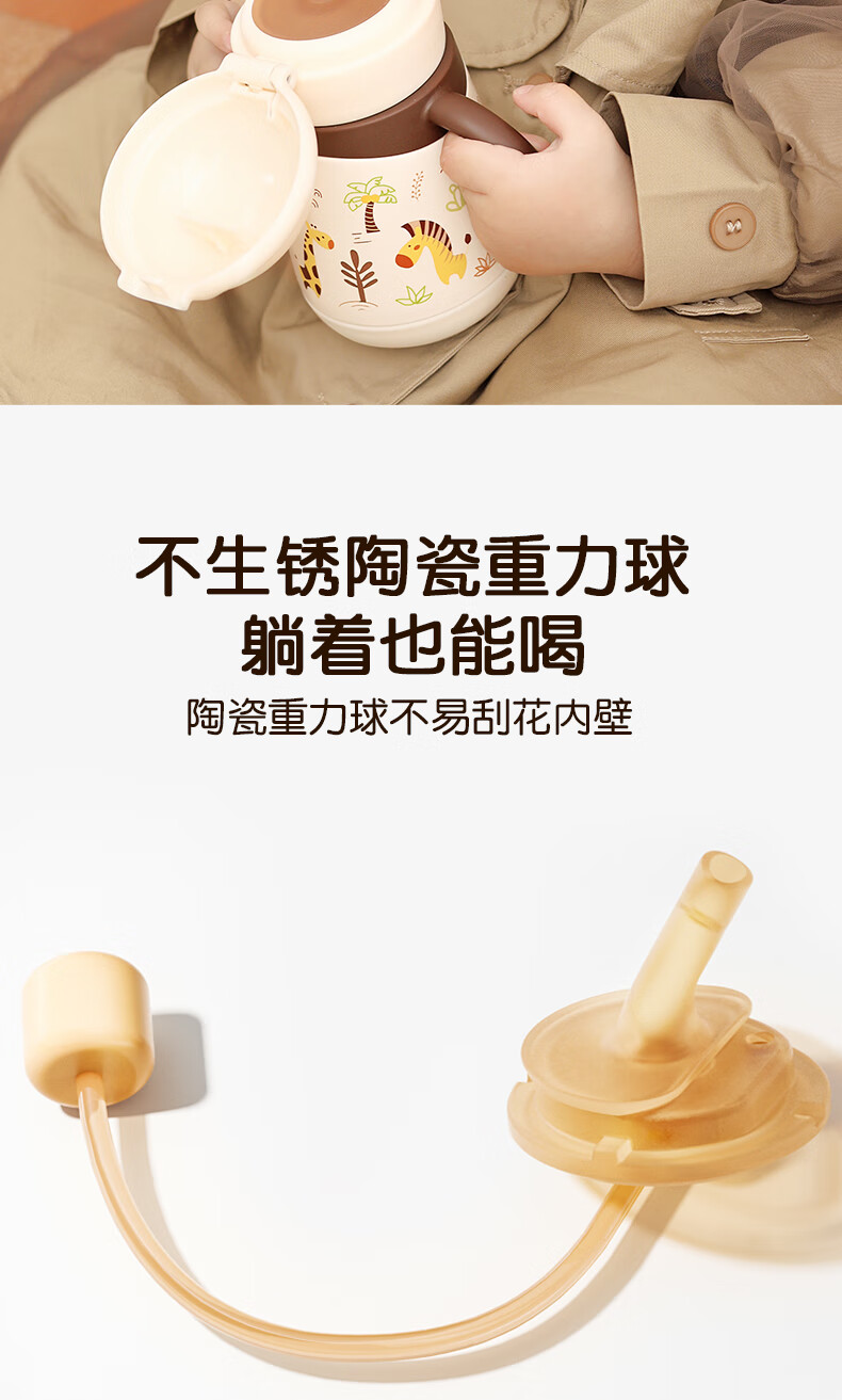 NEVS宝宝316不锈钢吸管婴幼儿童保温水杯壶学饮儿童外出家用 奶格米 280ml (重力球款)
