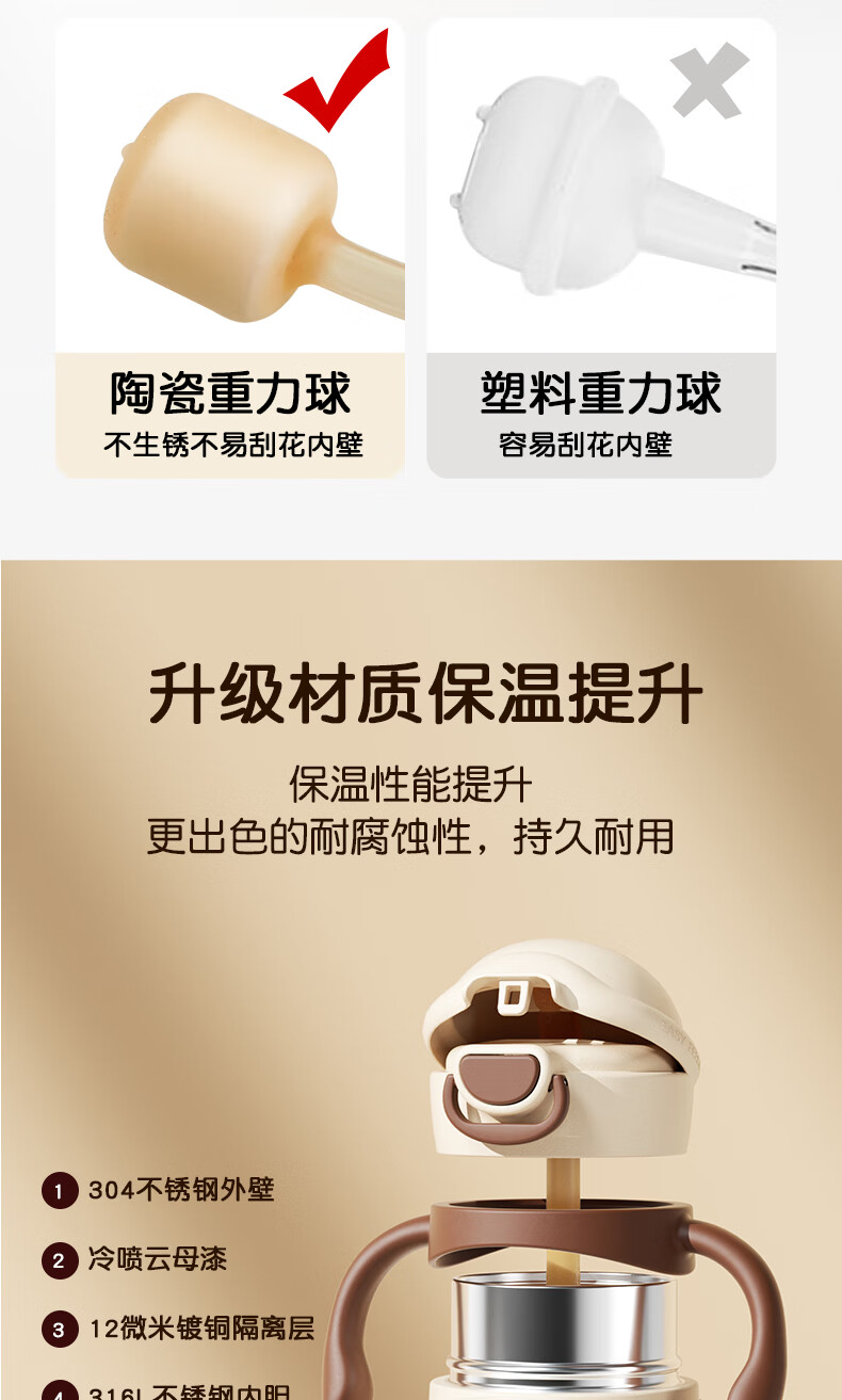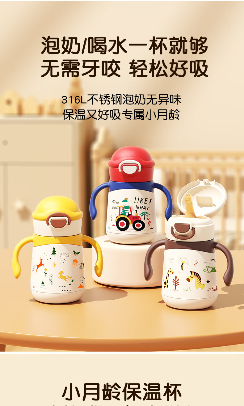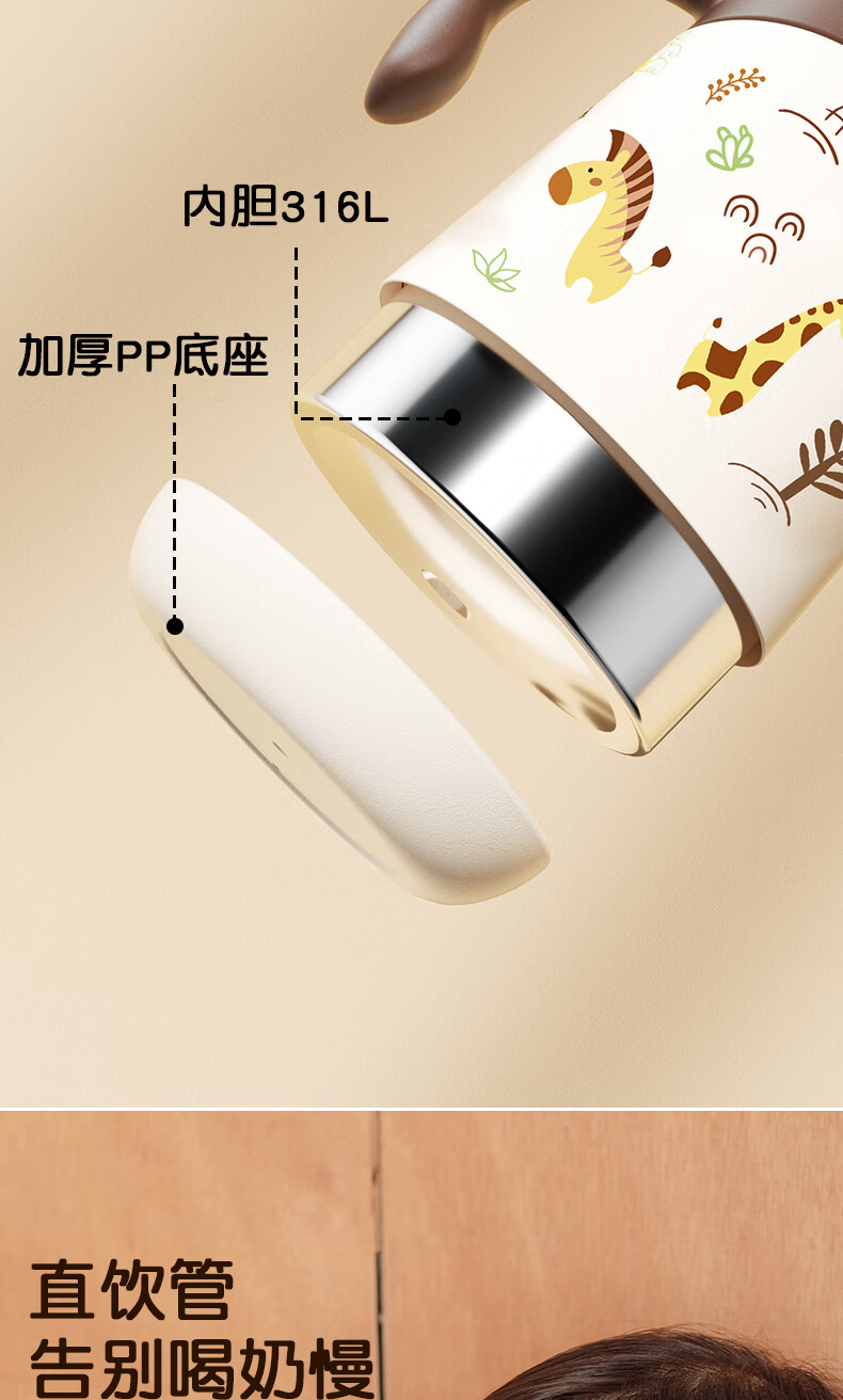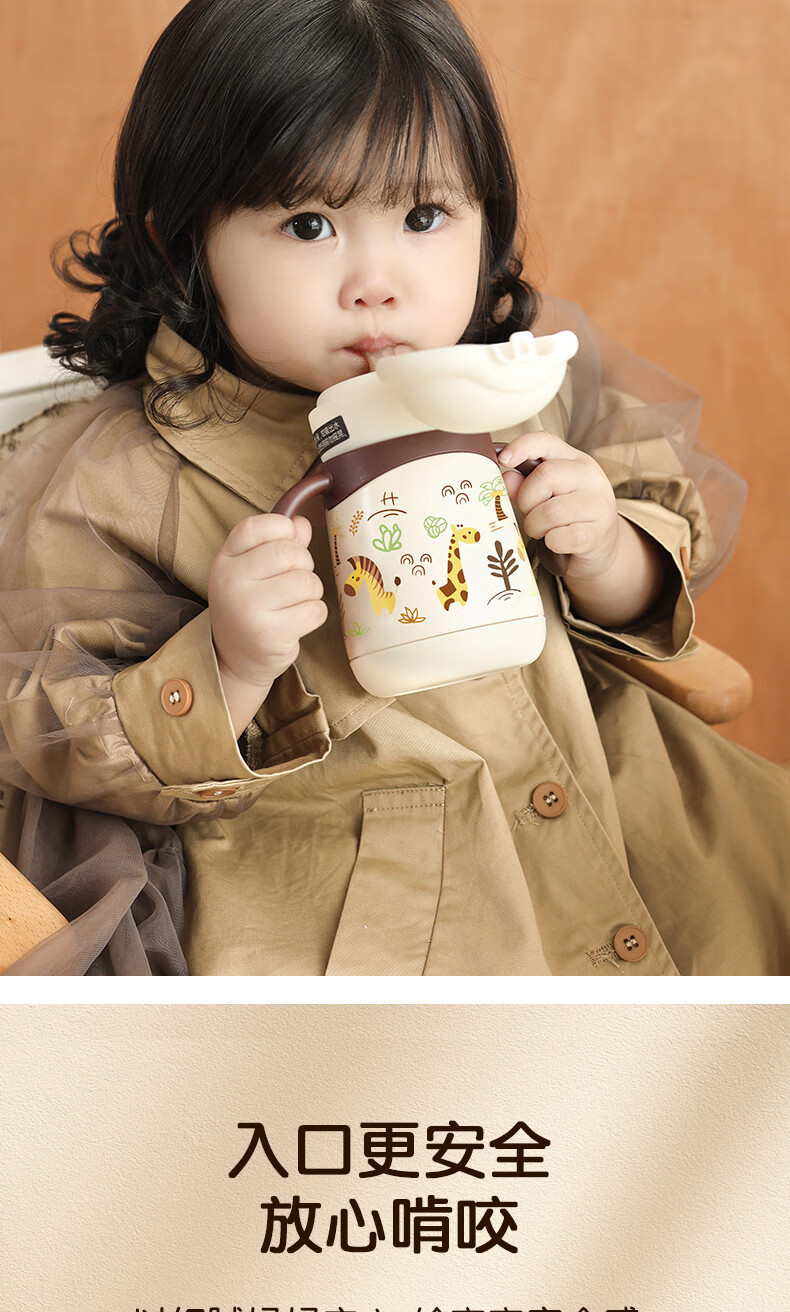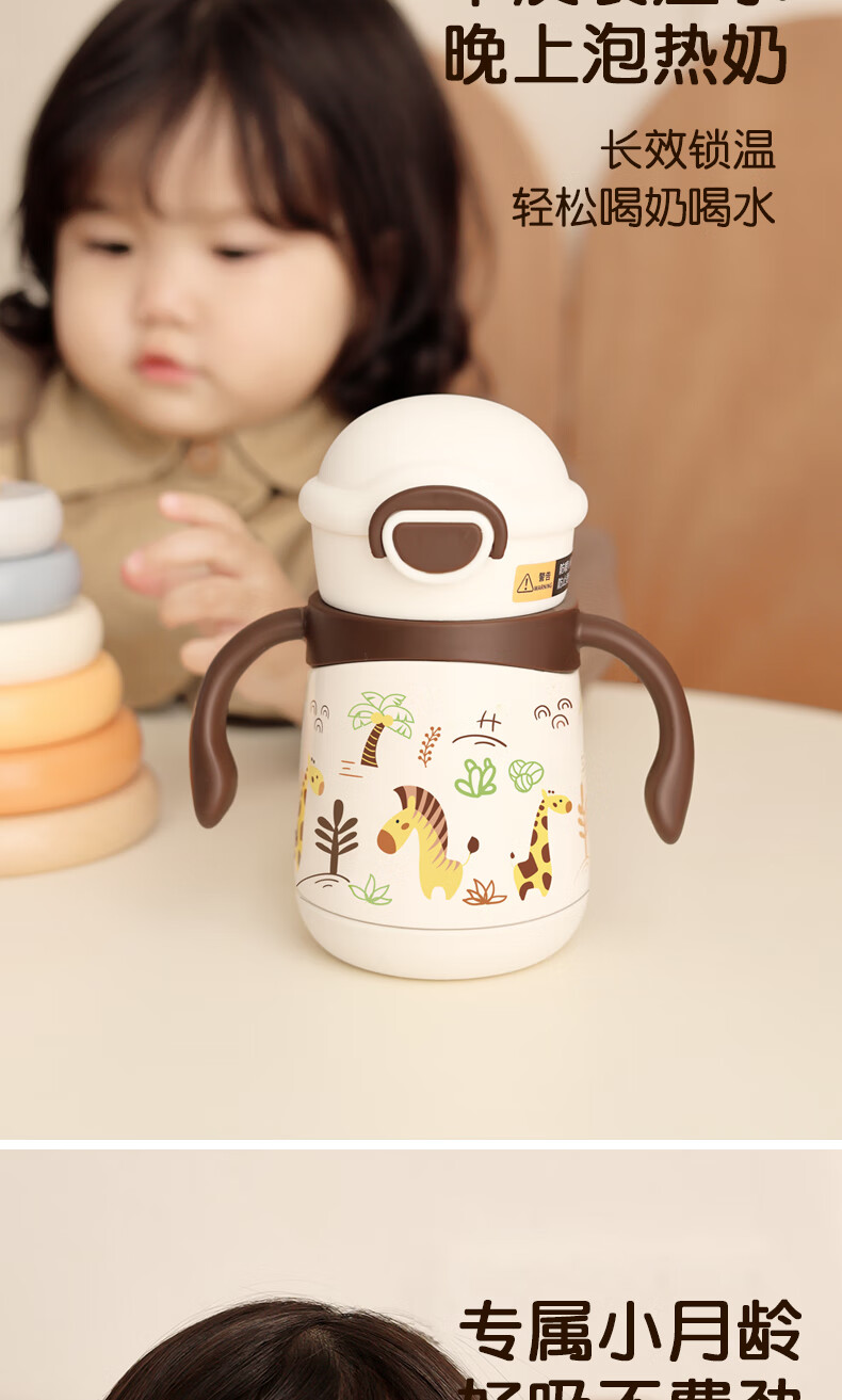 NEVS宝宝316不锈钢吸管婴幼儿童保温水杯壶学饮儿童外出家用 奶格米 280ml (重力球款)