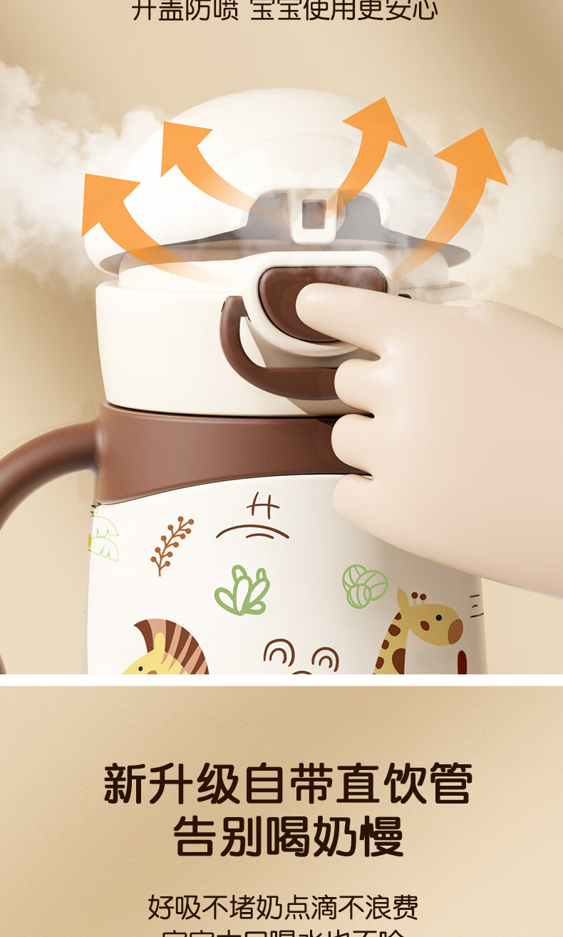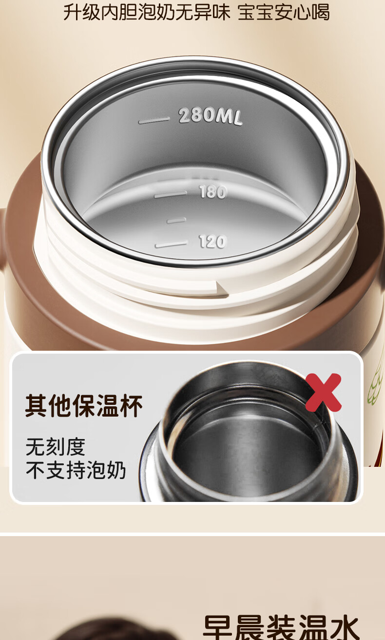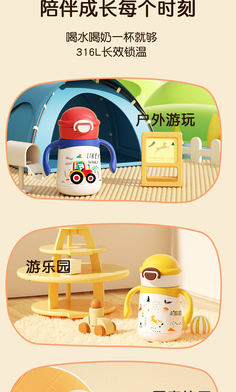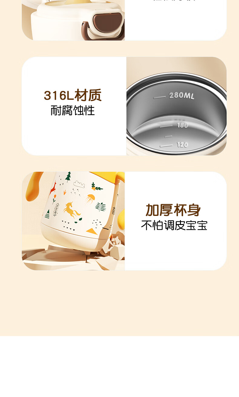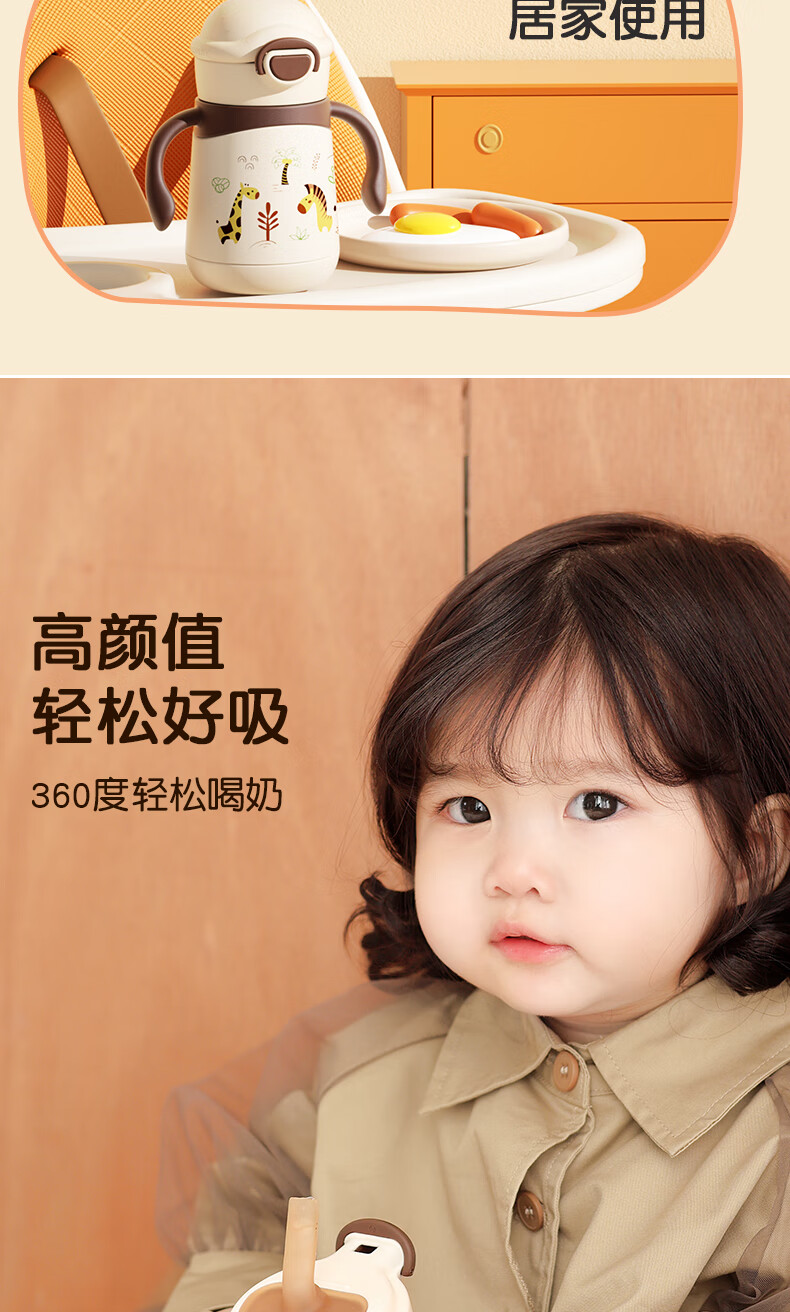 NEVS宝宝316不锈钢吸管婴幼儿童保温水杯壶学饮儿童外出家用 奶格米 280ml (重力球款)