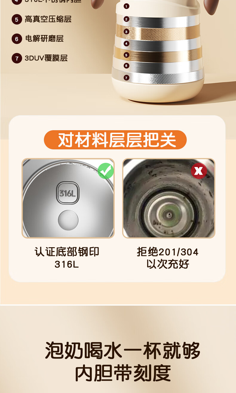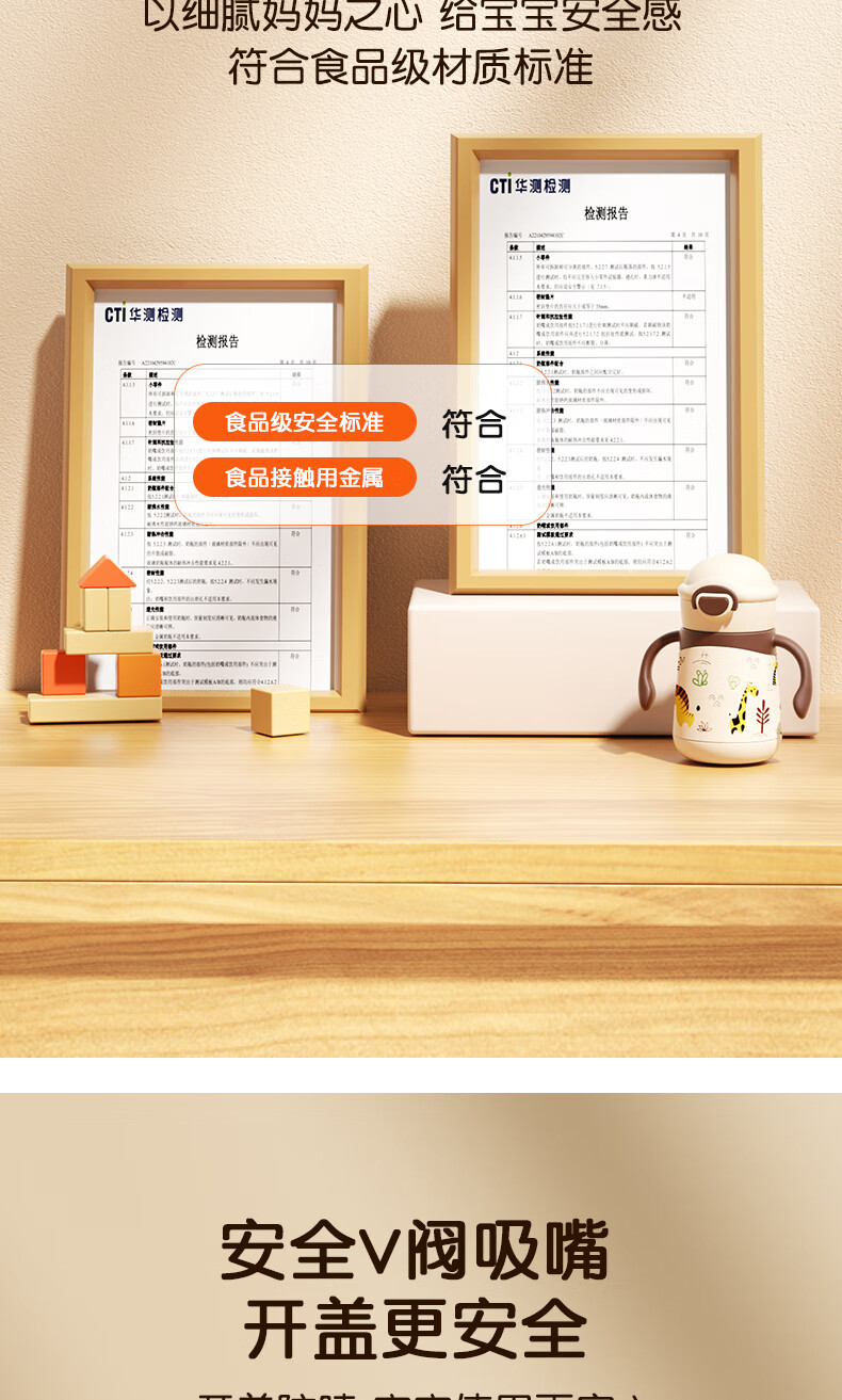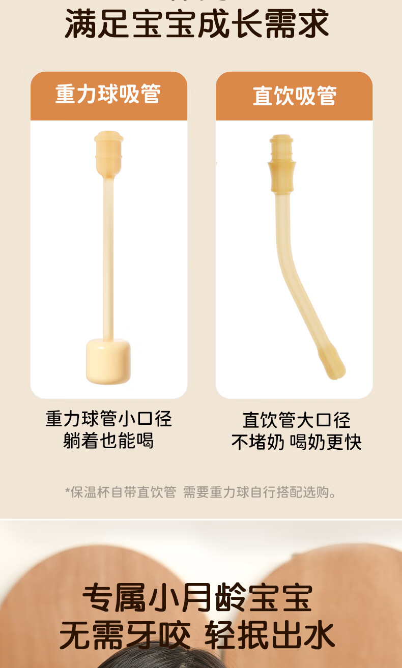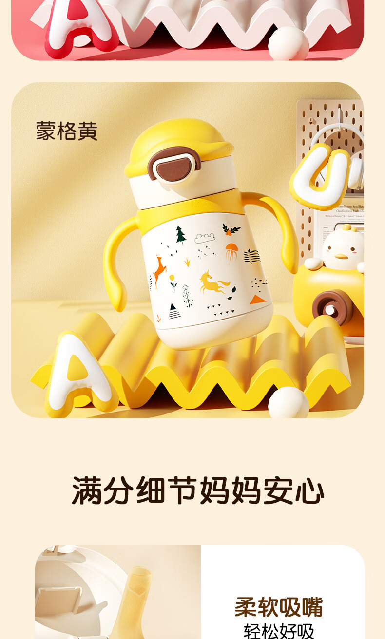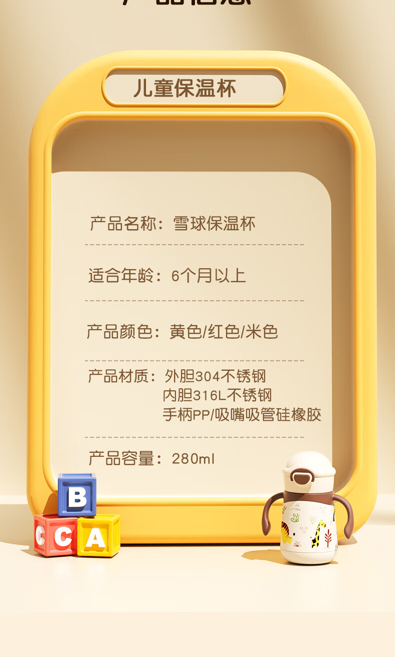 NEVS宝宝316不锈钢吸管婴幼儿童保温水杯壶学饮儿童外出家用 奶格米 280ml (重力球款)