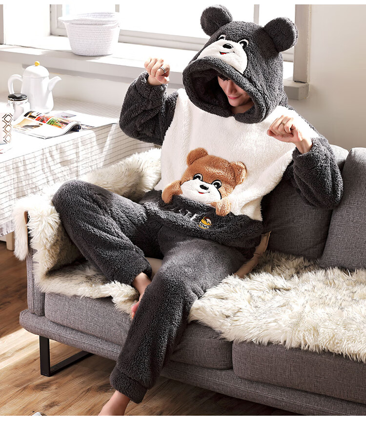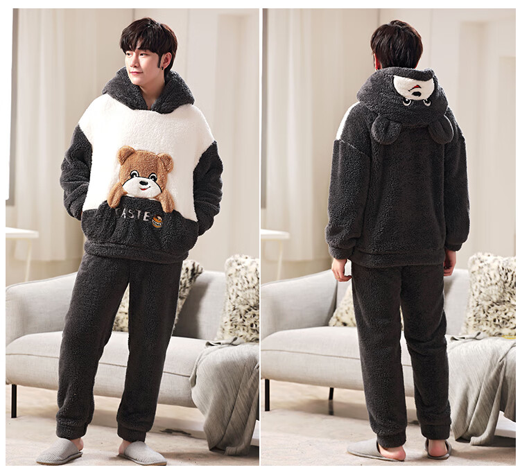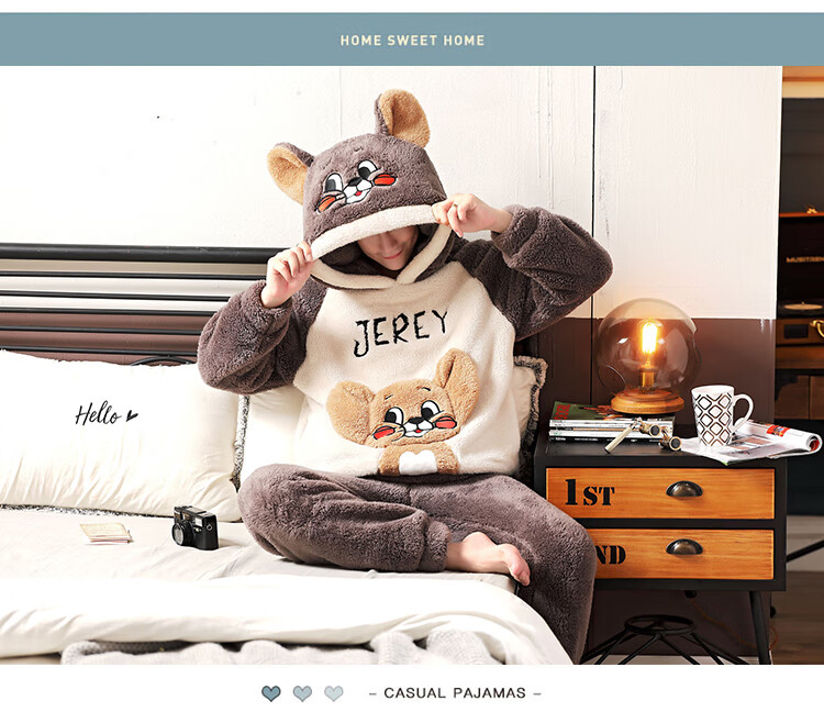 萧淑妃 冬季加厚保暖连帽法兰绒男士睡衣可爱卡通青少年学生加大码珊瑚绒家居服套装 杰瑞鼠 XXXL
