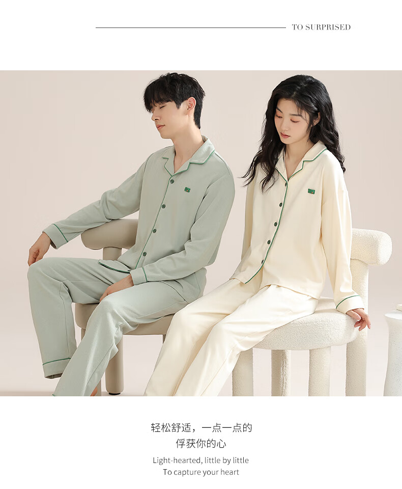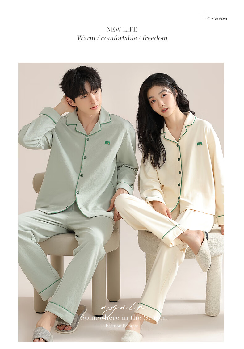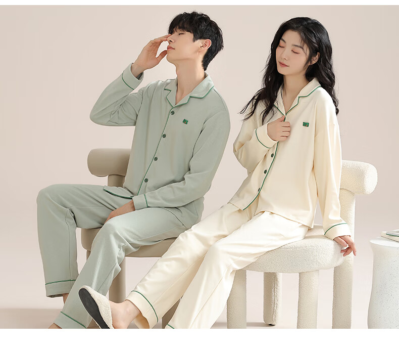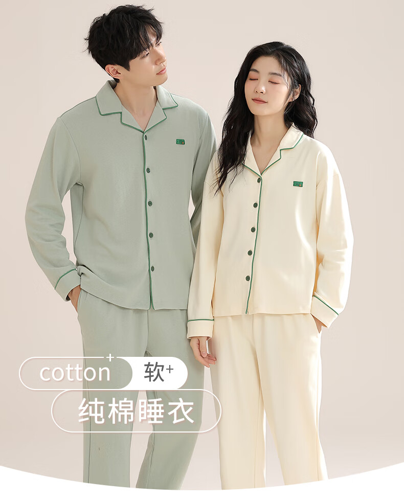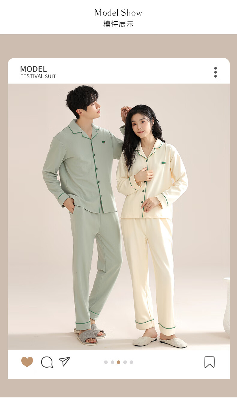 猫人情侣睡衣秋冬季2025新款100%棉男女士长袖简约高级轻奢家居服套装 1号女士家居服套装 100%纯棉 M 【适合80-100斤】