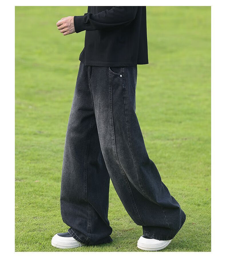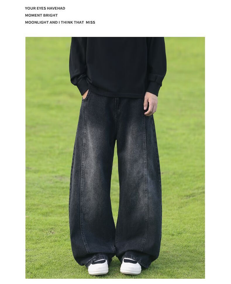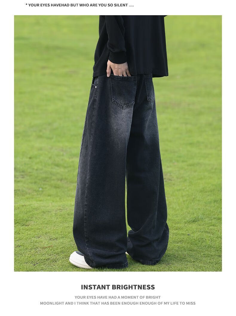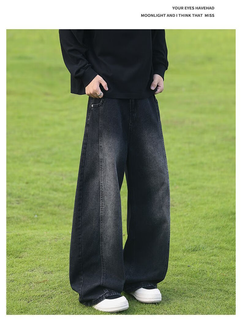BAA AND BAA垂感裤子男春夏季潮牌宽松直筒阔腿裤2025新款男士休闲百搭长裤 黑色春秋款 C138-OPX M 【建议80-105斤】