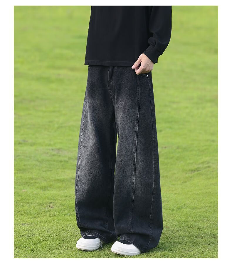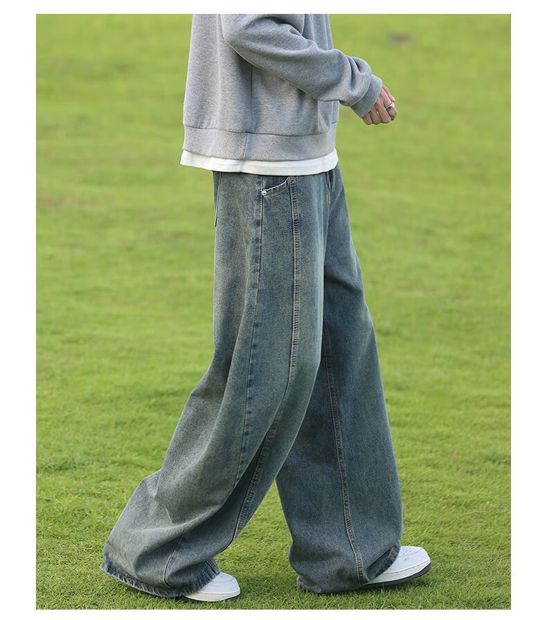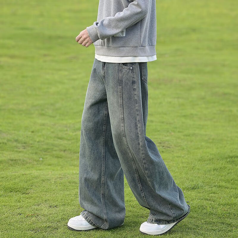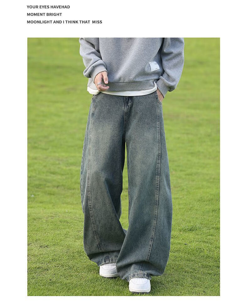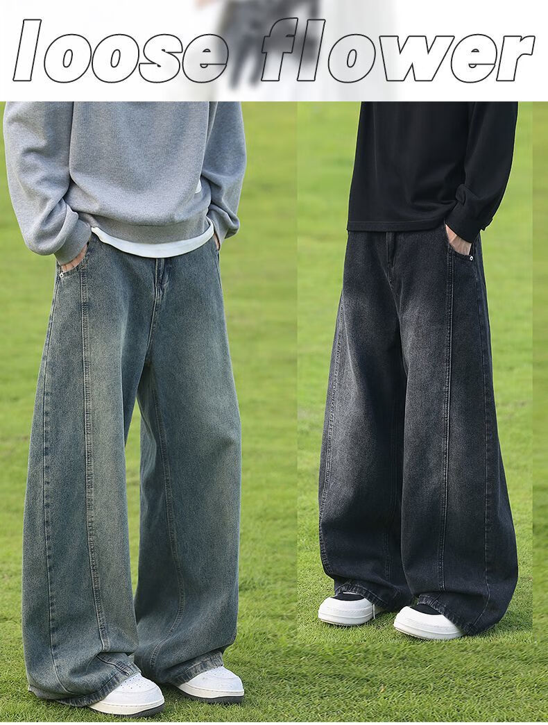 东馨鸟牛仔裤新款美式弯刀复古高街显瘦宽松休闲水洗阔腿直筒坠感长裤子 浅蓝色-弯刀/显瘦[品质甄选] 3XL160-175斤-详细问客服 均码