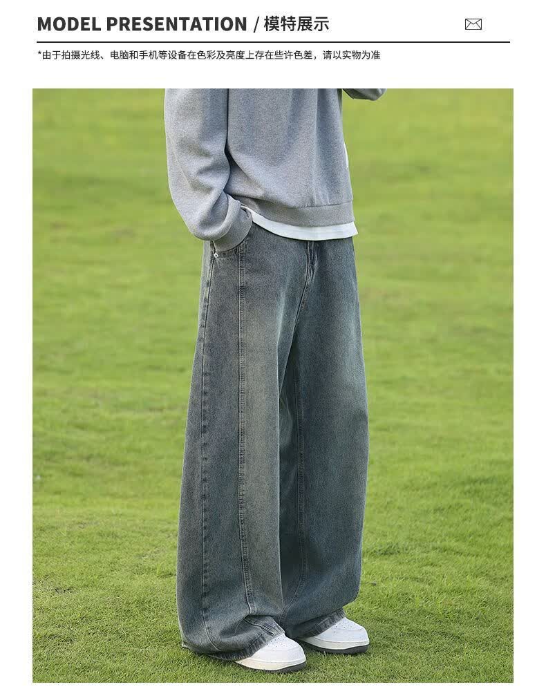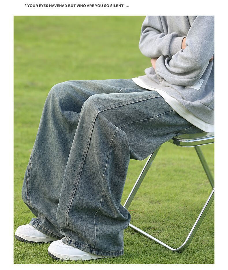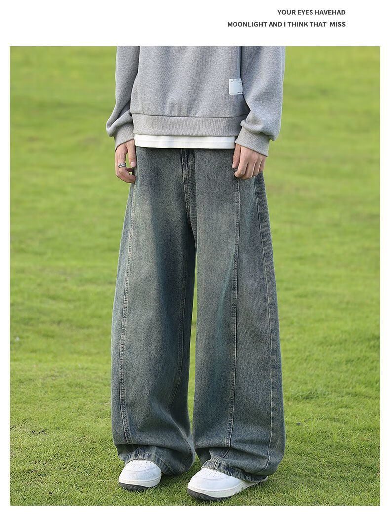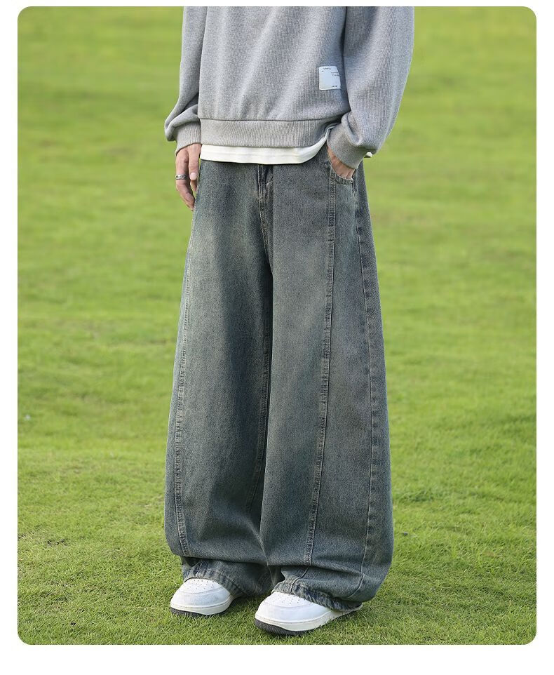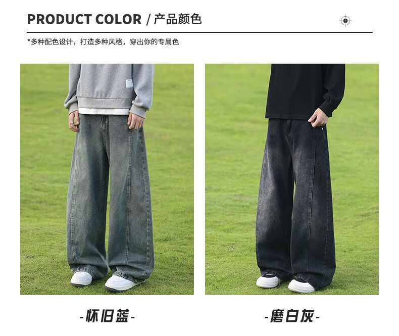 东馨鸟牛仔裤新款美式弯刀复古高街显瘦宽松休闲水洗阔腿直筒坠感长裤子 浅蓝色-弯刀/显瘦[品质甄选] 3XL160-175斤-详细问客服 均码