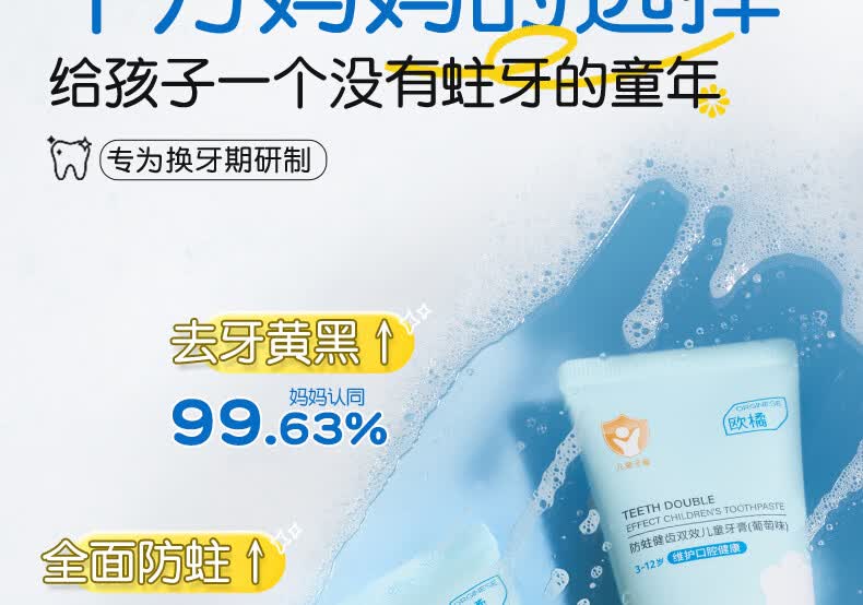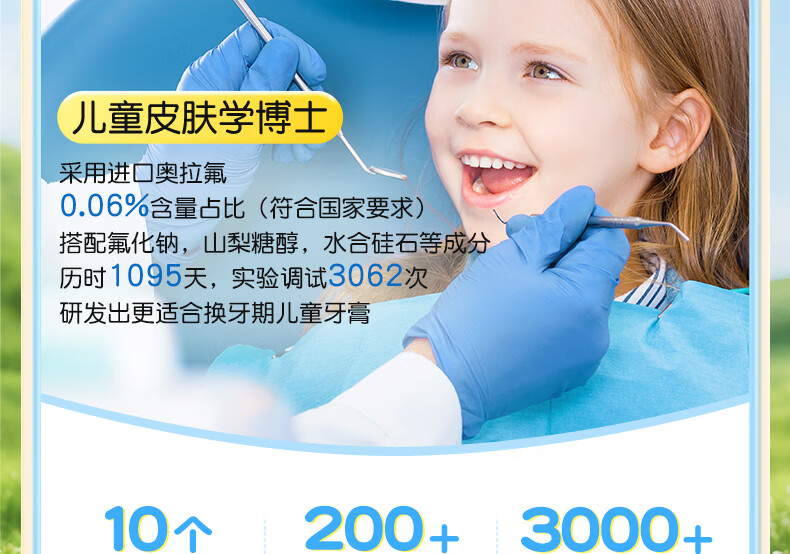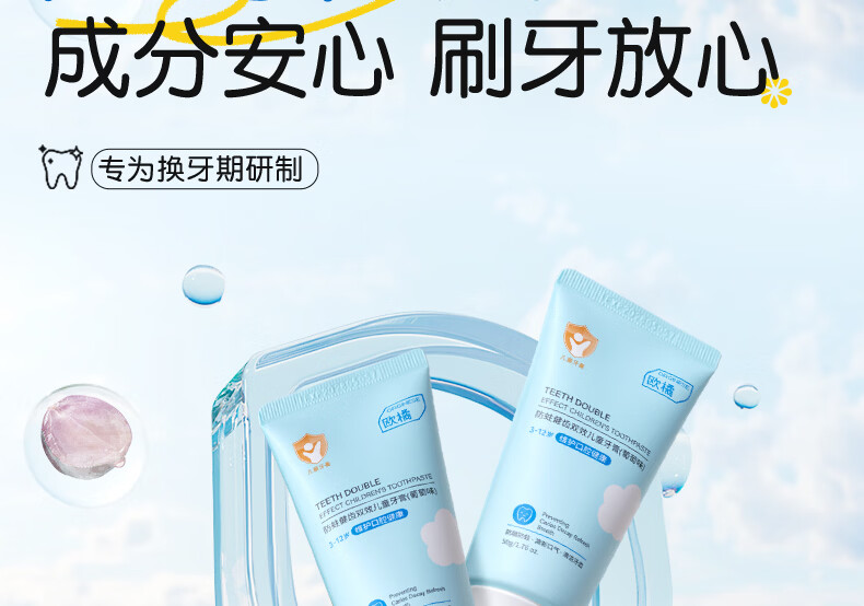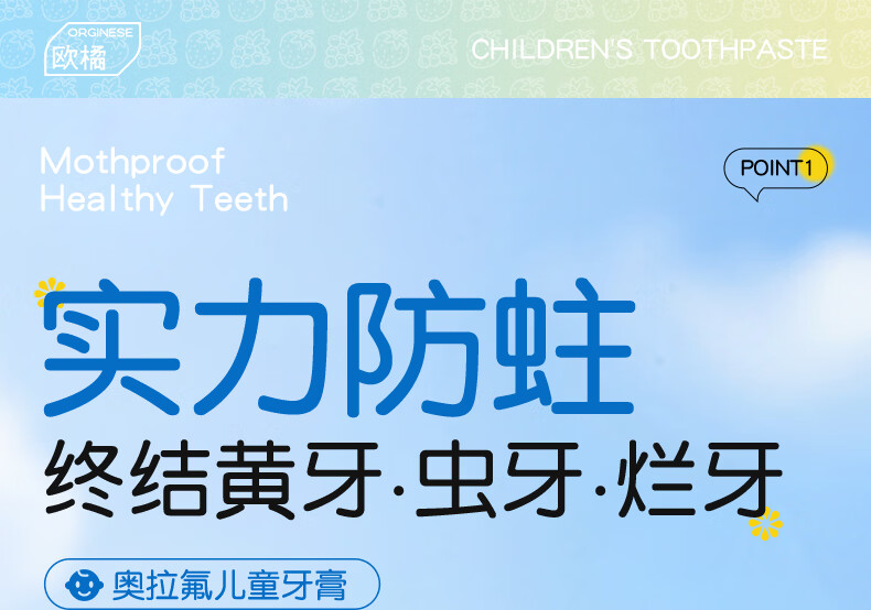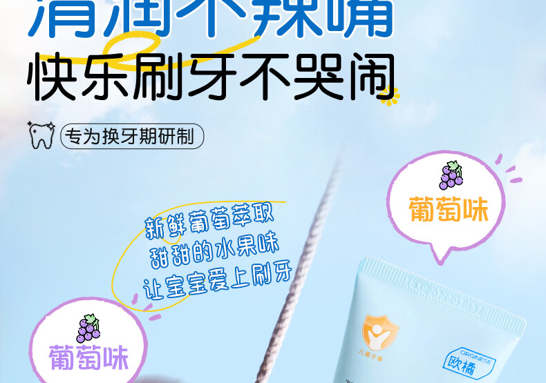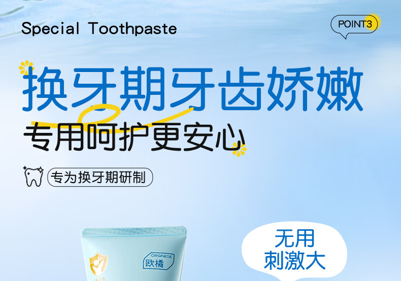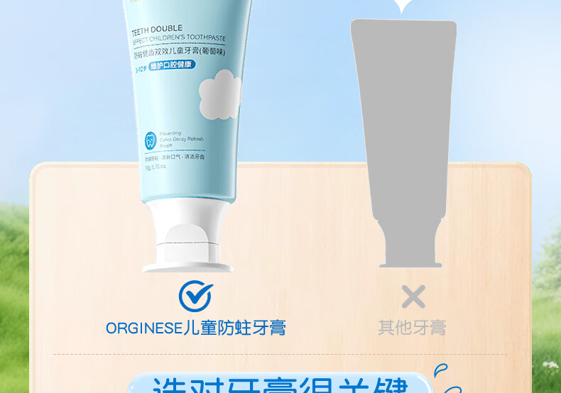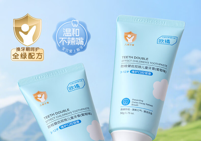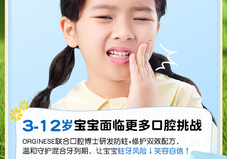 ORGINESE儿童牙膏3-6-12岁含氟防蛀固齿奥拉氟抗糖换牙期护理宝宝口腔专用