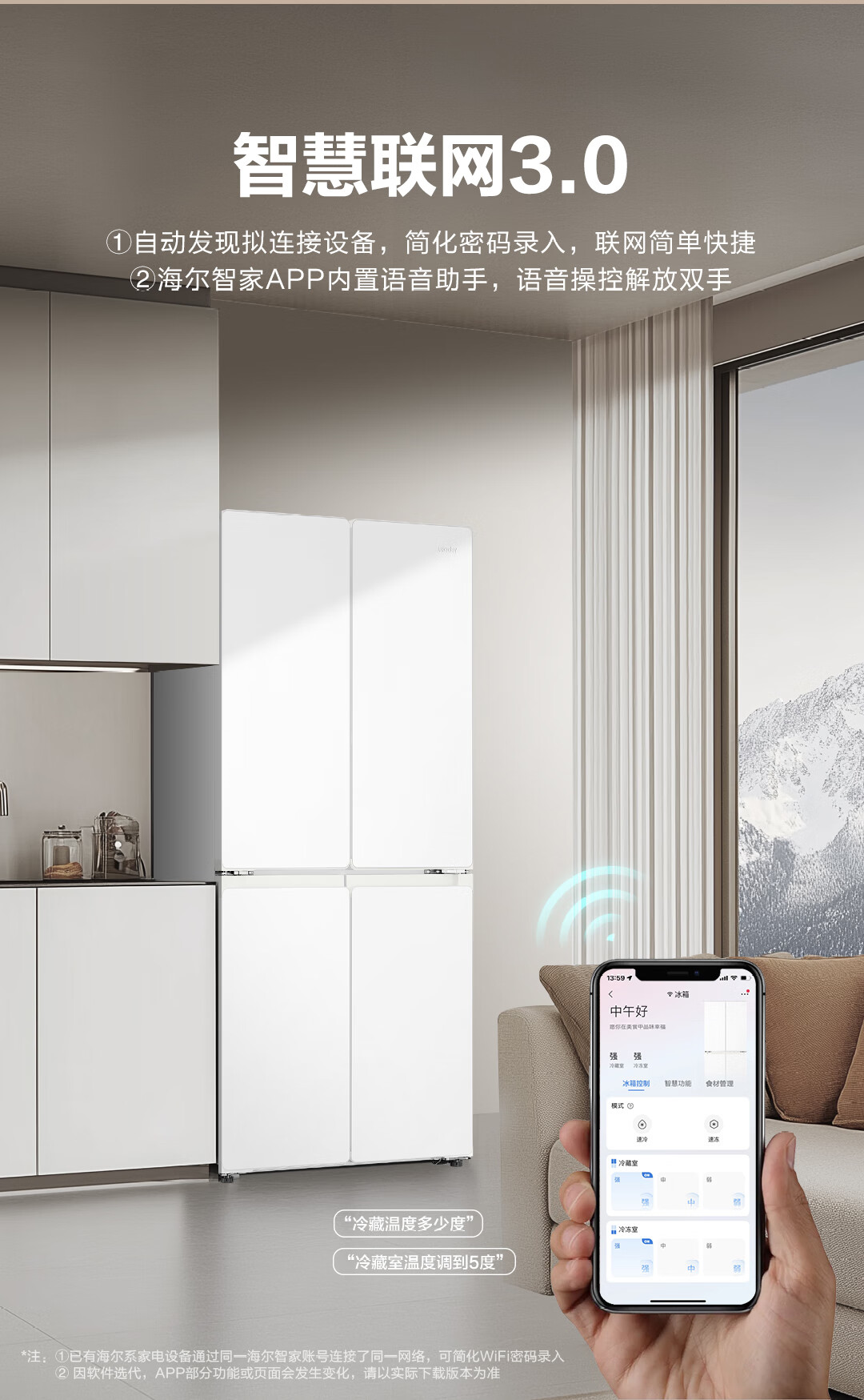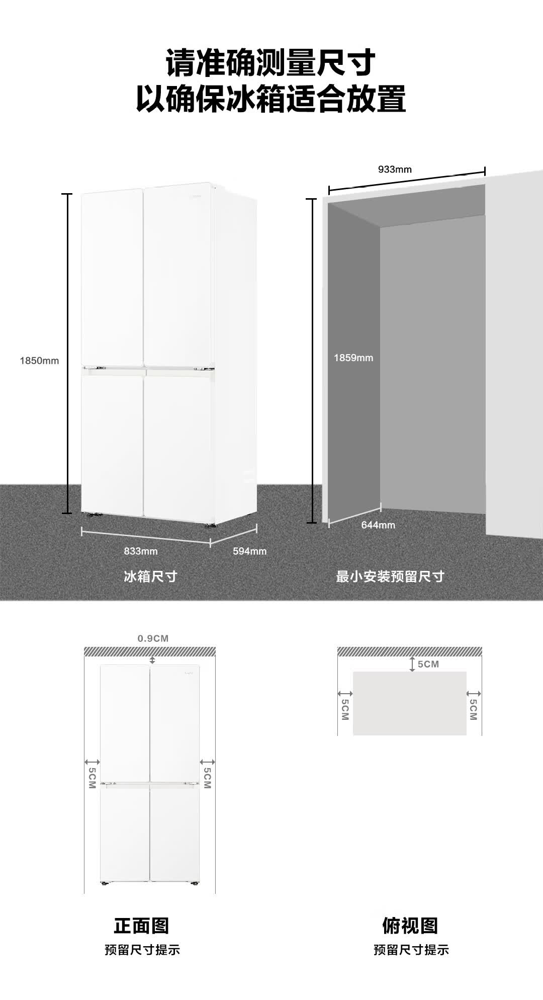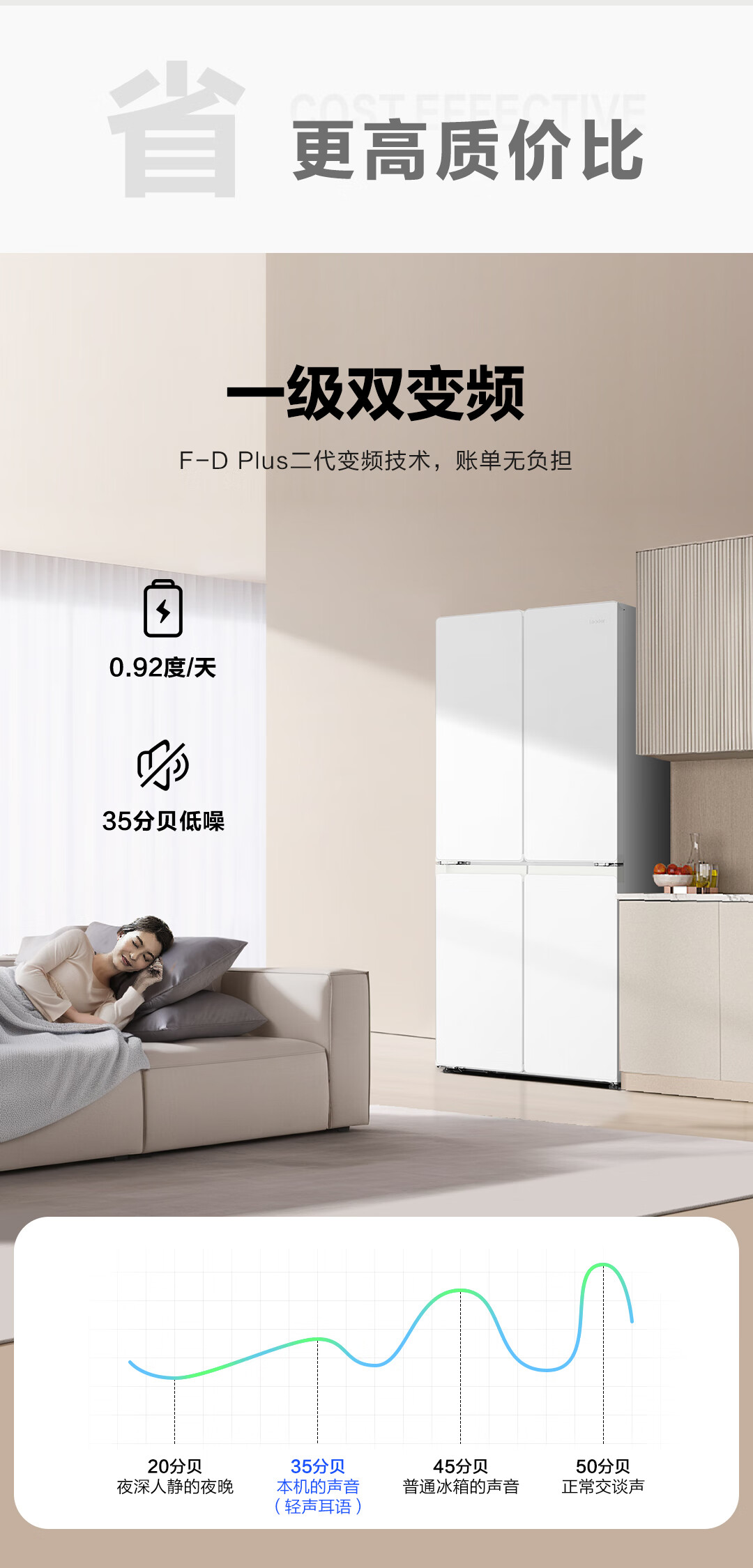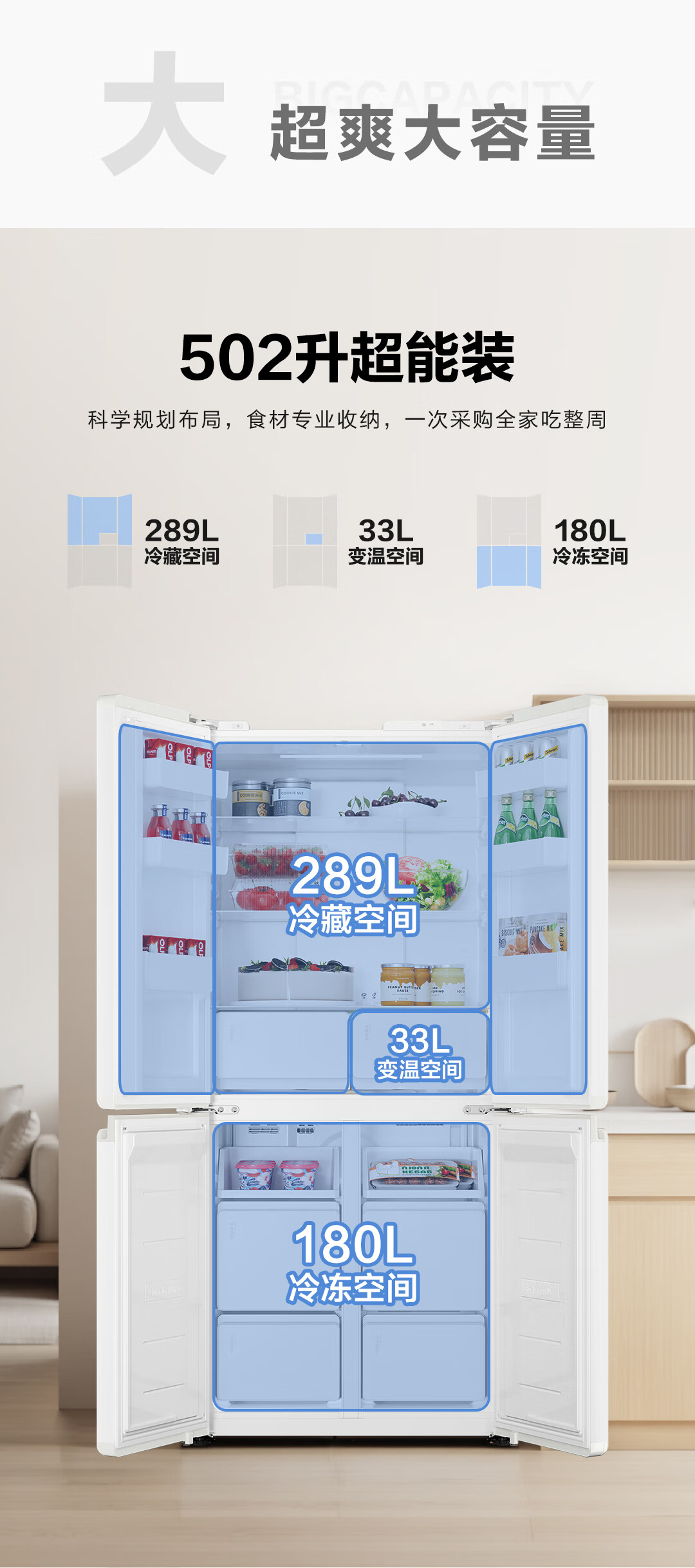 海尔冰箱出品502升四开门Leader十字开门594mm超薄机身526一级能效双变频风冷无霜大容量家用电冰箱 一级双变频 全域双净味+母婴三档变温