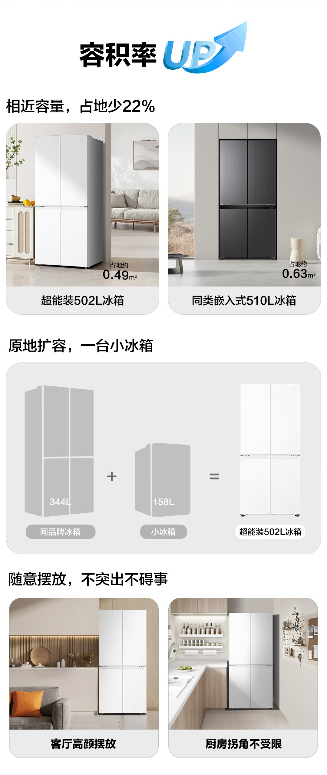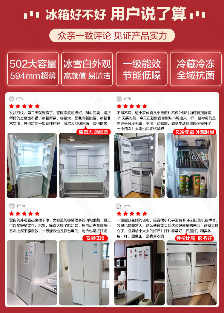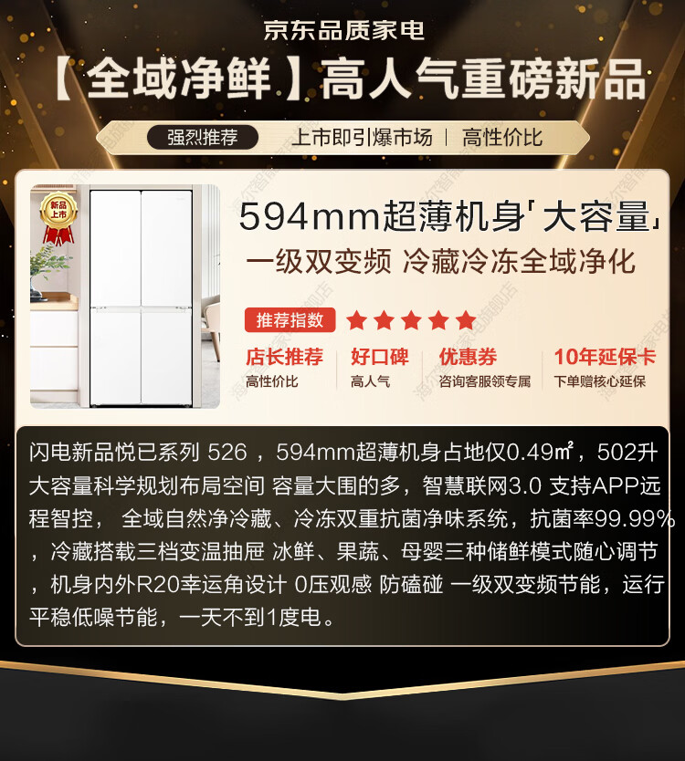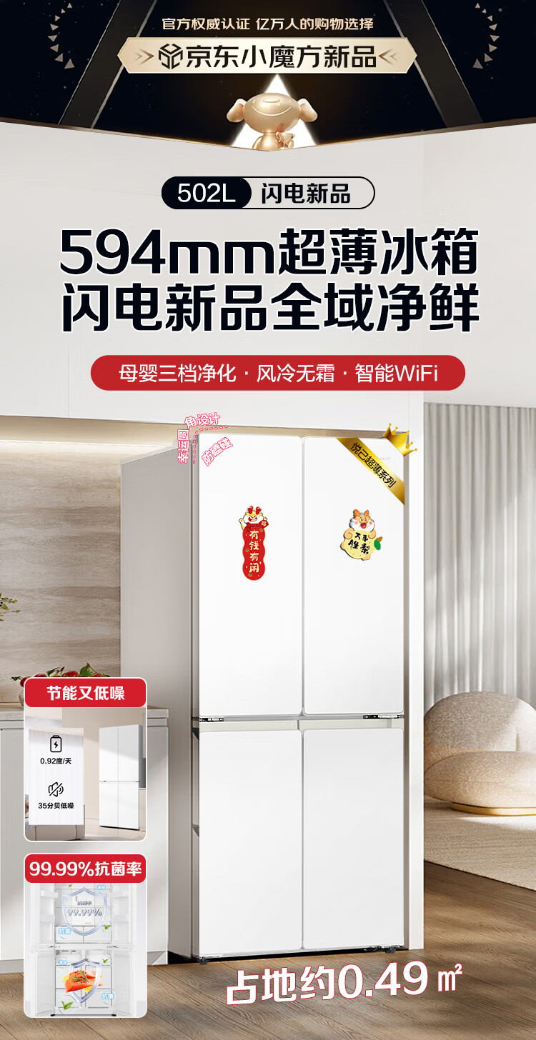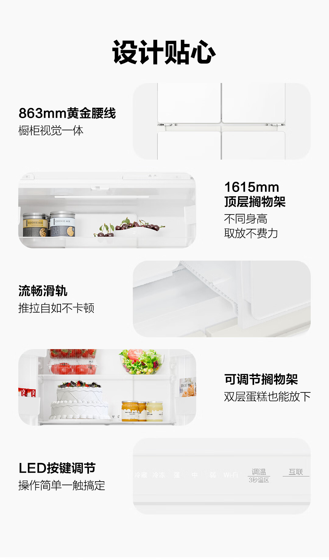 海尔冰箱出品502升四开门Leader十字开门594mm超薄机身526一级能效双变频风冷无霜大容量家用电冰箱 一级双变频 全域双净味+母婴三档变温
