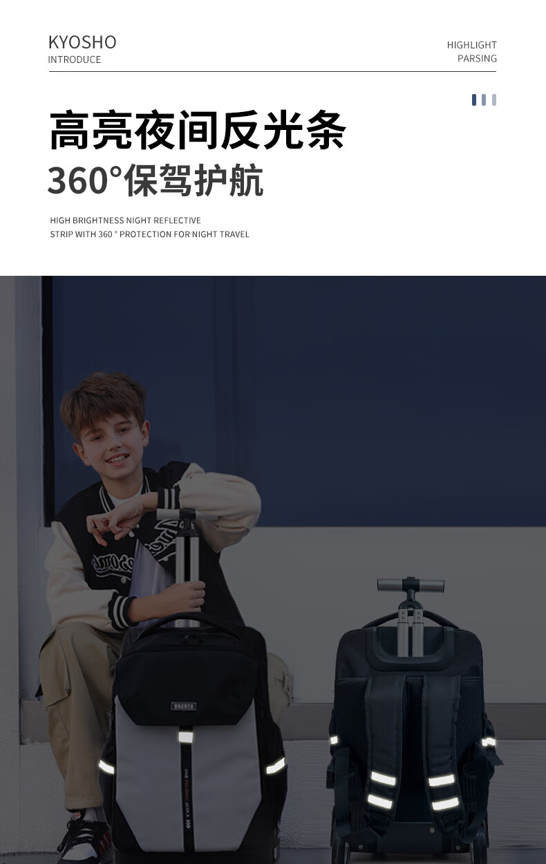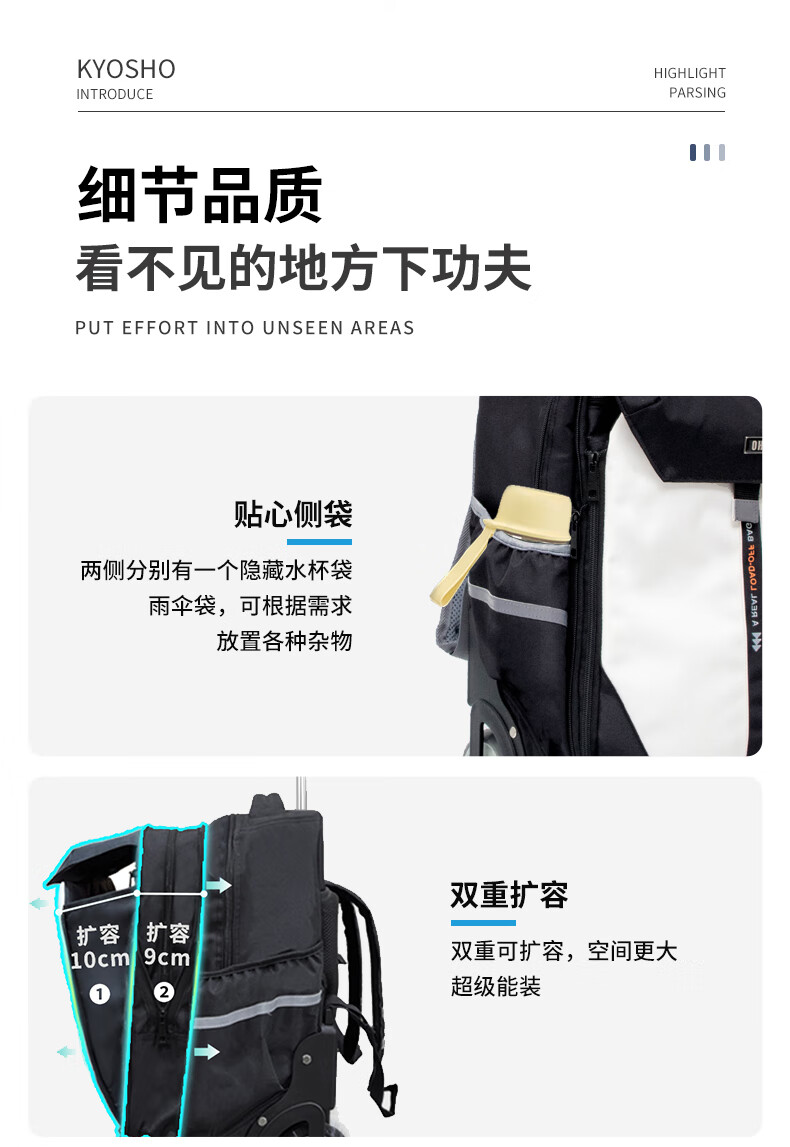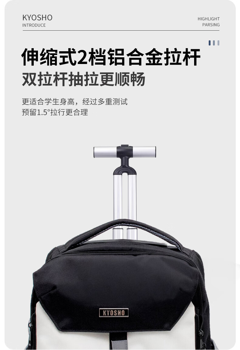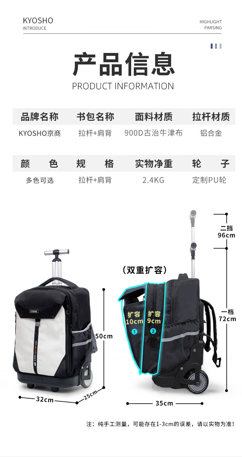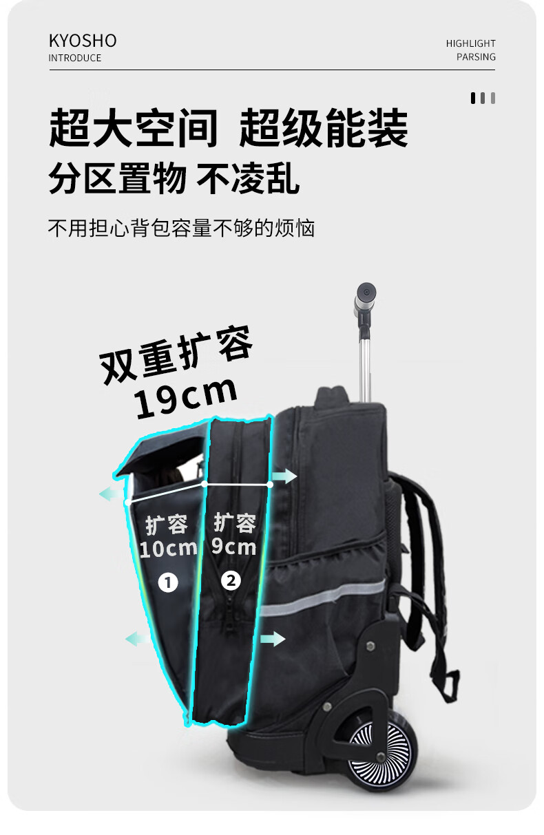 京商新款双扩容拉杆书包初高中大容量轻音拉杆旅行箱小学生书包 黑色
