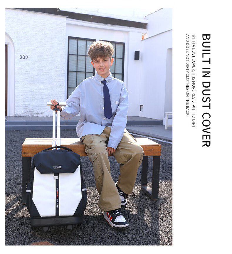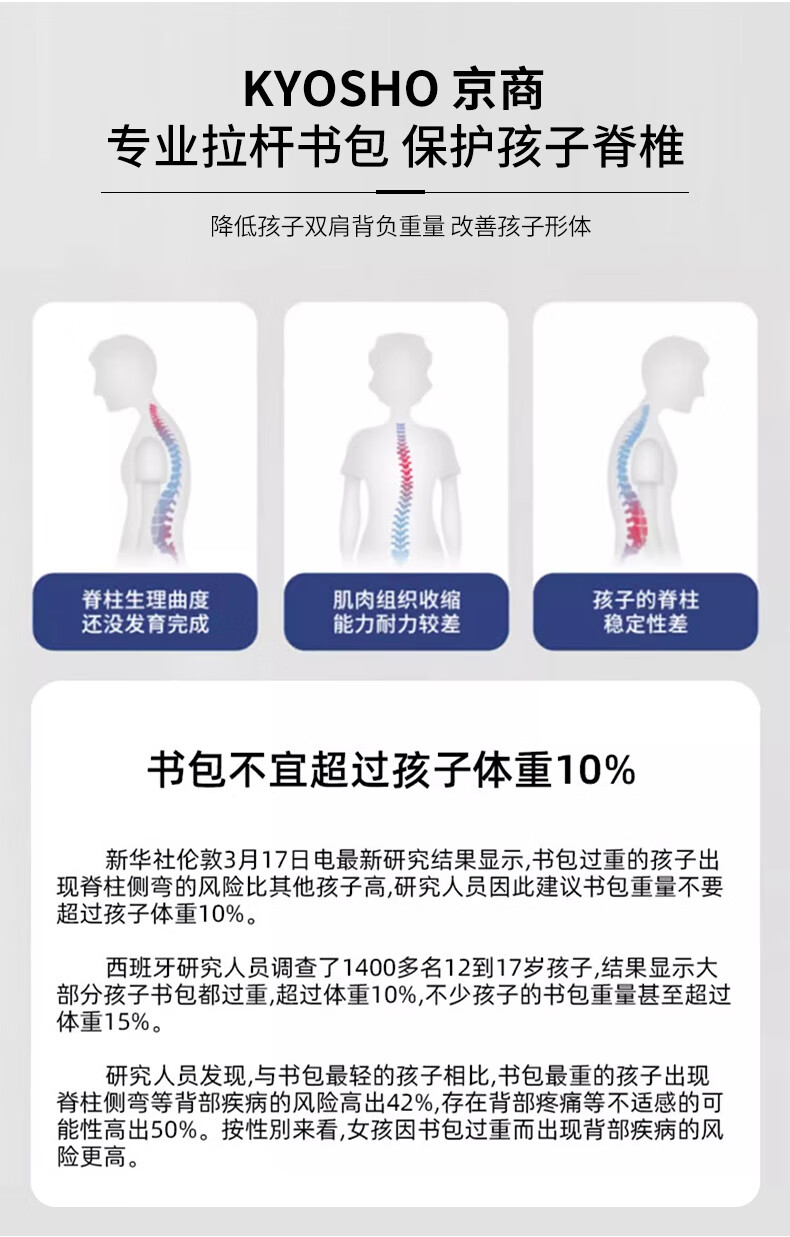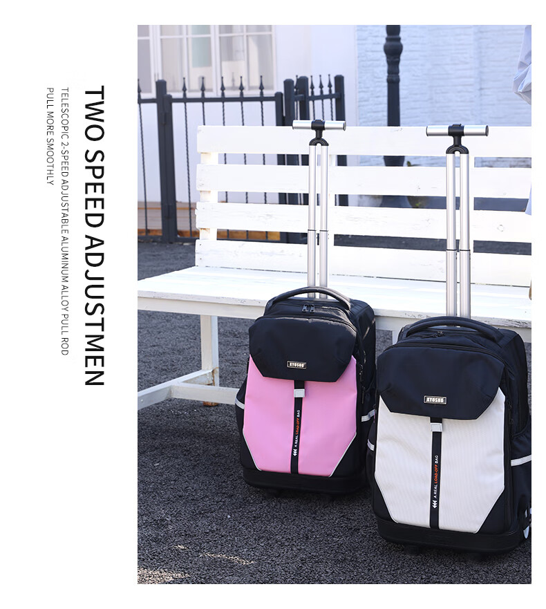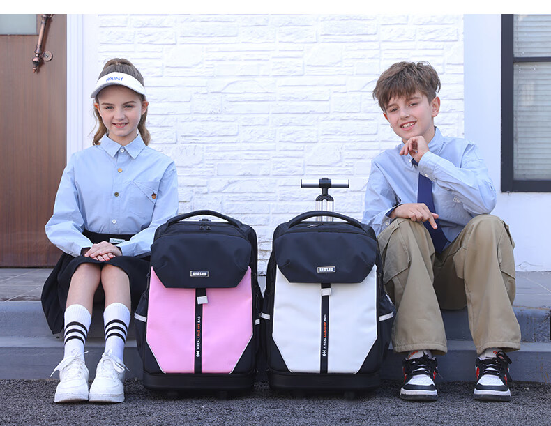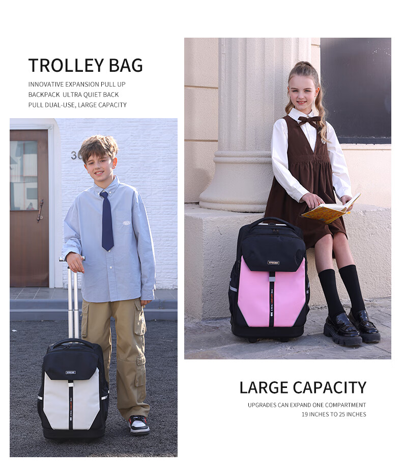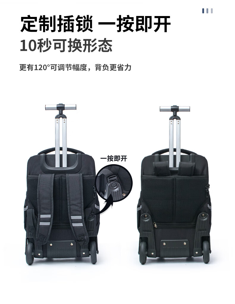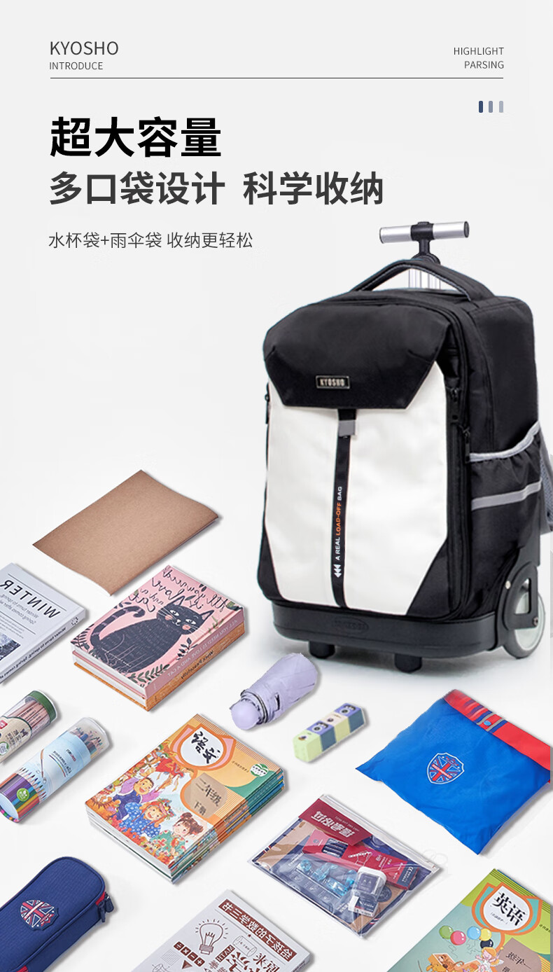 京商新款双扩容拉杆书包初高中大容量轻音拉杆旅行箱小学生书包 黑色