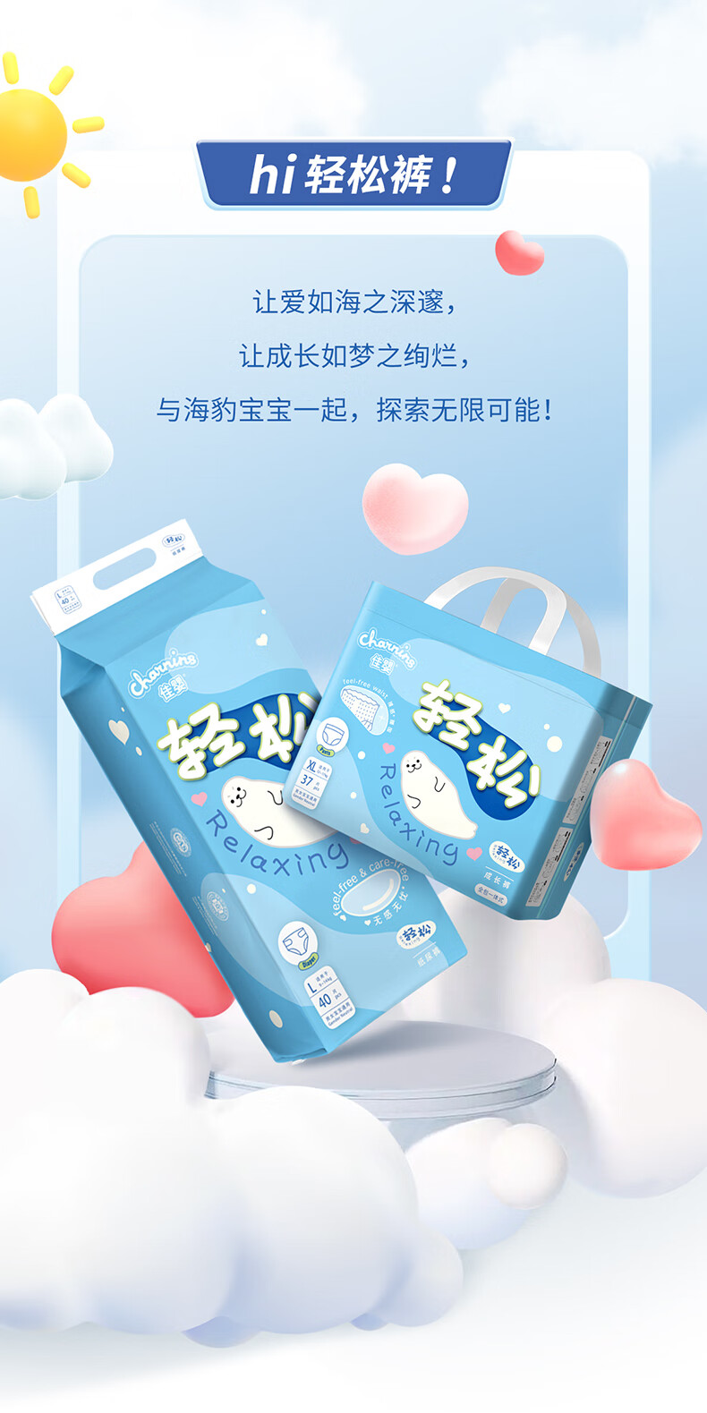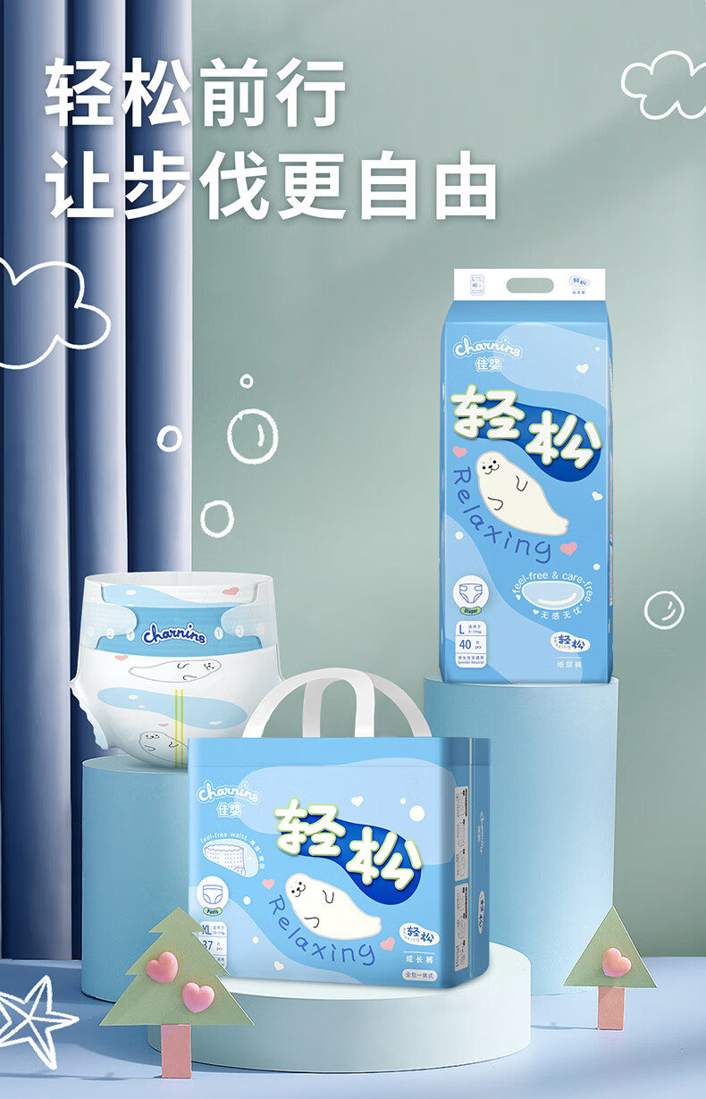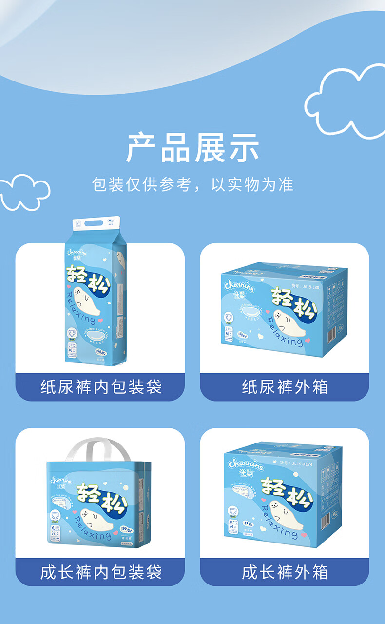 佳婴轻松裤夏季超薄透气纸尿裤新生婴儿男女宝宝尿不湿 XXL码64片(15KG+)